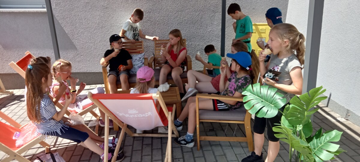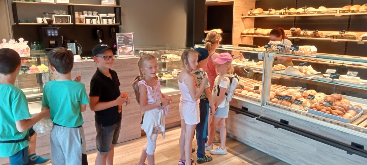 W ostatnim tygodniu roku szkolnego uczniowie korzystający z zajęć świetlicowych udali się na lody do piekarni / cukierni w Cróścicach. Była to doskonała okazja do poznania różnych rodzajów pieczywa oraz roli pieczywa w naszej diecie codziennej. Uczniowie samodzielne dokonali zakupów i obliczali w pamięci ile mają zapłacić, a także ile otrzymają reszty. Oczywiście utrwalali sobie również nominały monet oraz banknotów. Jednak największą radością były lody!