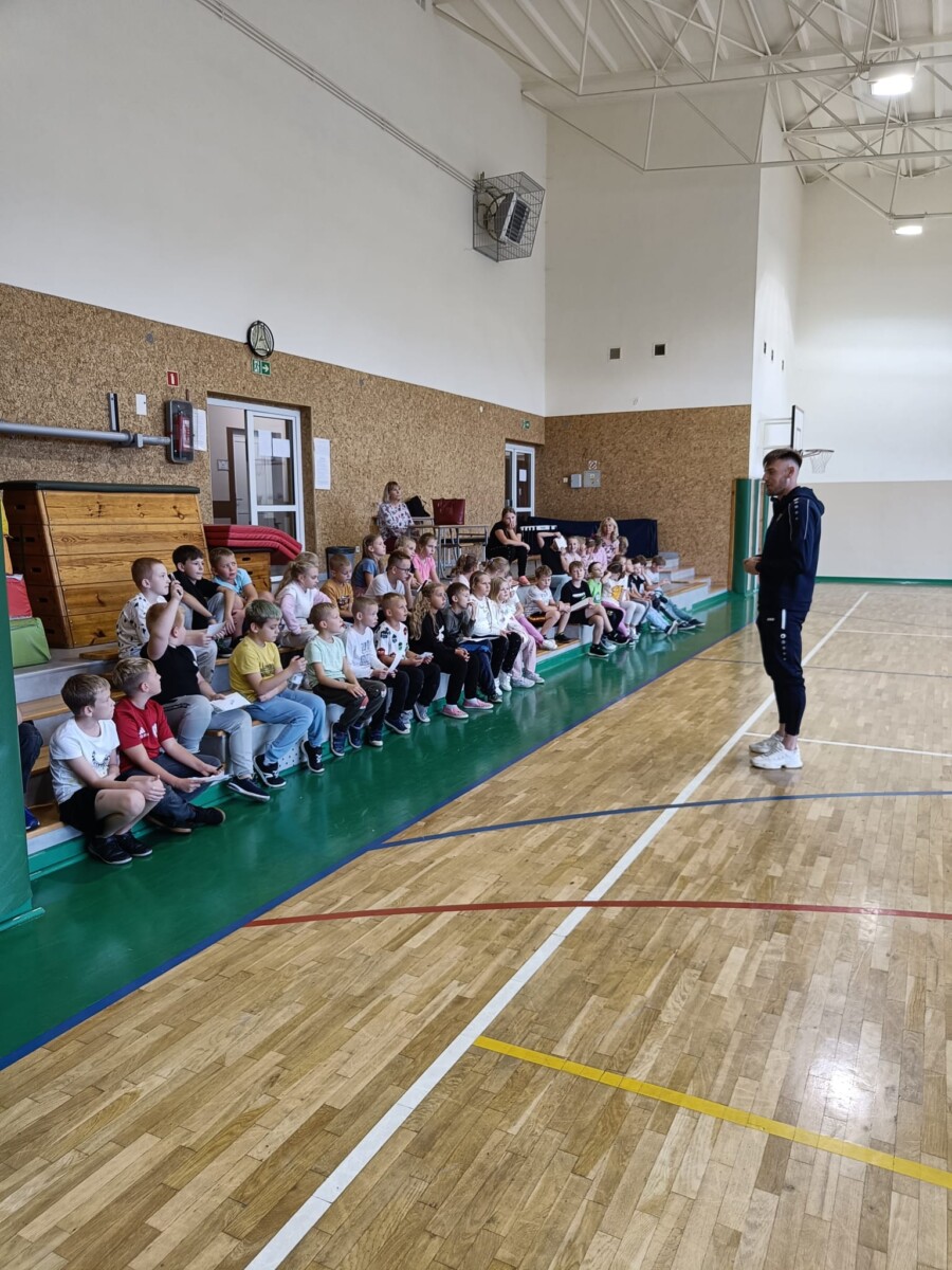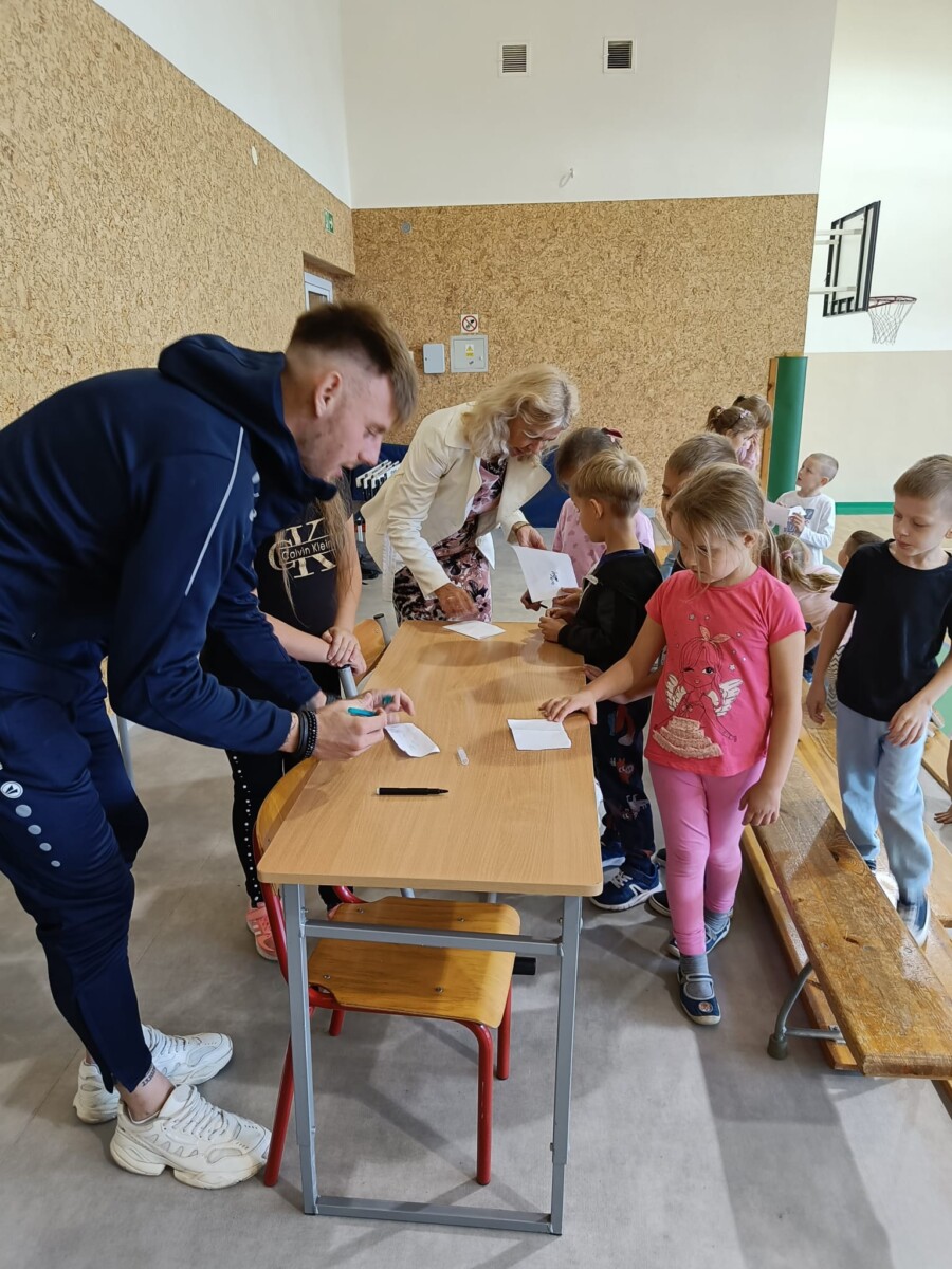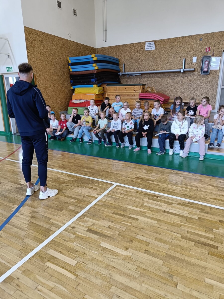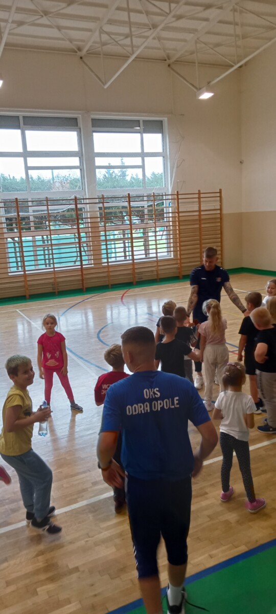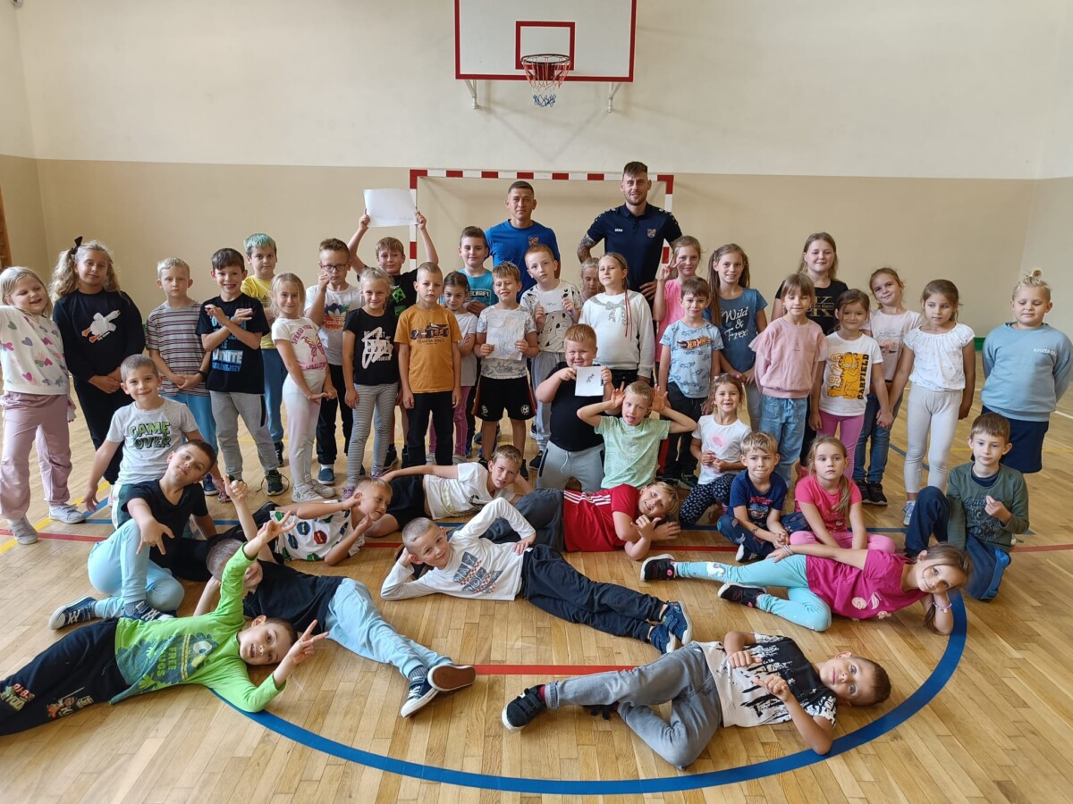 W naszej szkole gościliśmy napastnika 1 ligowej Odry Opole – Dawida Wolnego. Na spotkaniu uczniowie mogli bliżej poznać profesjonalnego piłkarza opolskiego klubu. Dzieci z ogromnym zaciekawieniem zadawały liczne pytania, na które odpowiadał nasz specjalny gość. Zajęcia obfitowały również w zabawy ruchowe, a zakończyły wspólną grą. Nie obyło się oczywiście bez ogromnej ilości autografów rozdanych dla uczestników spotkania.