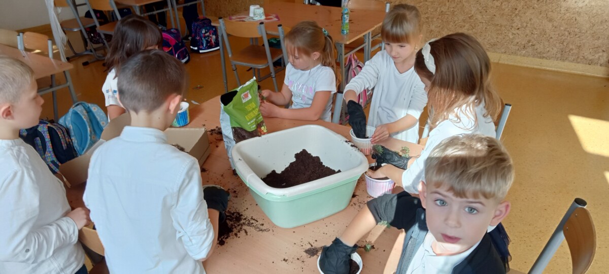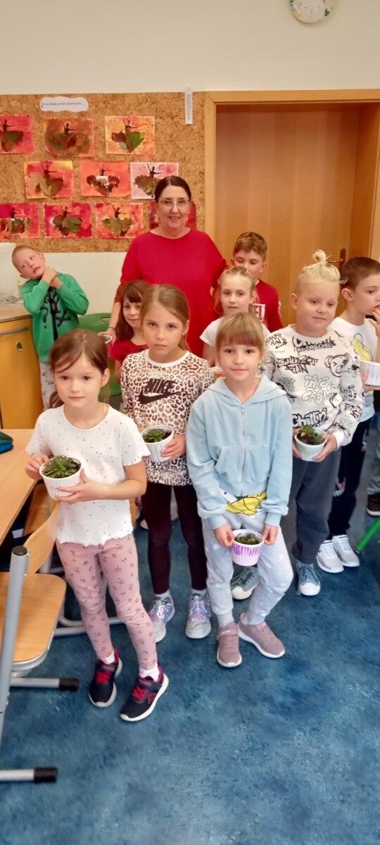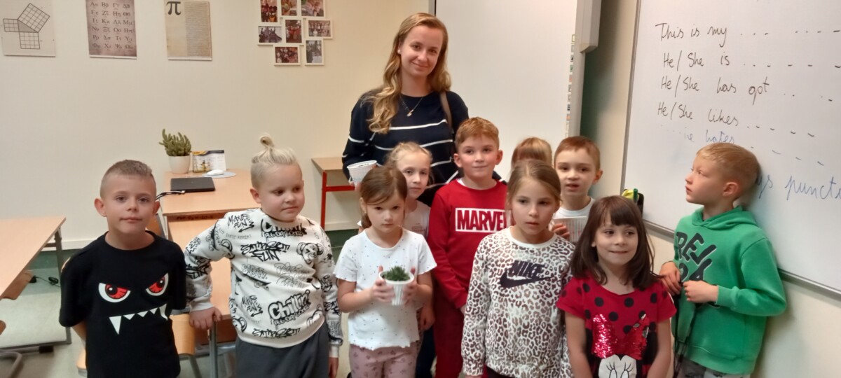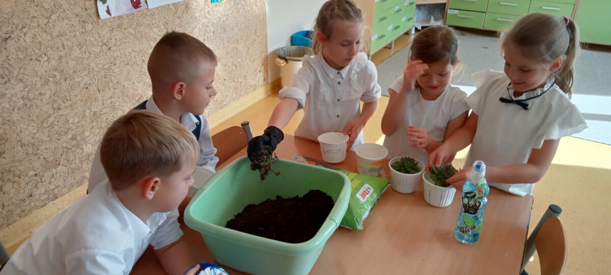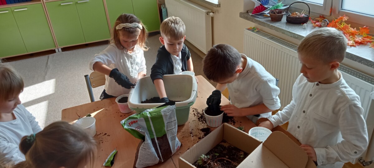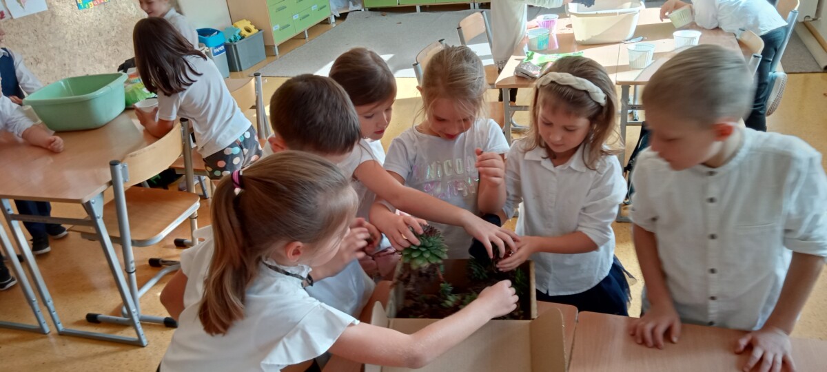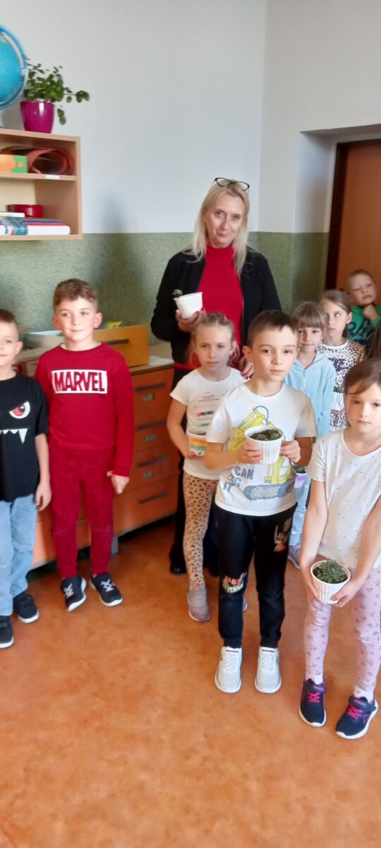 samodzielnego sadzenia w doniczkach malutkich kaktusików, które sprezentowali wraz z życzeniami nauczycielom naszej szkoły. Była to również możliwość poznania przez uczniów klas pierwszych, nauczycieli uczących w klasach starszych.