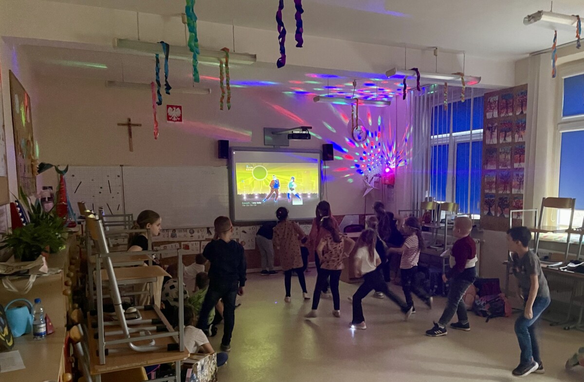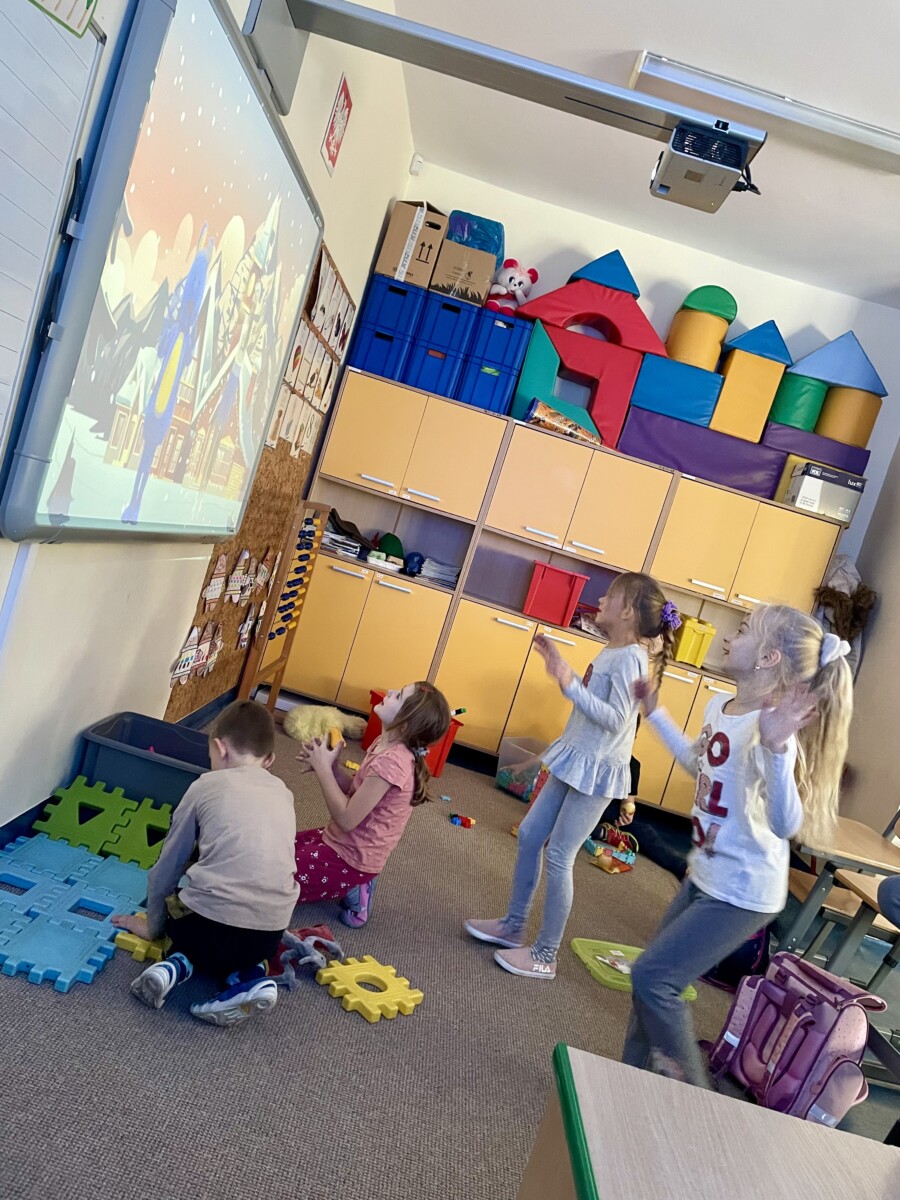Na świetlicy z okazji Światowego Dnia Nowych Technologii uczniowie podczas zajęć świetlicowych grali z wykorzystaniem „Magicznego dywanu”. Dzięki temu, zwłaszcza w czasie niepogody, nasi uczniowie mogą choć trochę dać upust swojej energii