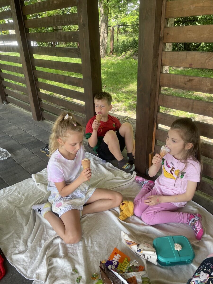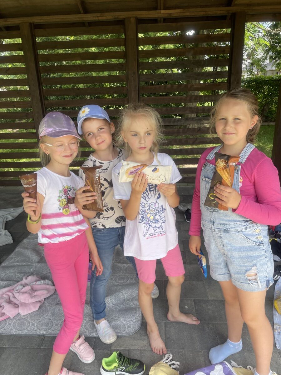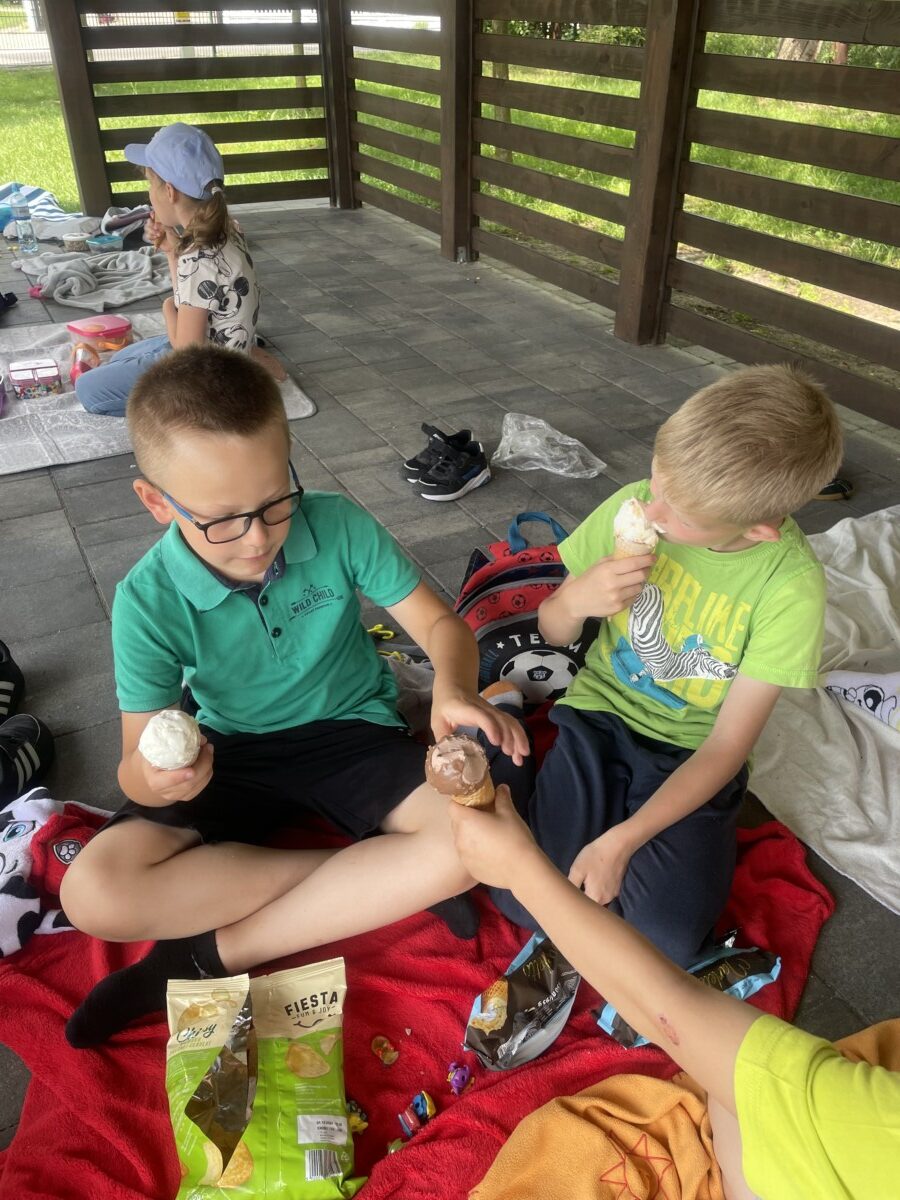Piknik rozpoczął się od uroczystego powitania, po którym dzieci mogły wziąć udział w licznych grach i zabawach. Następnie przyszedł czas na słodką niespodziankę w postaci pysznych lodów.