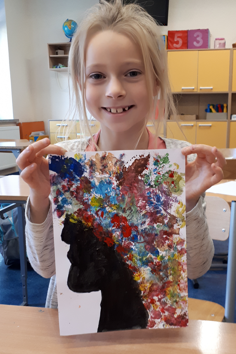 W ostatnim czasie realizowaliśmy ciekawy projekt, mianowicie malutkie obrazki prawdziwych artystów stały się dla nas inspiracją na własną twórczość artystyczną. Najpierw wyobrażaliśmy sobie, o czym myślał artysta malując pracę, a później sami zabieraliśmy się do twórczej pracy. Efekt – REWELACYJNY!