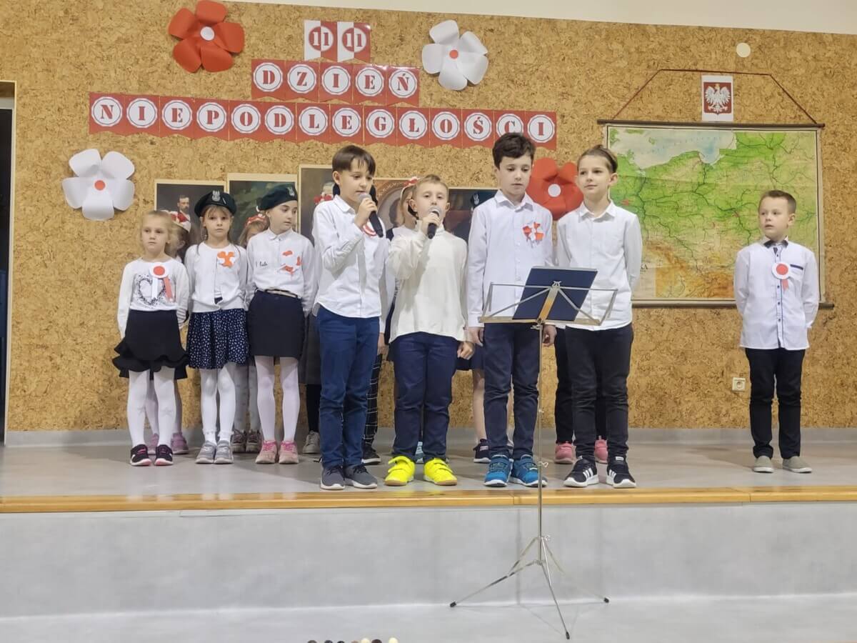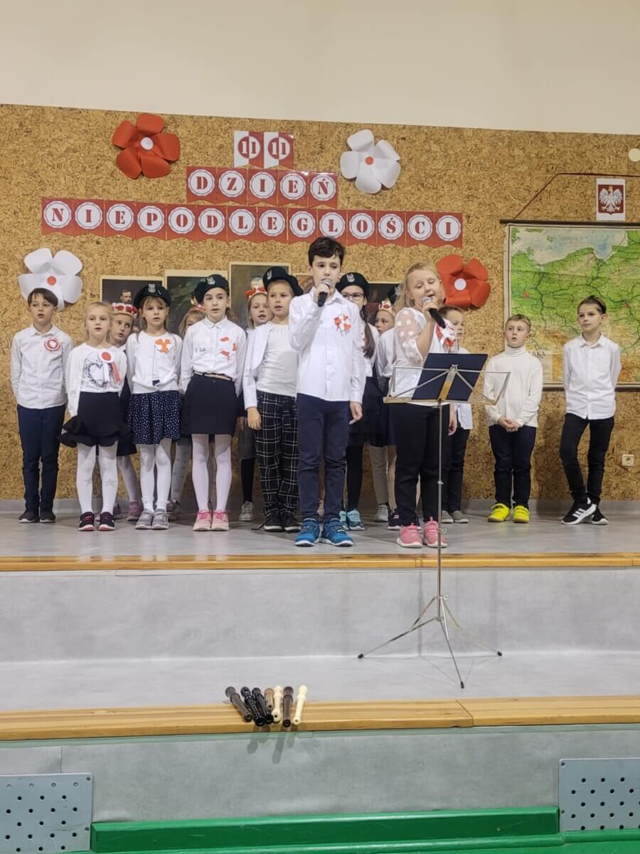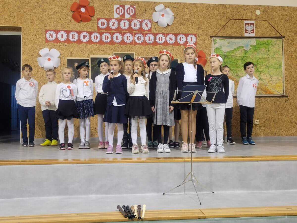 ona niemała wartością.” Andrzej Pomian 15 listopada, jak co roku, w naszej szkole odbył się uroczysty apel z okazji rocznicy odzyskania niepodległości. Żyjemy w czasach, gdzie bliski nam naród walczy o swoją wolność i suwerenność, przypominając, że niepodległość nie jest nam dana na zawsze. To przenosi nas pamięcią w okres 123 lat, kiedy Polski nie było na mapach Europy i świata. Jednak wieloletnia niewola nie spowodowała, że zapomnieliśmy, kim jesteśmy, jakim językiem się posługujemy, jaka jakie są nasze: tradycje, kultura i historia. Uczniowie klasy VI w towarzystwie dzieci z klas II przypomnieli zebranym w szkolnej sali gimnastycznej koleżankom i kolegom, jak Polacy walczyli z zaborcami, ile musieli tej walce poświęcić, łącznie z daniną krwi. Historia narodowowyzwoleńczych powstań przeplatana była patriotycznymi, które nadały naszej szkolnej uroczystości wyjątkowego wymiaru. Momentem wielkiego wzruszenia było odtworzenie nagranego w Ukrainie przez Siostrę Kamilę z jej podopiecznymi montażu słowno-muzycznego dotyczącego odzyskania niepodległości przez naszą Ojczyznę.
