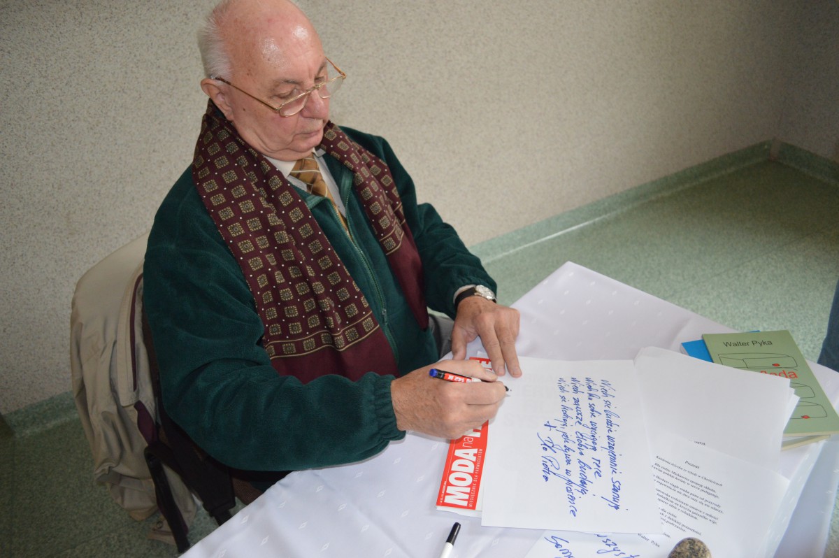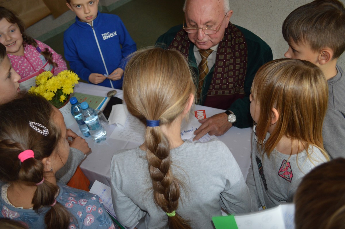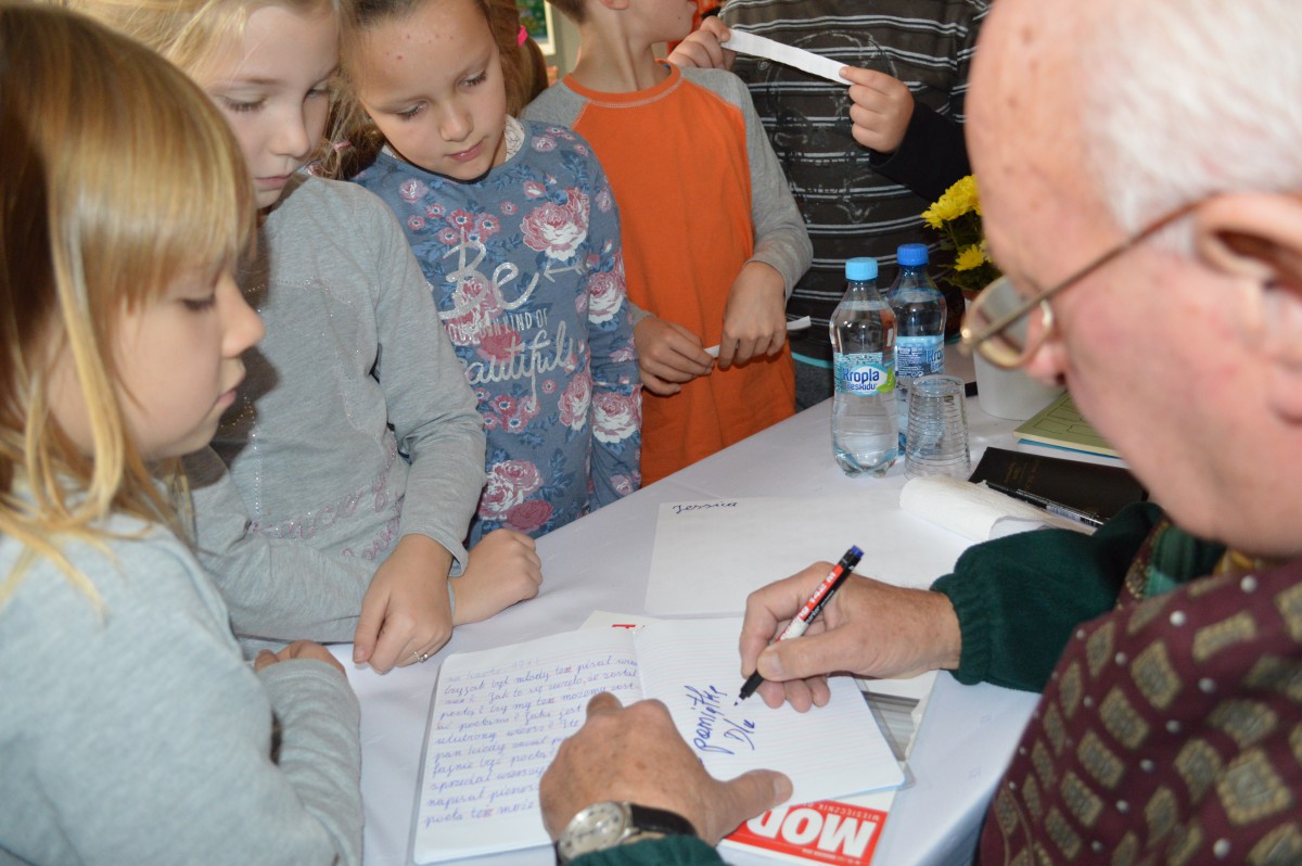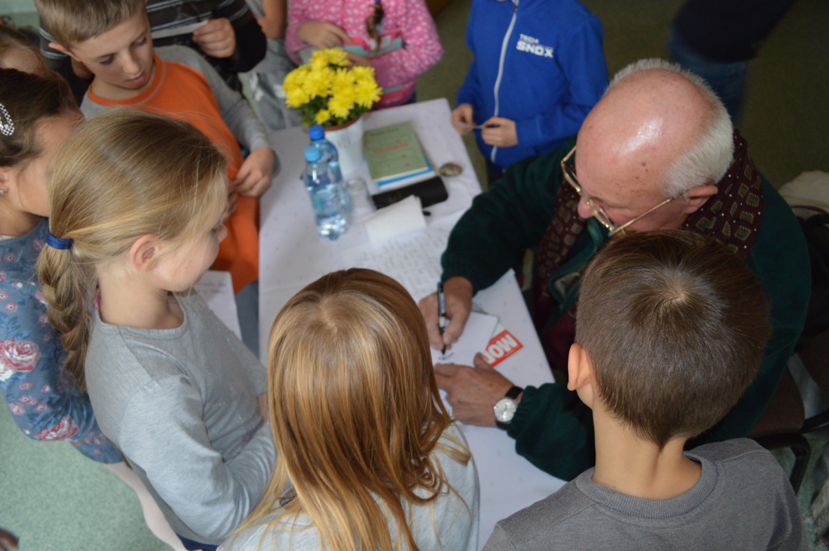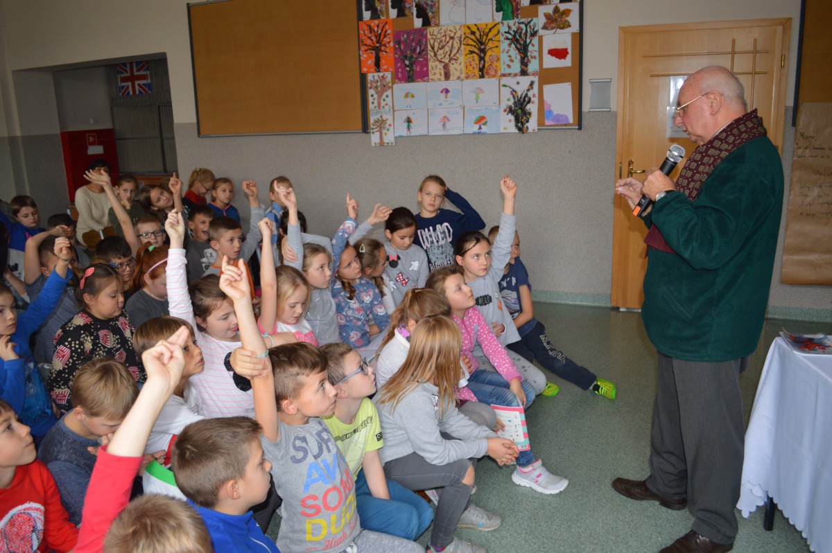 Pod takim hasłem odbyło się spotkanie z panem Walterem Pyką z uczniami naszej szkoły. Do miłych odwiedzin doszło w piątek 10 listopada. Słynący z otwartości oraz poetyckiego dorobku pan Pyka prezentował wszystkim zebranym swoje wybrane wiersze. Było też sporo pytań do miłego gościa, oraz czas na spróbowanie swoich twórczych możliwości. Pod fachowym okiem poety, chętni uczniowie tworzyli laurkę dla mamy. Miłym gestem ze strony pana Pyki był wiersz “Prezent, Każdemu dziecku ze szkoły w Chróścicach”, który powstał specjalnie z okazji wizyty w naszej szkole, oraz kilka tomików wierszy ze specjalną dedykacją, które będą dostępne w szkolnej bibliotece.
