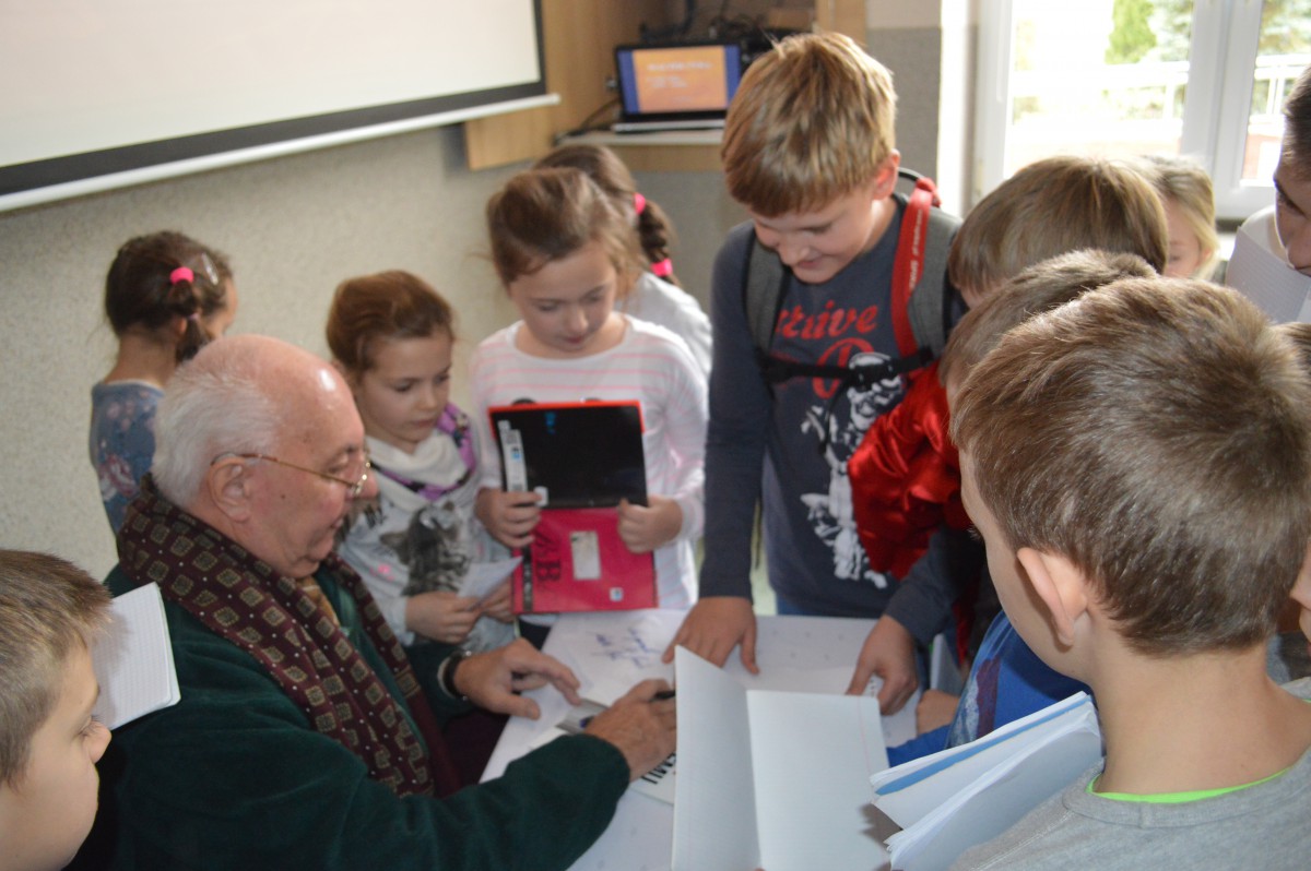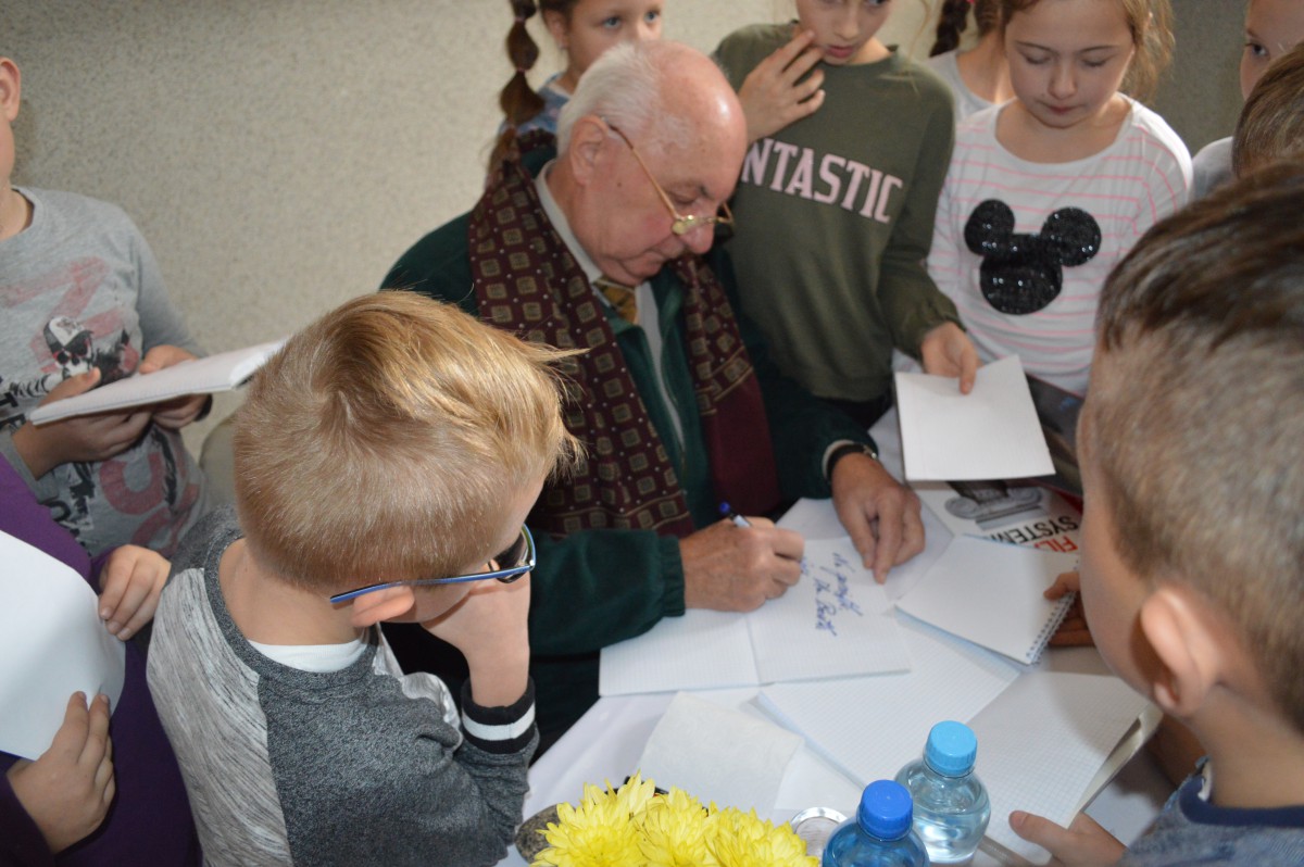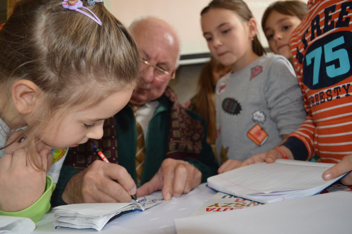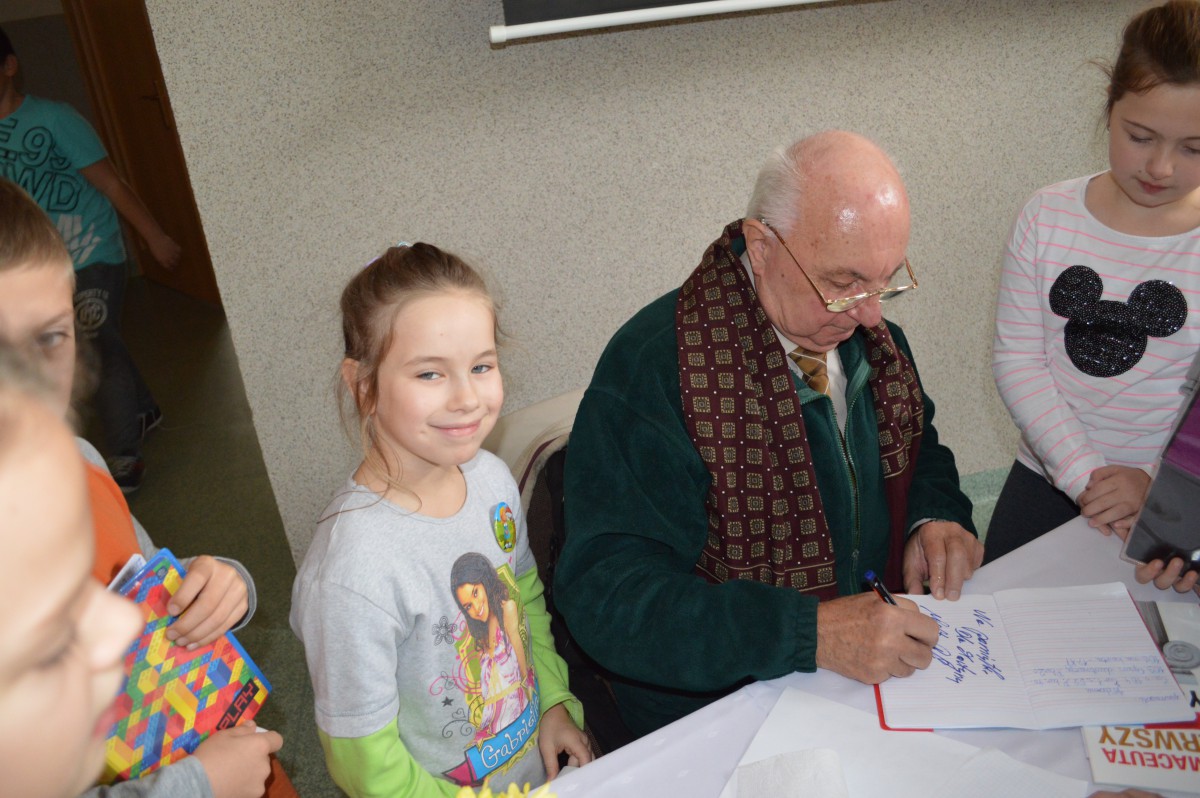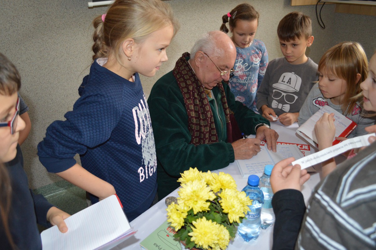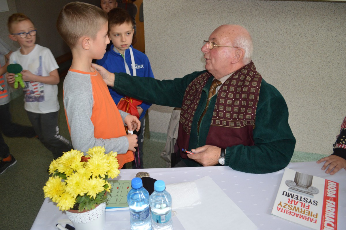 Pod takim hasłem odbyło się spotkanie z panem Walterem Pyką z uczniami naszej szkoły. Do miłych odwiedzin doszło w piątek 10 listopada. Słynący z otwartości oraz poetyckiego dorobku pan Pyka prezentował wszystkim zebranym swoje wybrane wiersze. Było też sporo pytań do miłego gościa, oraz czas na spróbowanie swoich twórczych możliwości. Pod fachowym okiem poety, chętni uczniowie tworzyli laurkę dla mamy. Miłym gestem ze strony pana Pyki był wiersz “Prezent, Każdemu dziecku ze szkoły w Chróścicach”, który powstał specjalnie z okazji wizyty w naszej szkole, oraz kilka tomików wierszy ze specjalną dedykacją, które będą dostępne w szkolnej bibliotece.