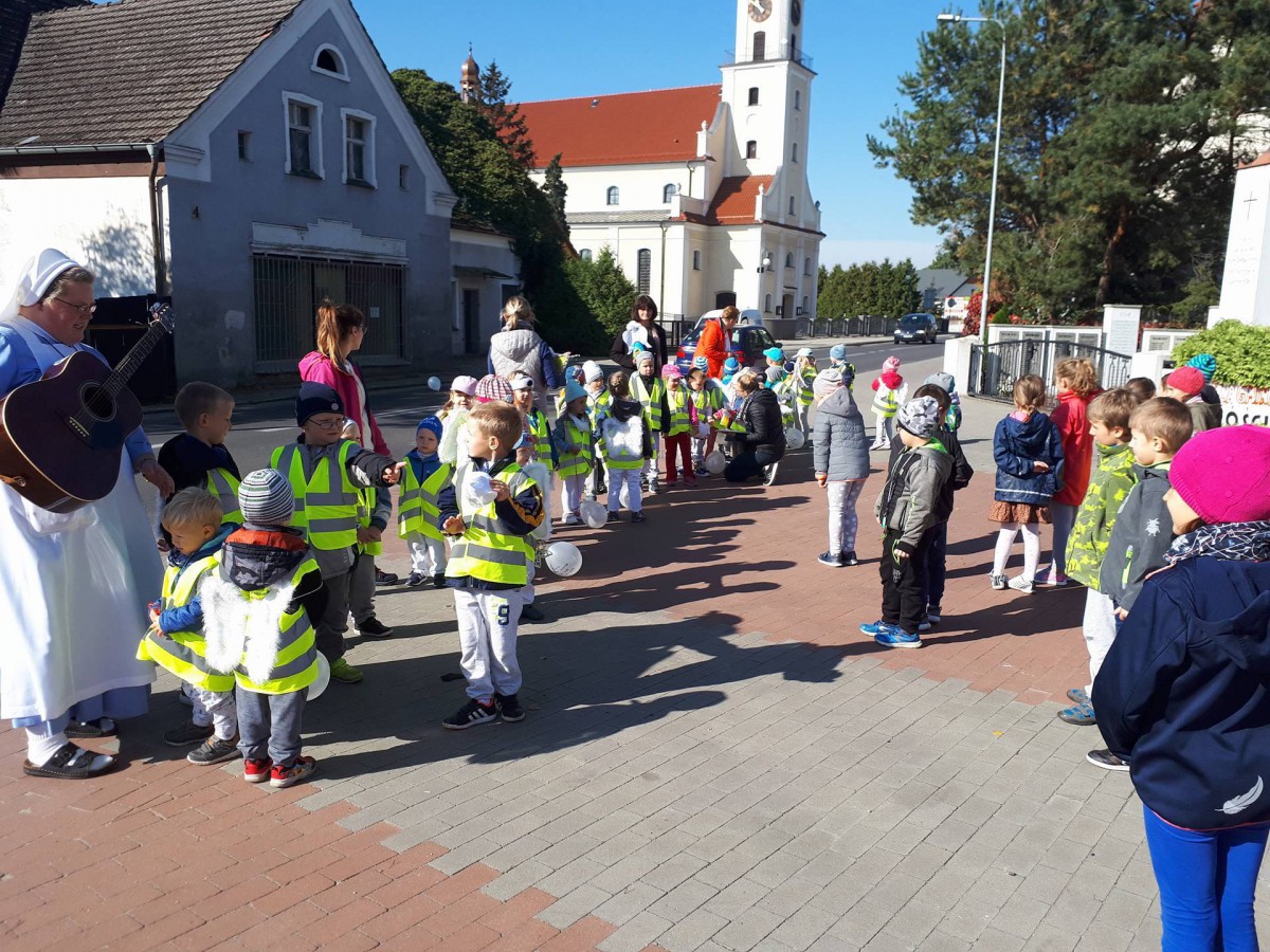 W poniedziałek 2 października podczas spaceru  uczniów klasy I spotkała miła niespodzianka. Napotkali przedszkolaków z Niepublicznego Przedszkola bł.E.Bojanowskiego, którzy wybierali się z wizytą do księdza proboszcza, w ramach Dnia Anioła Stróża. Przedszkolaki uraczyły wszystkich pięknym śpiewem,oraz anielskimi wierszykami. Na ręce swoich starszych kolegów przekazali własnoręcznie wykonanego aniołka oraz baloniki z napisem “nie jestem sam bo anioła stróża mam”.