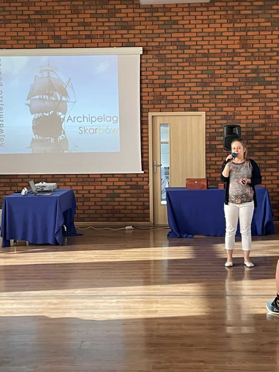W dniach 4.10 – 5.10.2021 r. uczniowie klas siódmych i ósmych naszej szkoły wzięli udział w Programie Profilaktyki Zintegrowanej „Archipelag Skarbów” . Podczas dwudniowych warsztatów młodzież zamieniała się w poszukiwaczy skarbów , którymi były : głębokie szczęście, trwała miłość i realizacja w życiu własnych pasji i marzeń. Liczne ćwiczenia i zabawy interaktywne, zastosowane podczas warsztatów, wyzwoliły pozytywne zaangażowanie młodzieży, otwartość na współpracę z trenerami i udział w zorganizowanym festiwalu twórczości w ramach spotkania. Prowadzący pomogli młodym ludziom w dostrzeżeniu znaczenia szacunku w relacjach międzyludzkich, ukazali pozytywne aspekty otwartości na dorosłych przewodników życiowych (rodziców, nauczycieli). Uczniowie chętnie zgłaszali się, odpowiadali na pytania, angażując się w ćwiczenia i konkursy, a na zakończenie wysoko ocenili przeprowadzone spotkanie. To kolejna już edycja tego programu profilaktyki, który z powodzeniem realizowany jest w naszej szkole.