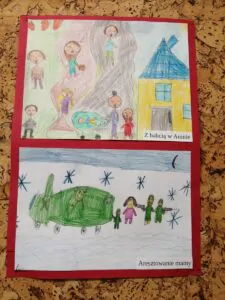Każdy uczeń otrzymał temat wydarzenia, musiał go zilustrować. W ten sposób powstała wojenna historia życia Asiuni. Prace zostały umieszczone na gazetce