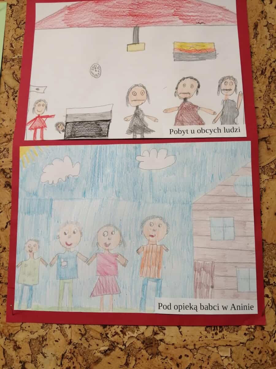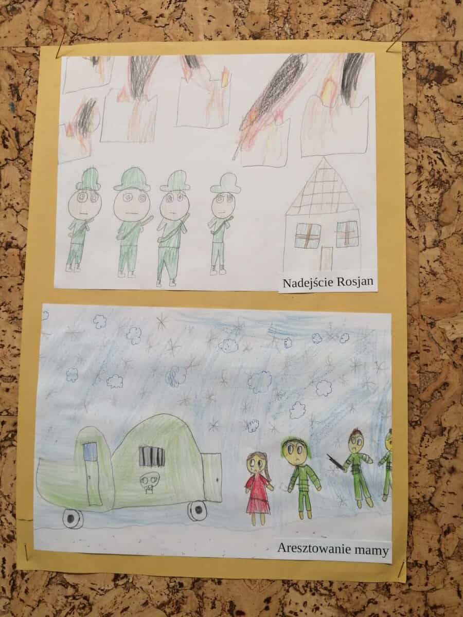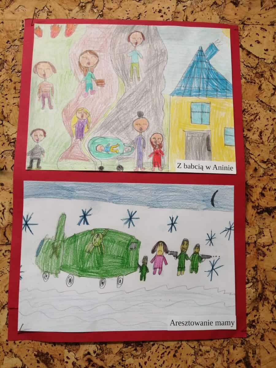 Każdy uczeń otrzymał temat wydarzenia, musiał go zilustrować. W ten sposób powstała wojenna historia życia Asiuni. Prace zostały umieszczone na gazetce