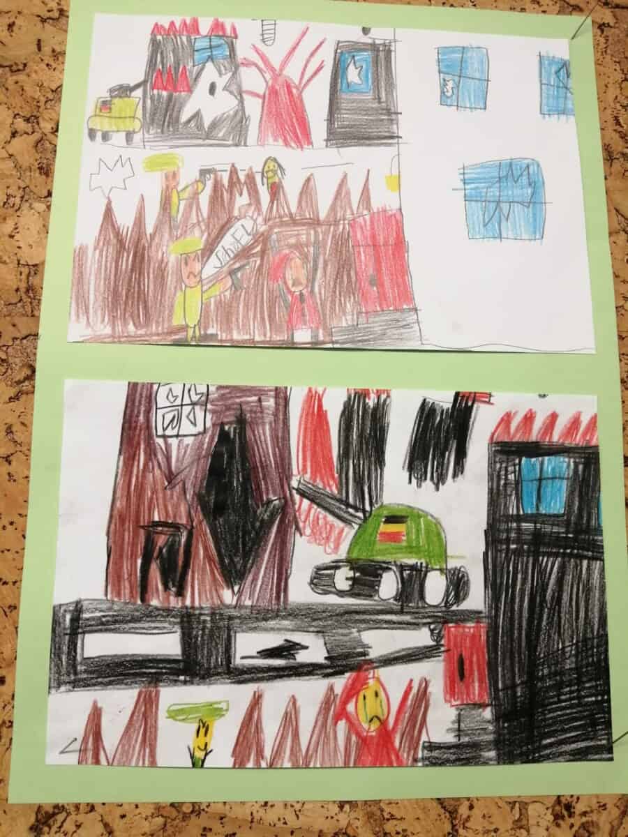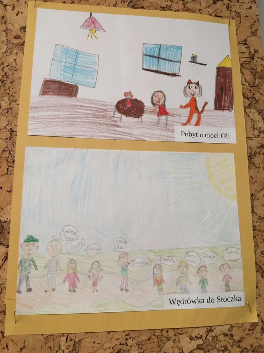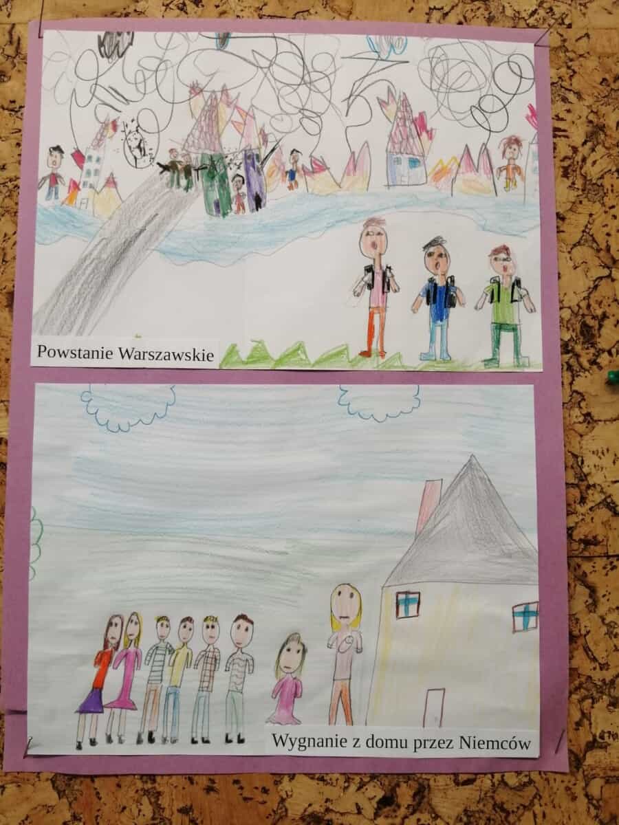 Każdy uczeń otrzymał temat wydarzenia, musiał go zilustrować. W ten sposób powstała wojenna historia życia Asiuni. Prace zostały umieszczone na gazetce