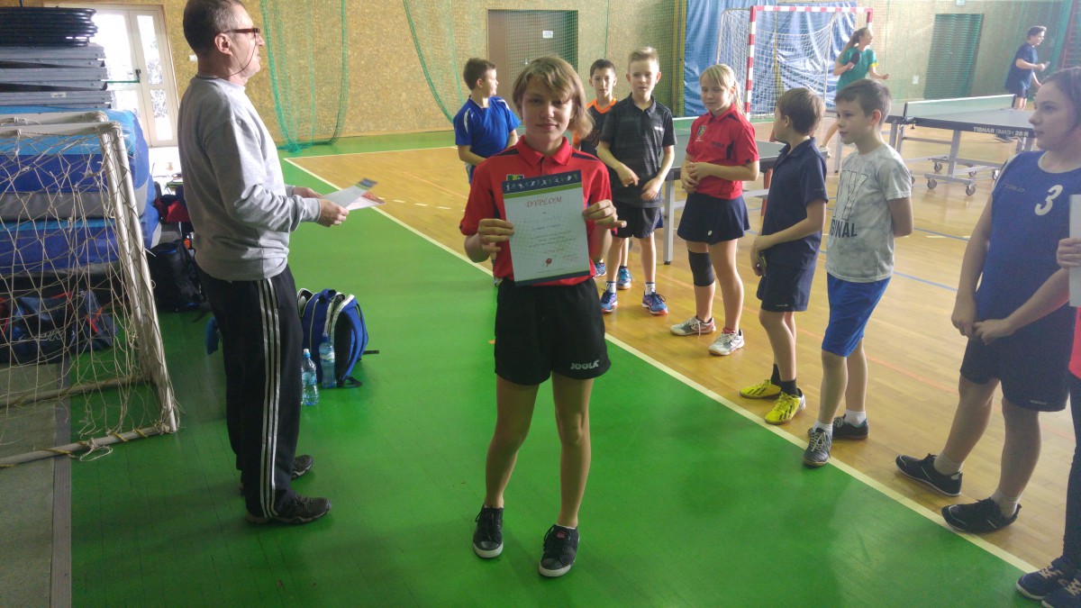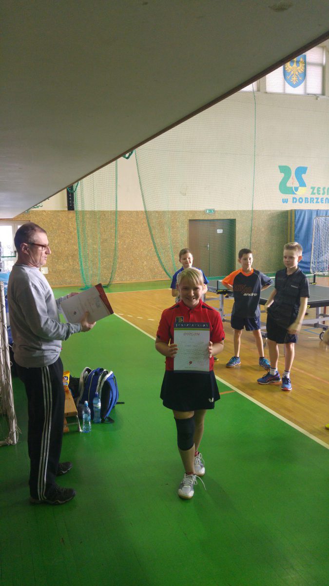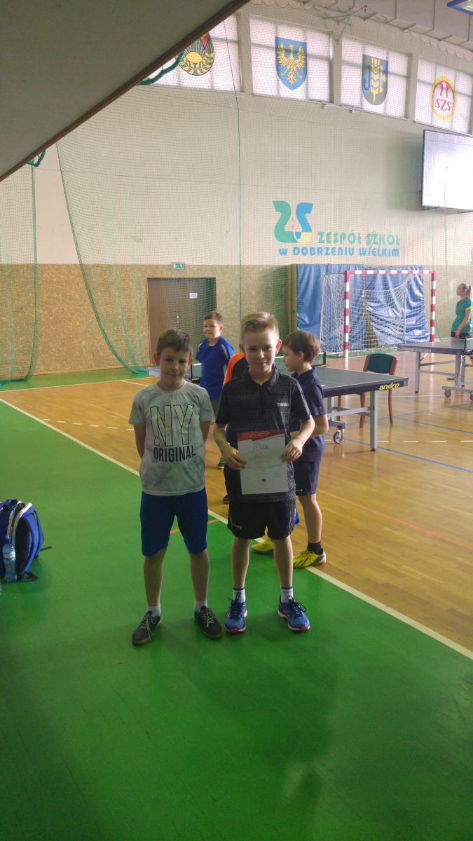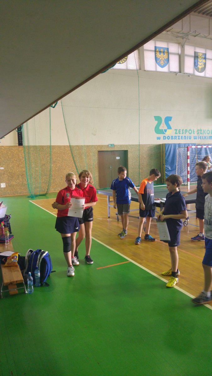 W dniu 27.11 w Dobrzeniu Wielkim odbył się gminny turniej tenisa stołowego indywidualnie i drużynowo dla uczniów szkół podstawowych.Naszą szkołę reprezentowali Karolina Lisowska, Iza Matros, Krzysztof Michno i Kacper Gliwiński.W rozgrywkach drużynowych dziewczyny zdobyły I miejsce, natomiast chłopcy II. Indywidualnie I msc zdobyła Iza, 2 msc Karolina. Chłopcy zaś uplasowali się na miejscach: Krzyś I Kacper IV. Dziewczyny udają się w poniedziałek 3.12 na drużynowe zawody powiatowe do Niemodlina. Opiekę trenerską sprawował Marcin Kondziela.