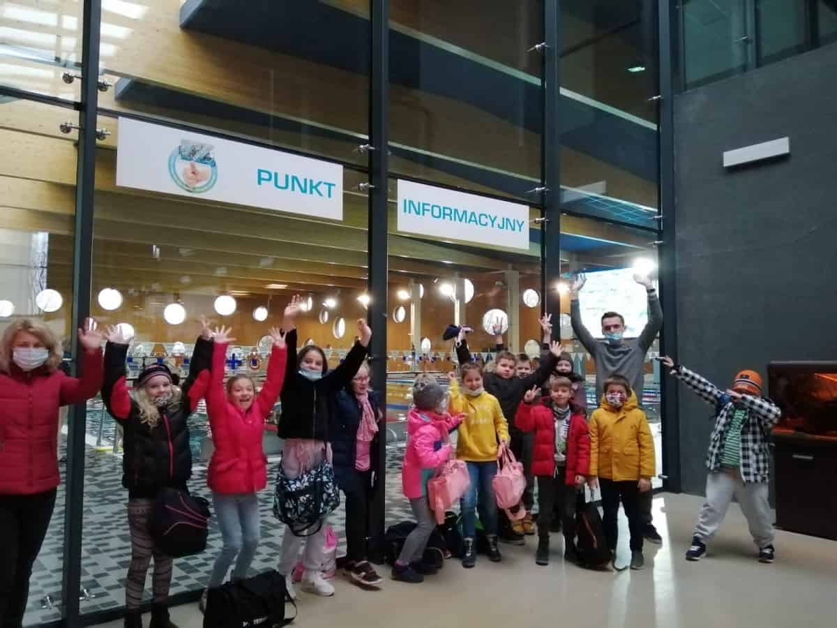 Uczniowie klasy 3 wraz z młodszą koleżanką Mają dopłynęli do końca tegorocznej edycji Umiem Pływać.