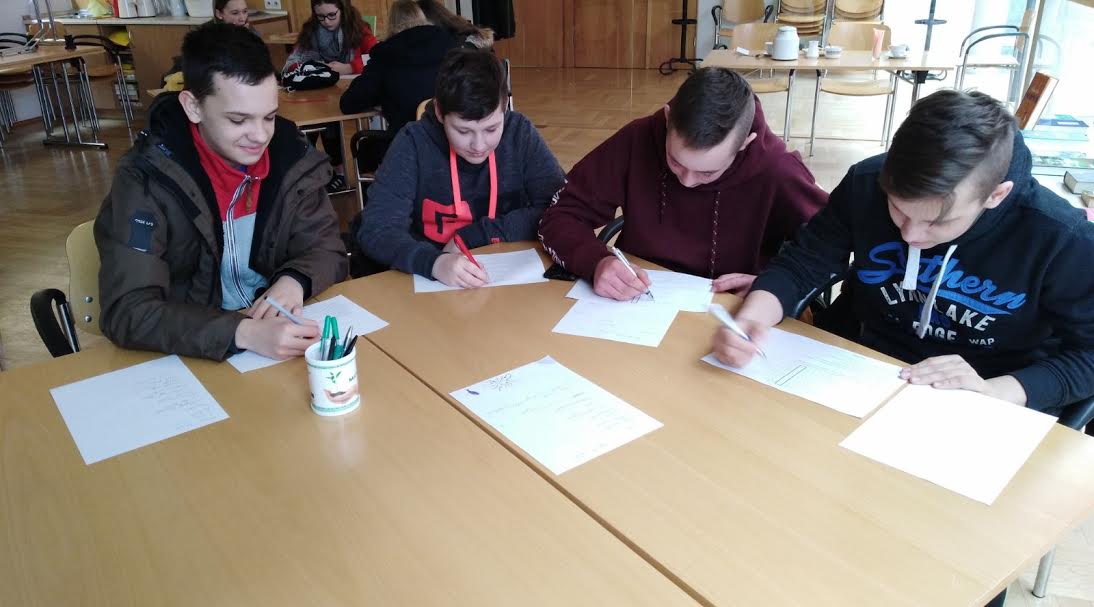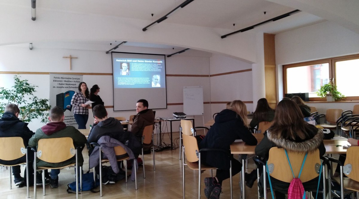 „Cudowny chłopak” to historia o chłopcu, który ze względu na niezwykle rzadką mutację genów ma bardzo zniekształconą twarz. Ta dopiero po licznych operacjach zaczęła choć trochę przypominać ludzką. Pomimo to tytułowa postać nie odpowiada ideałom XXI wieku. Chłopiec jednak nie poddaje się. A czy trzeba być idealnym, by móc mieć marzenia i być szczęśliwym człowiekiem? Klasa VII już zna na to pytanie odpowiedź, ponieważ wybrała się właśnie 20.03.2018r. na ten film do kina. Po projekcji nastąpiła chwila refleksji nad filmem. Następnie uczniowie uczestniczyli w warsztatach bibliotecznych w Bibliotece Josepha von Eichendorffa. Tematyką warsztatów były szlaki niemieckich twórców literatury i ich życiorysy. Podczas części wykładowej uczniowie robili notatki, by później uczestniczyć w quizie. Zwycięzcami okazały się tym razem dziewczyny – gratulujemy sukcesu. Jednak każdy uczestnik warsztatów otrzymał drobny upominek. Uczniowie byli bardzo zadowoleni z wyjazdu i stwierdzili, że będą częściej zaglądać do niemieckojęzycznej biblioteki.