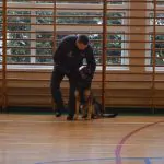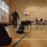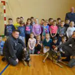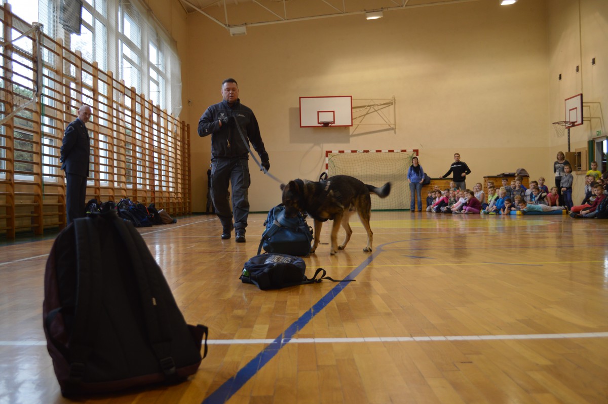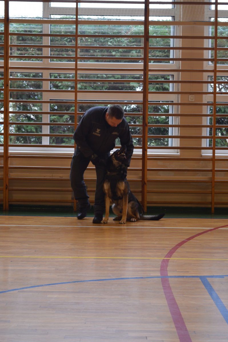 psami. Uczniowie dowiedzieli się jakie zadania spoczywają na psach specjalnych, jak długo pracują i jak wygląda ich przygotowanie do