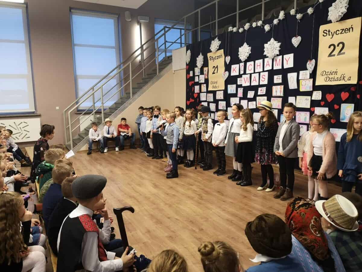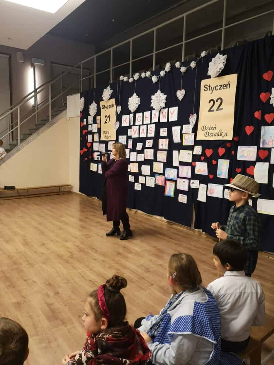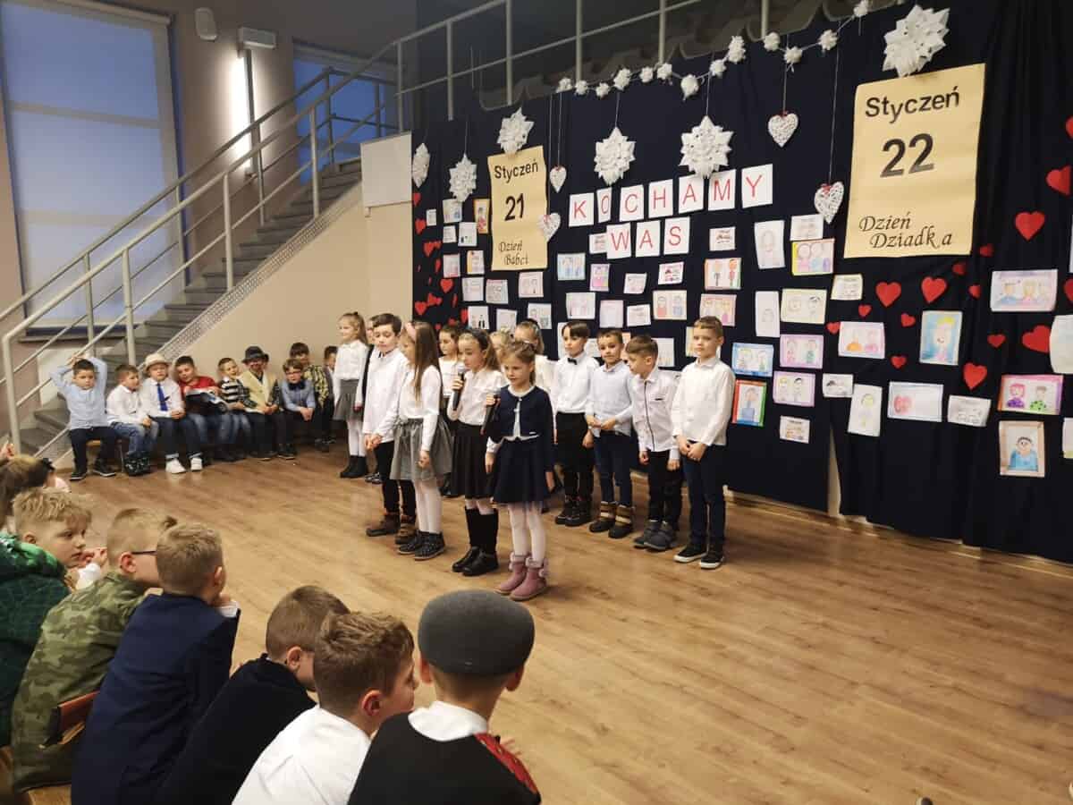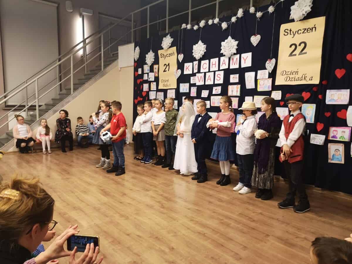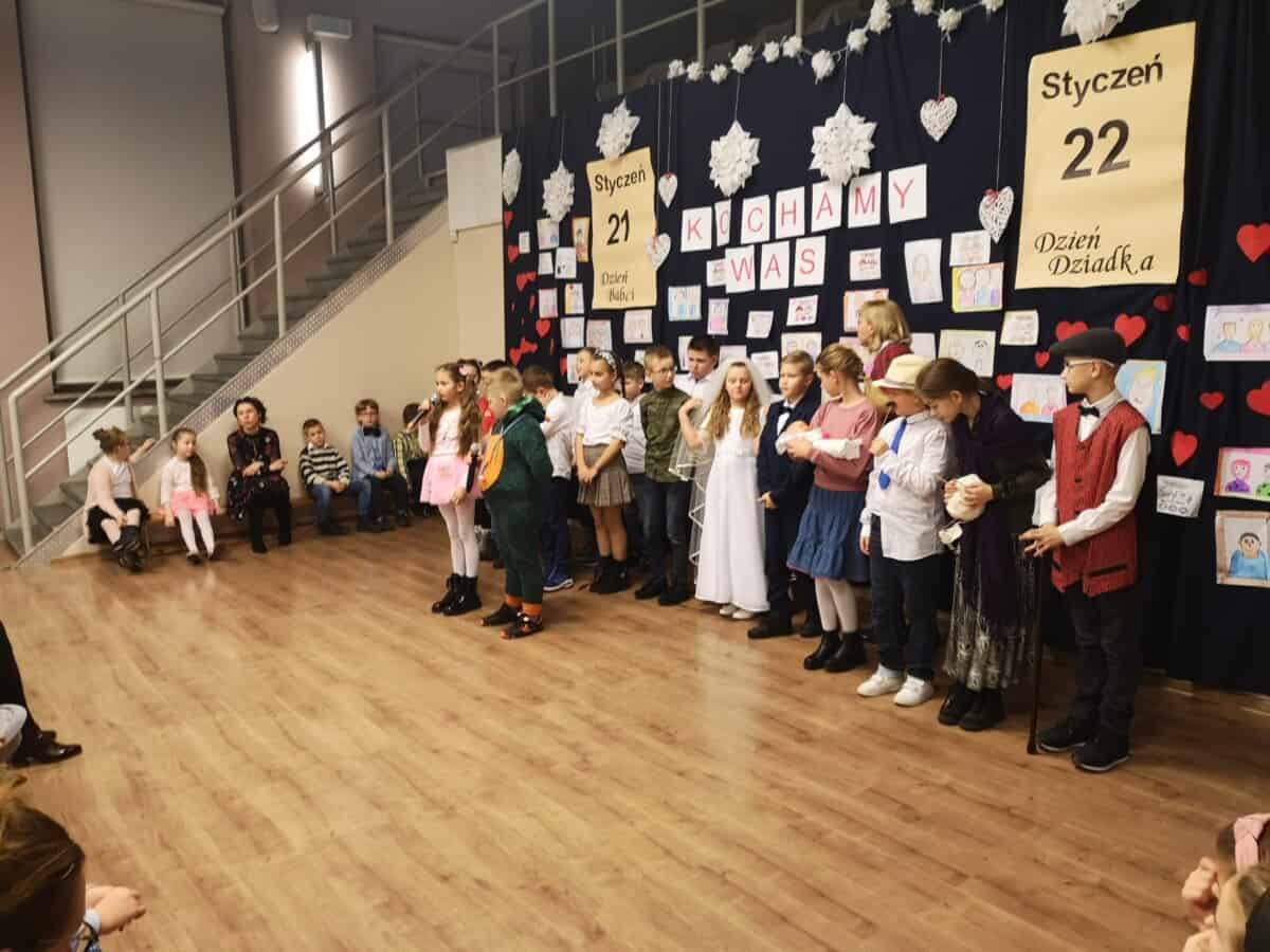23 stycznia 2023r. w Sali Wiejskiej odbyła się uroczystość z okazji dnia Babci i Dziadka. Przybyłych gości powitała pani dyrektor Dorota Lewandowska – Jaroń. Na to spotkanie dzieci narysowały portrety swoich dziadków, którymi została udekorowana sala. Ciasto i kawę przygotowały mamy. Wnuki zaprezentowały ciekawy program artystyczny, na który składały się piosenki, wiersze, gra na flażoletach, a także taniec. Dziadkowie nagrodzili występy gromkimi oklaskami. Spotkanie przebiegało w miłej i serdecznej atmosferze. W podziękowaniu za miłość i troskę wnuki ofiarowały swoim babciom i dziadkom piękne laurki, ozdobne serca i medale. Wszystkim, którzy pomagali w organizacji tej uroczystości składam gorące podziękowania.