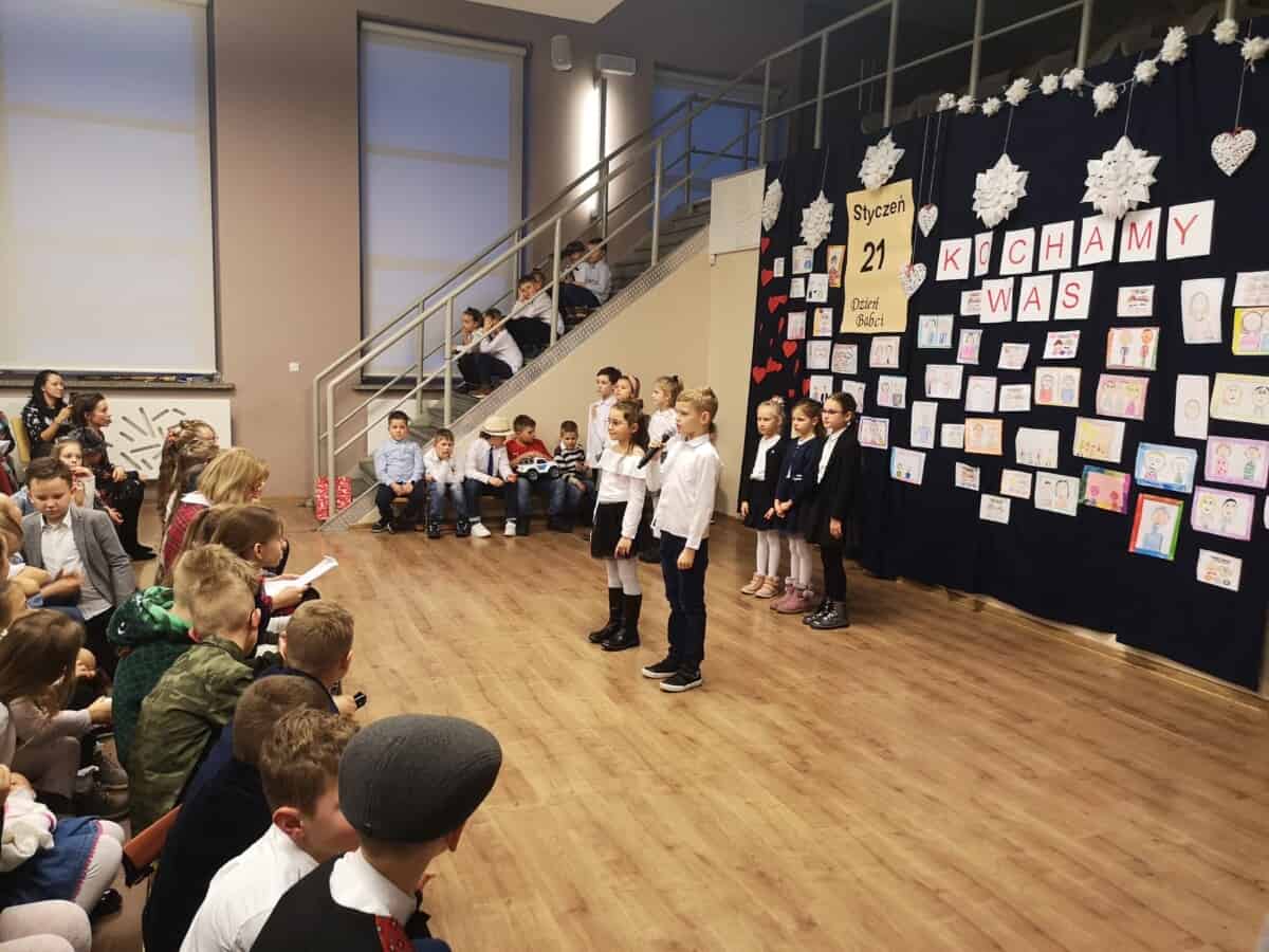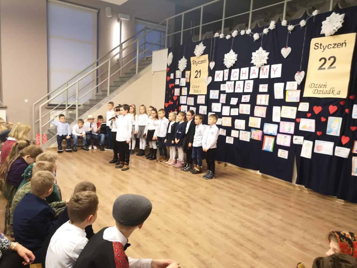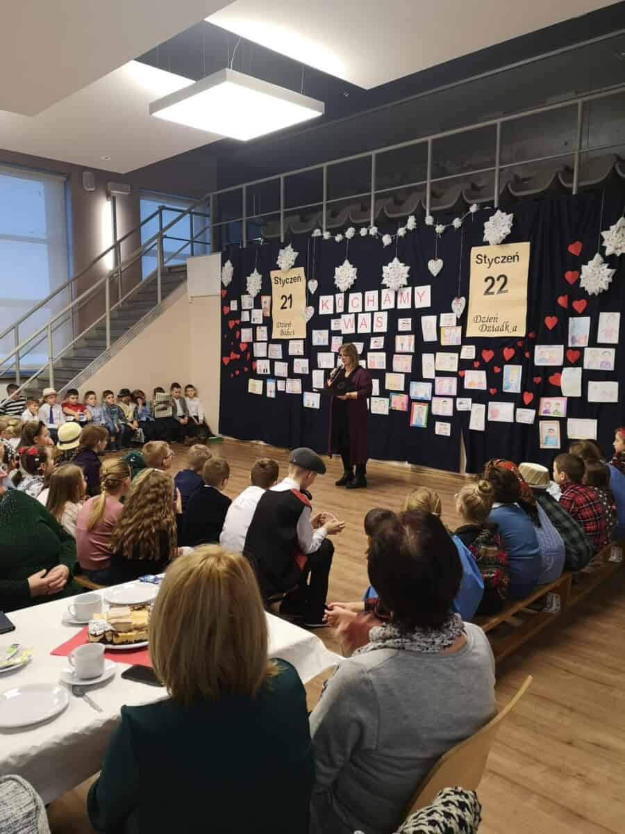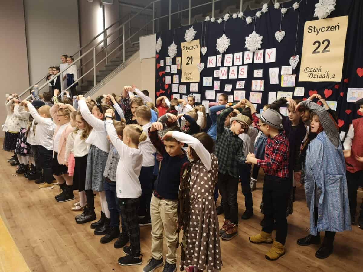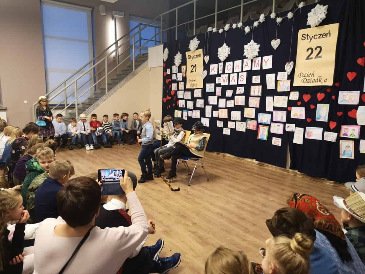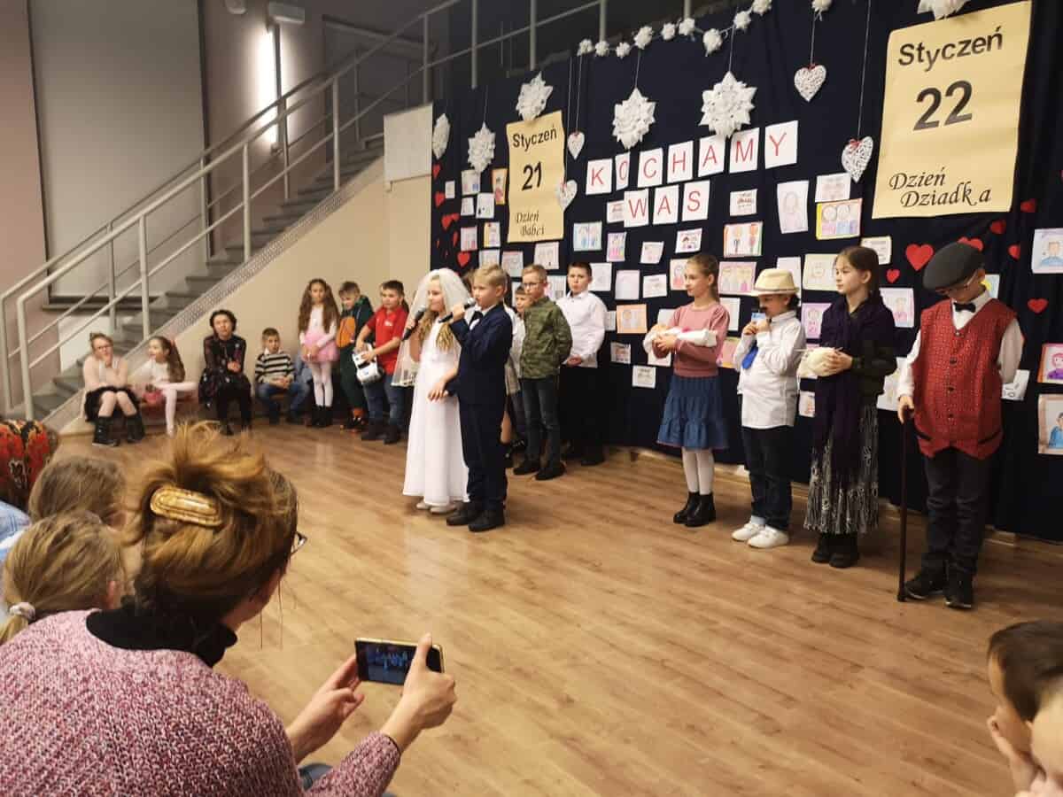 23 stycznia 2023r. w Sali Wiejskiej odbyła się uroczystość z okazji dnia Babci i Dziadka. Przybyłych gości powitała pani dyrektor Dorota Lewandowska – Jaroń. Na to spotkanie dzieci narysowały portrety swoich dziadków, którymi została udekorowana sala. Ciasto i kawę przygotowały mamy. Wnuki zaprezentowały ciekawy program artystyczny, na który składały się piosenki, wiersze, gra na flażoletach, a także taniec. Dziadkowie nagrodzili występy gromkimi oklaskami. Spotkanie przebiegało w miłej i serdecznej atmosferze. W podziękowaniu za miłość i troskę wnuki ofiarowały swoim babciom i dziadkom piękne laurki, ozdobne serca i medale. Wszystkim, którzy pomagali w organizacji tej uroczystości składam gorące podziękowania.