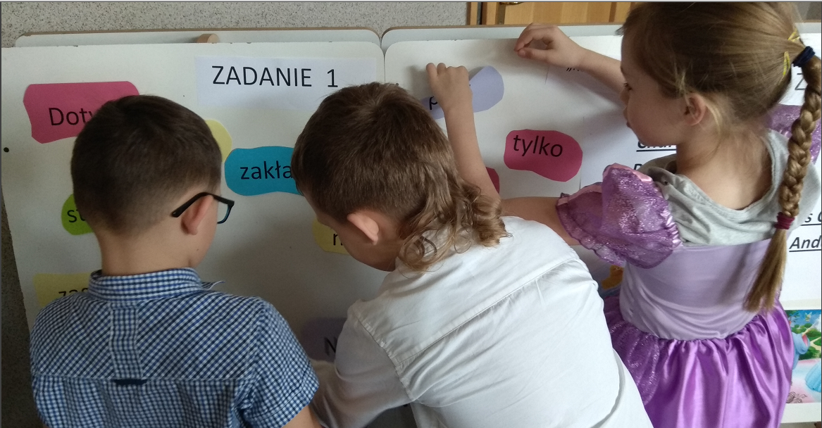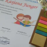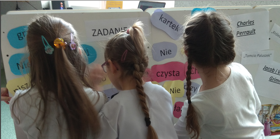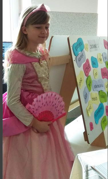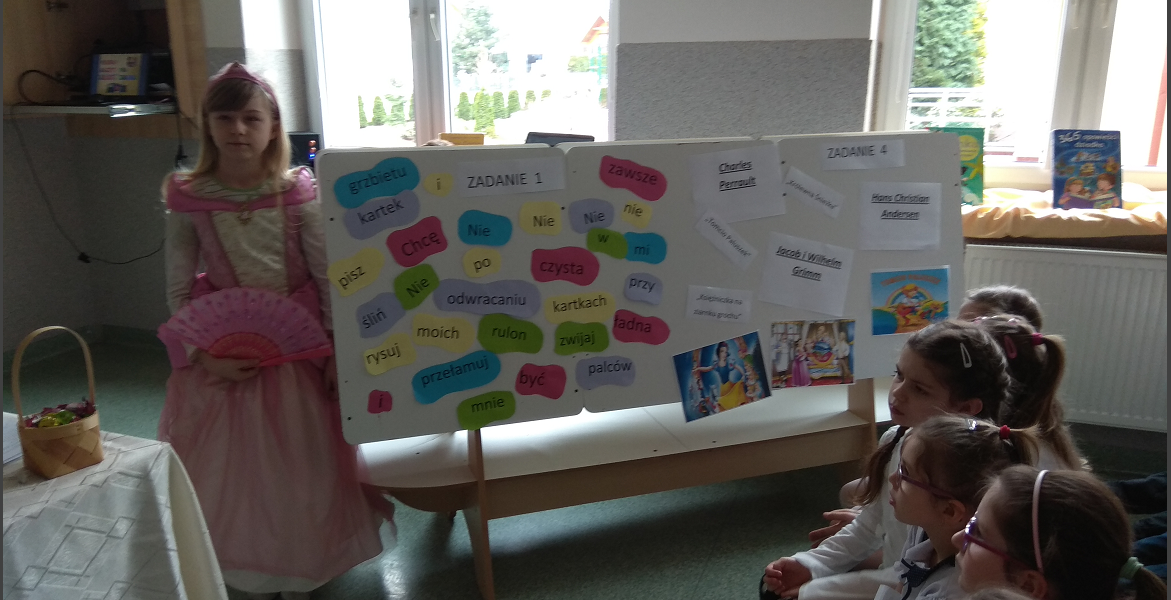 Na pierwszoklasistów czekało kilka zadań, w których mogli wykazać się znajomością bajek i baśni. Ze wszystkimi poradzili sobie znakomicie. Drużynie chłopców i dziewczyn pomagały znane księżniczki: Aurora oraz Roszpunka. Mogli również liczyć na podpowiedź publiczności; wszystkiemu przyglądali się koledzy i koleżanki z klas 3. Finałową częścią spotkania było złożenie uroczystego przyrzeczenia. Uczniowie zostali pasowani na czytelnika, a pani dyrektor Daria Giewanowicz gratulując, wręczyła pamiątkowe dyplomy.