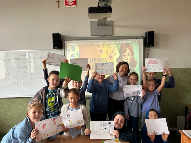 20 listopada br. trzecioklasiści obchodzili Międzynarodowy Dzień Praw Dziecka. Uczniowie wraz z wychowawczynią w tym dniu przybyli do szkoły ubrani na niebiesko. Na lekcjach mieli możliwość zapoznać się, czy też przypomnieć sobie przysługujące im prawa. Zobaczyliśmy film edukacyjny i dzieci wykonały rysunki z ich prawami. Ponadto uczniowie zostali również uświadomieni, że oprócz praw mają również obowiązki oraz do kogo mogą zwrócić się o pomoc w przypadku gdy ich prawa zostaną naruszone. Urozmaiceniem w tym dniu na zajęciach było także to, że jedno dziecko miało możliwość prowadzenia zajęć – Kristina. Pani wychowawczyni dla odmiany wcieliła się w rolę ucznia. Obchody tego święta, miały na celu uzmysłowienie klasie, jak ważne w życiu są wszystkie dzieci i ich prawa.