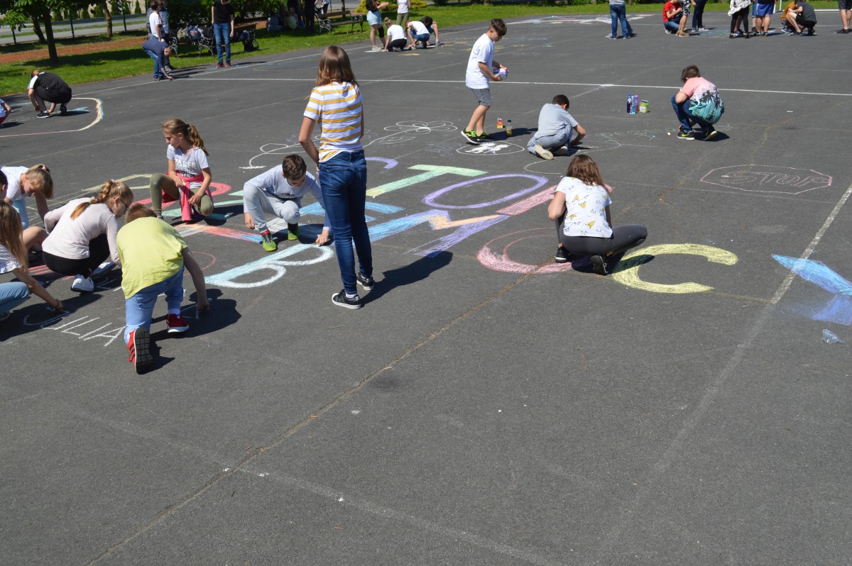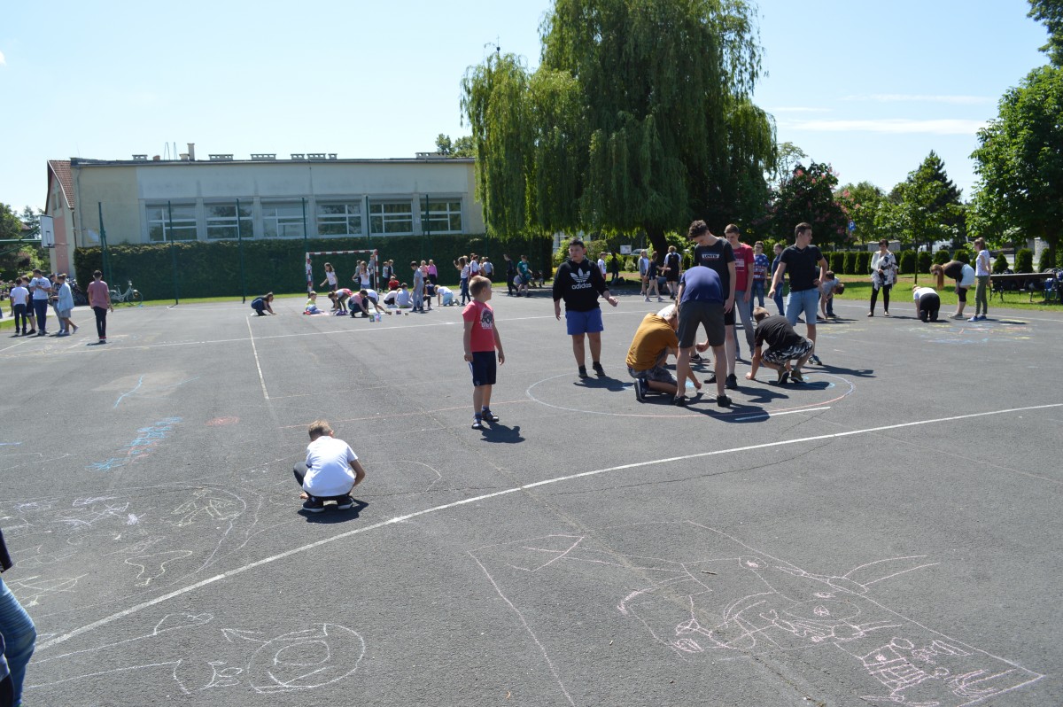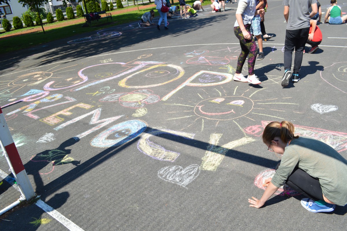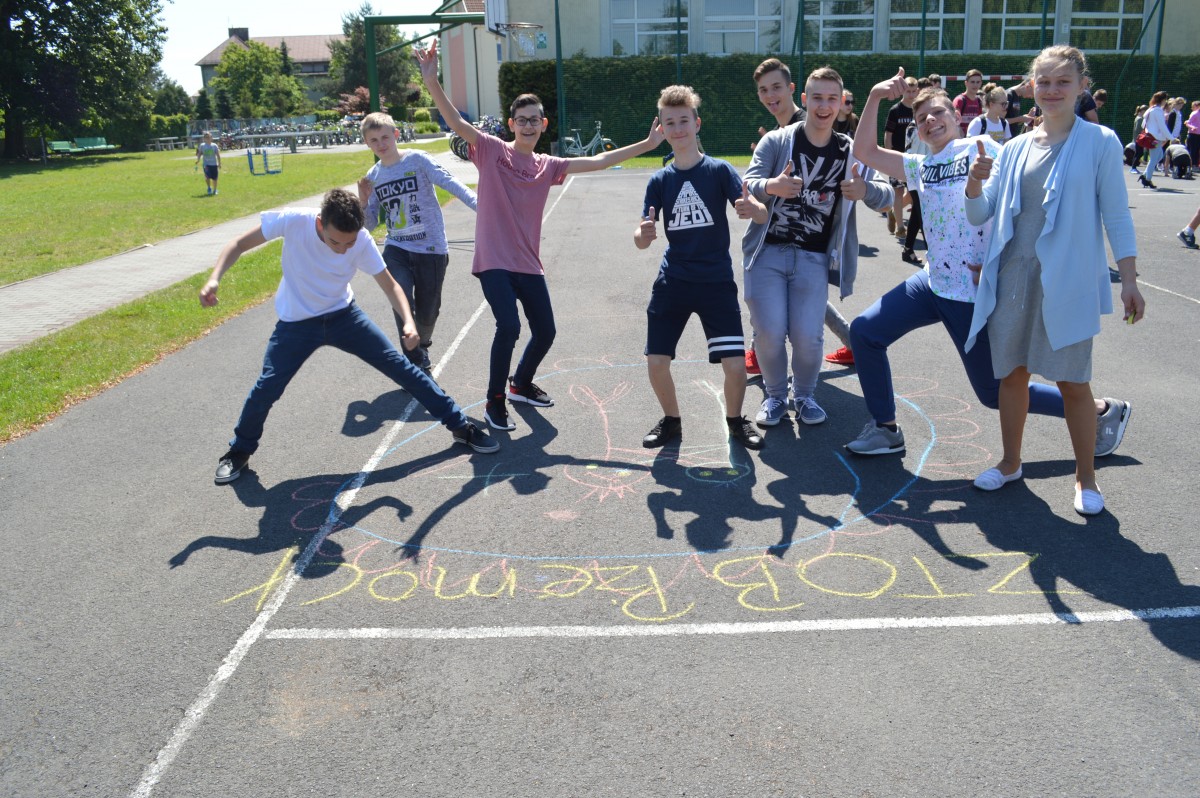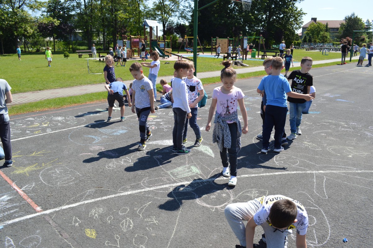 W piątkowe przedpołudnie w naszej szkole obchodziliśmy Dzień Dziecka pod hasłem “Żyj zdrowo i bezpiecznie”. Działo się bardzo dużo, od asfaltowego graffiti po rozgrywki sportowe. Nie zabrakło też lodów , które zasponsorował producent zimnych rarytasów z Namysłowa. Wszyscy uczniowie mogli wysłuchać prezentacji dotyczącej Praw Dziecka przedstawionej przez uczniów klasy VIII.Najmłodsi uczestniczyli w pokazie udzielania pierwszej pomocy przez klasę VIII. Najwięcej śmiechu sprawiła wszystkim prezentacja “Twoja twarz wygląda znajomo”, gdzie uczniowie musieli rozpoznać na zdjęciach z dzieciństwa pracowników szkoły. Jak się okazało zdanie wcale nie było takie proste, ale za to “ubaw po pachy”.