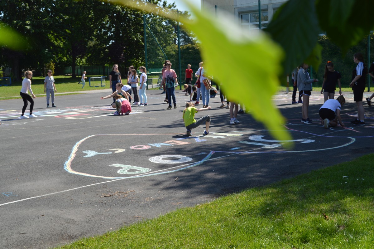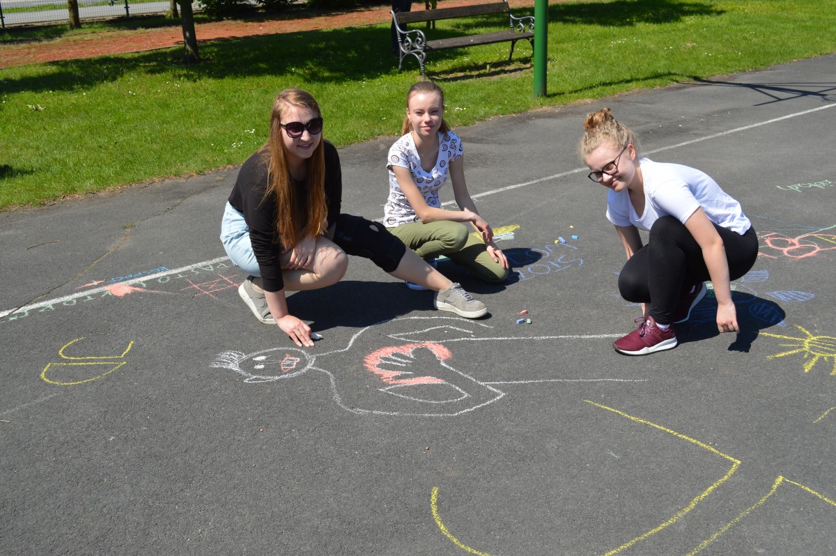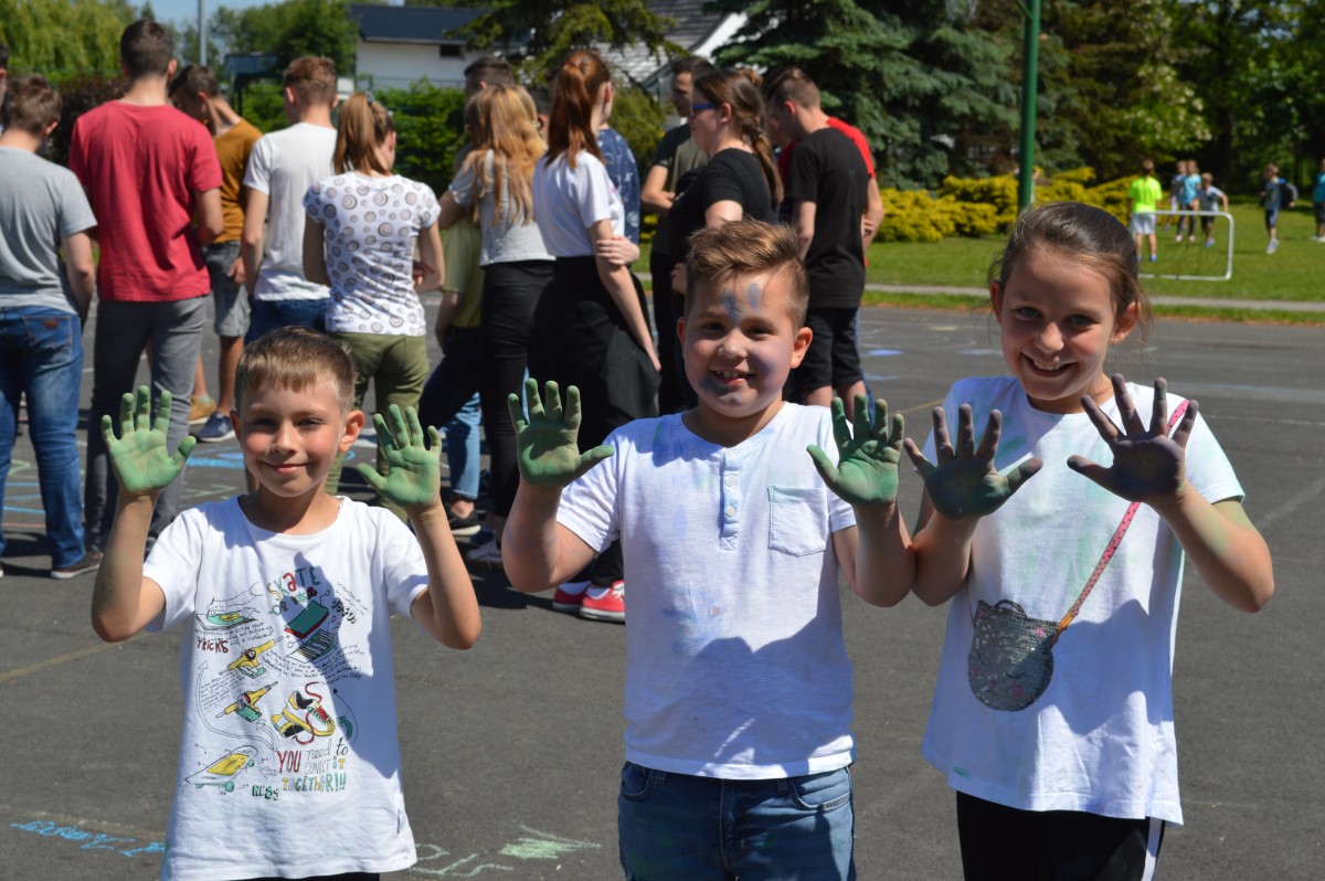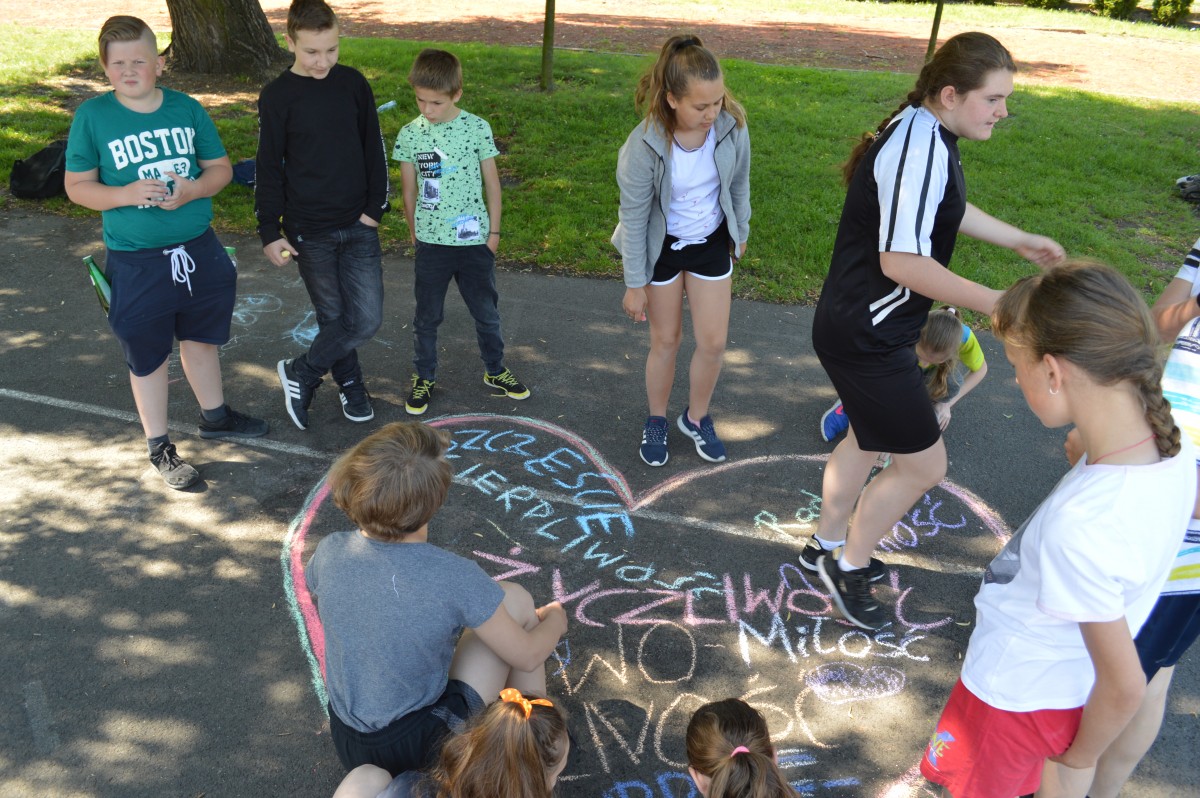 W piątkowe przedpołudnie w naszej szkole obchodziliśmy Dzień Dziecka pod hasłem “Żyj zdrowo i bezpiecznie”. Działo się bardzo dużo, od asfaltowego graffiti po rozgrywki sportowe. Nie zabrakło też lodów , które zasponsorował producent zimnych rarytasów z Namysłowa. Wszyscy uczniowie mogli wysłuchać prezentacji dotyczącej Praw Dziecka przedstawionej przez uczniów klasy VIII.Najmłodsi uczestniczyli w pokazie udzielania pierwszej pomocy przez klasę VIII. Najwięcej śmiechu sprawiła wszystkim prezentacja “Twoja twarz wygląda znajomo”, gdzie uczniowie musieli rozpoznać na zdjęciach z dzieciństwa pracowników szkoły. Jak się okazało zdanie wcale nie było takie proste, ale za to “ubaw po pachy”.
