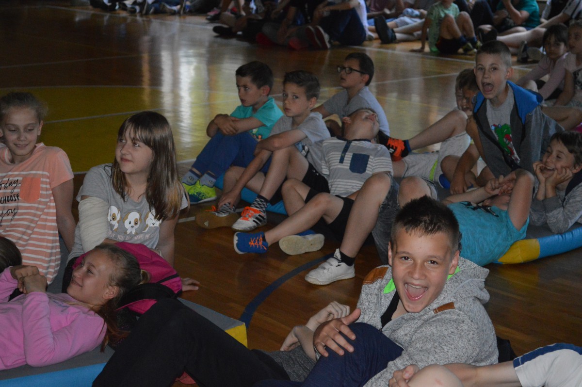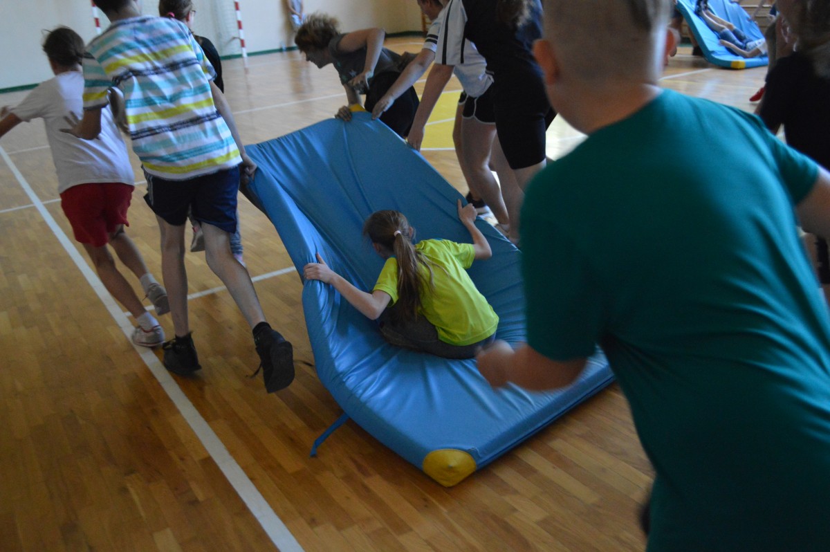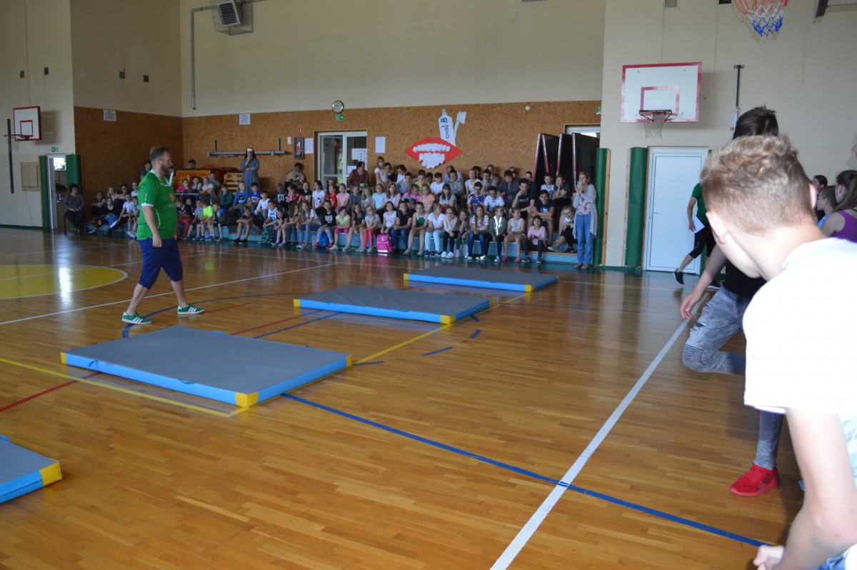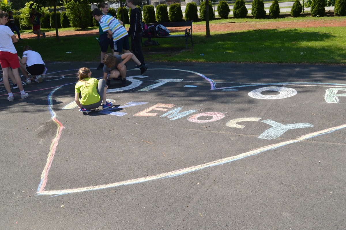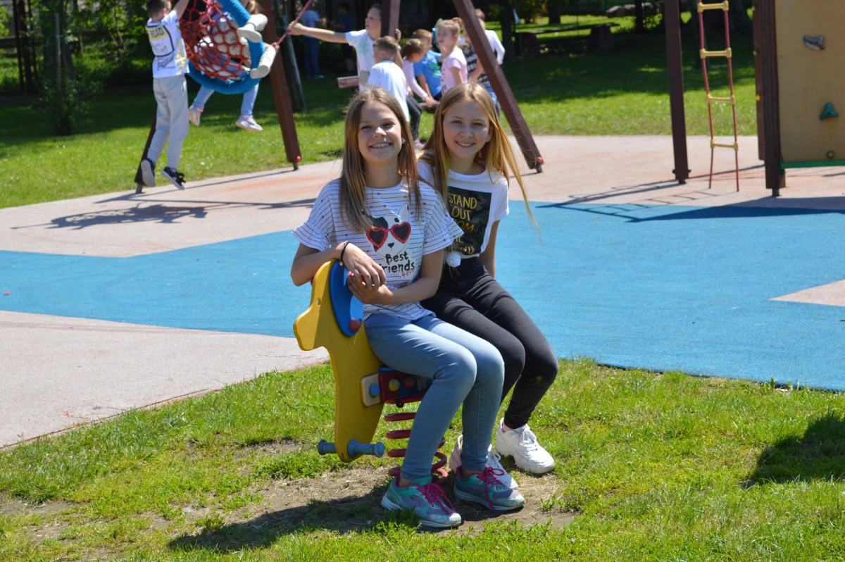W piątkowe przedpołudnie w naszej szkole obchodziliśmy Dzień Dziecka pod hasłem “Żyj zdrowo i bezpiecznie”. Działo się bardzo dużo, od asfaltowego graffiti po rozgrywki sportowe. Nie zabrakło też lodów , które zasponsorował producent zimnych rarytasów z Namysłowa. Wszyscy uczniowie mogli wysłuchać prezentacji dotyczącej Praw Dziecka przedstawionej przez uczniów klasy VIII.Najmłodsi uczestniczyli w pokazie udzielania pierwszej pomocy przez klasę VIII. Najwięcej śmiechu sprawiła wszystkim prezentacja “Twoja twarz wygląda znajomo”, gdzie uczniowie musieli rozpoznać na zdjęciach z dzieciństwa pracowników szkoły. Jak się okazało zdanie wcale nie było takie proste, ale za to “ubaw po pachy”.