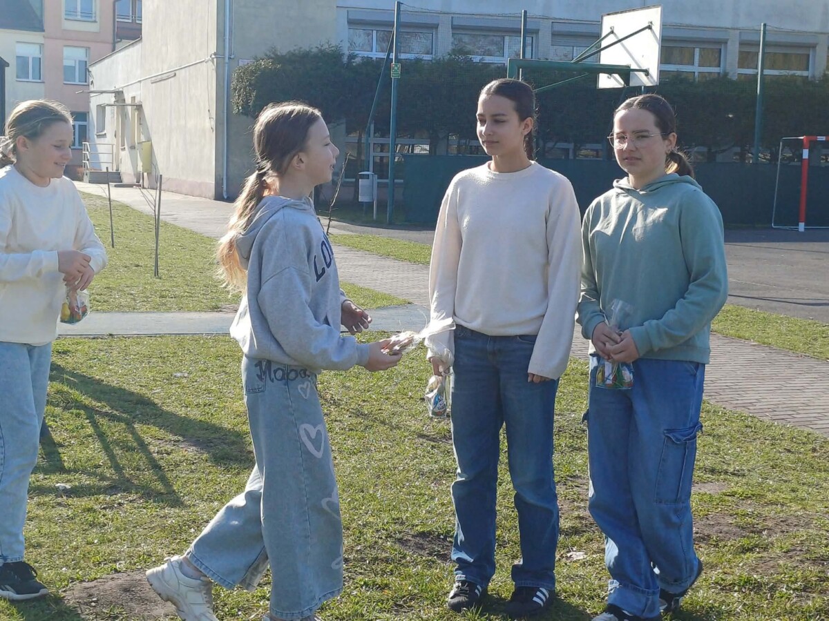W naszej szkole odbyło się nietypowe i pełne humoru wydarzenie – Dzień bez plecaka. Tego dnia uczniowie zostawili swoje tradycyjne tornistry w domu, zastępując je pomysłowymi i często zaskakującymi „zamiennikami”. Już od samego rana szkolne korytarze wypełniły się nietypowymi „torbami”. Można było zobaczyć książki przynoszone w walizkach, koszykach na zakupy, poduszkach, w skrzynkach na narzędzia, plastikowym wiaderku, poduszce czy wózkach dziecięcych. Niektórzy uczniowie wykazali się ogromną kreatywnością, wykorzystując przedmioty codziennego użytku w zupełnie nowy sposób. Dzień bez plecaka był nie tylko okazją do dobrej zabawy, ale także sposobem na integrację społeczności szkolnej. Uczniowie chętnie dzielili się swoimi pomysłami i wspólnie podziwiali najbardziej oryginalne rozwiązania. Takie inicjatywy pokazują, że szkoła to nie tylko miejsce nauki, ale również przestrzeń do rozwijania kreatywności i budowania relacji. Oprócz tego do niektórych klas zawitał już zajączek, a inne celebrowały dzisiaj śniadanie wielkanocne.