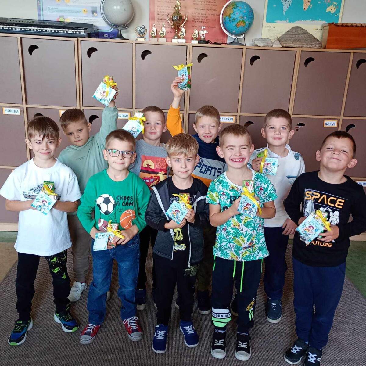 W dniu 30.09.24r. obchodziliśmy w naszej placówce „Dzień Chłopaka”. Uczniowie i nauczyciele wspólnie celebrowali to święto. Oprócz drobnych upominków również po klasach krążyły kartki z życzeniami dla uczniów. Do grona obdarowanych doszli jeszcze panowie wuefiści oraz pan woźny. W tym dniu panowała wyjątkowa atmosfera, ponieważ święto stanowiło nie tylko okazję do zabawy, ale także do umocnienia szkolnych więzi i wzajemnego wsparcia.