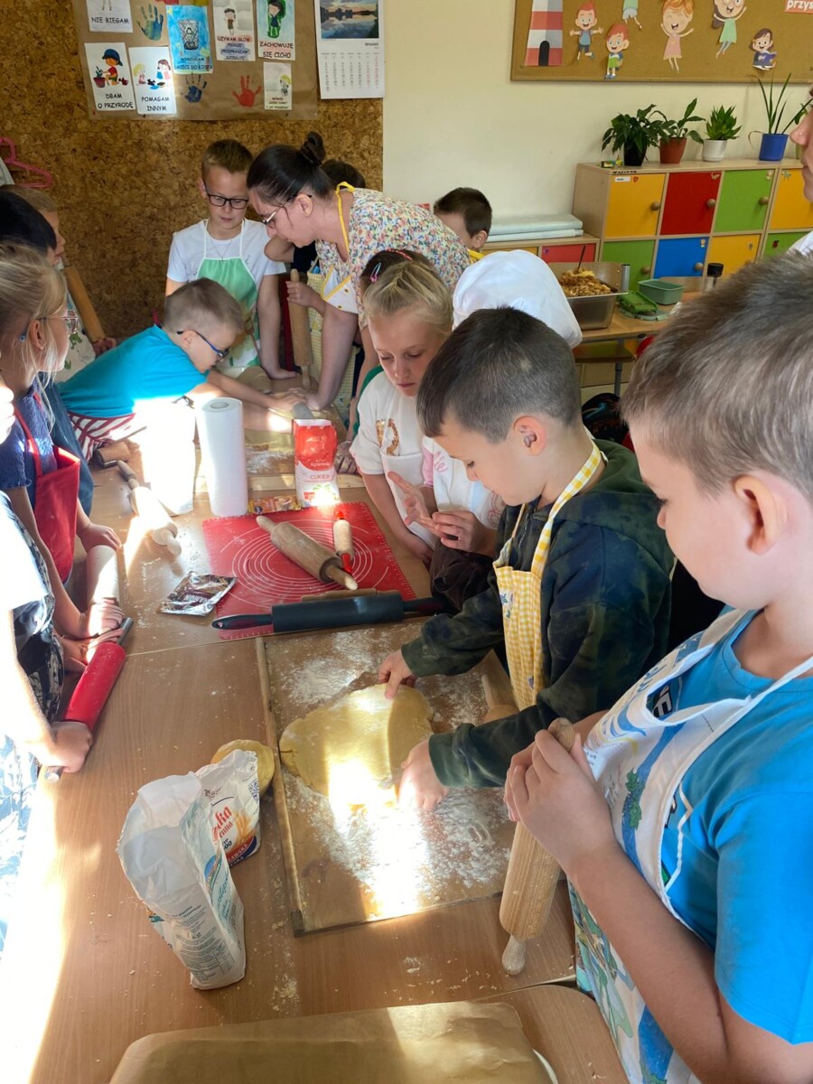 W klasie 2 a tradycyjnie obchodziliśmy „ Dzień jabłka” To już nasza mała tradycja i z tej okazji upiekliśmy wspólnie pyszną szarlotkę. Ciasto przygotowaliśmy bardzo szybko i sprawnie, mamy już wprawę. Podczas pieczenia zapach rozchodził się po całej szkole i wszystkim robił smaka. Oczywiście było tyle chętnych do skosztowania, że musieliśmy obiecać, że znowu upieczemy ciasto.. To był wspaniały dzień.