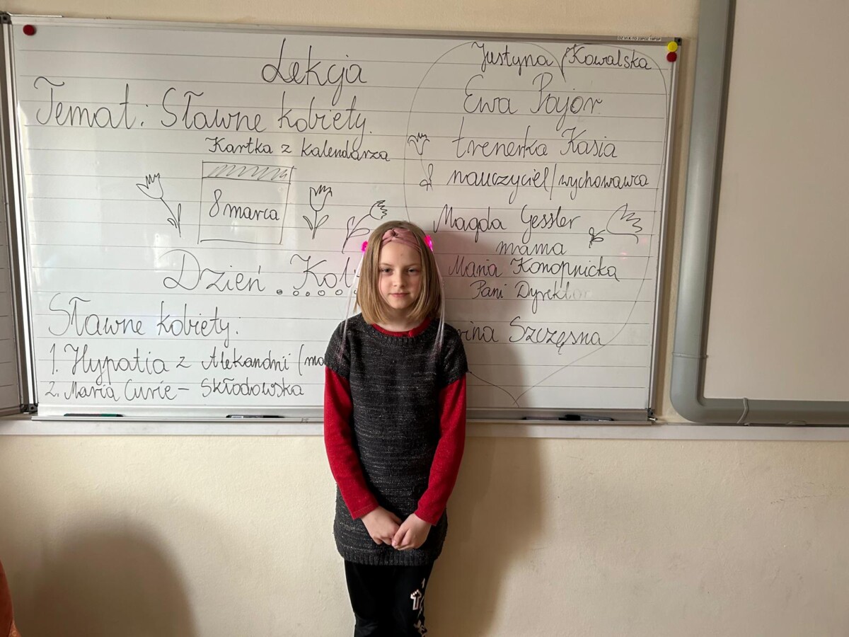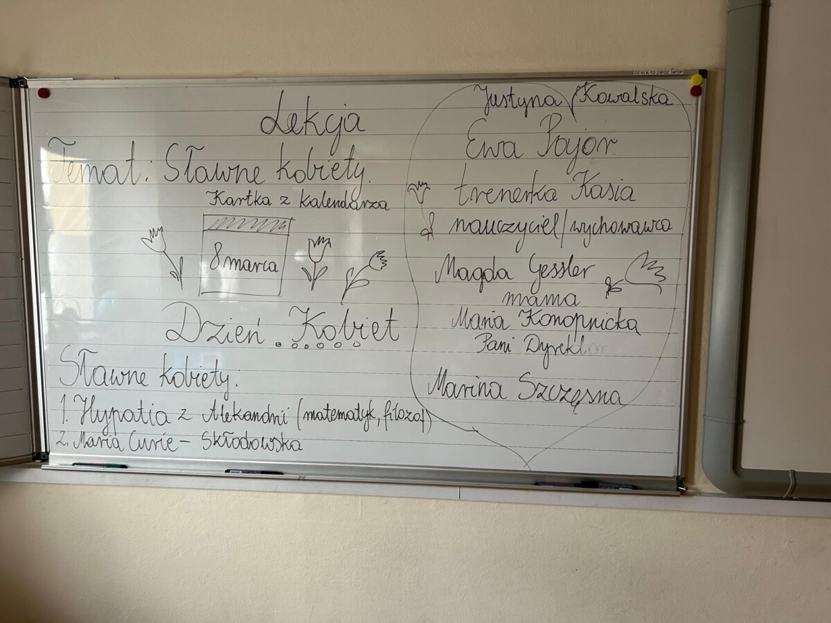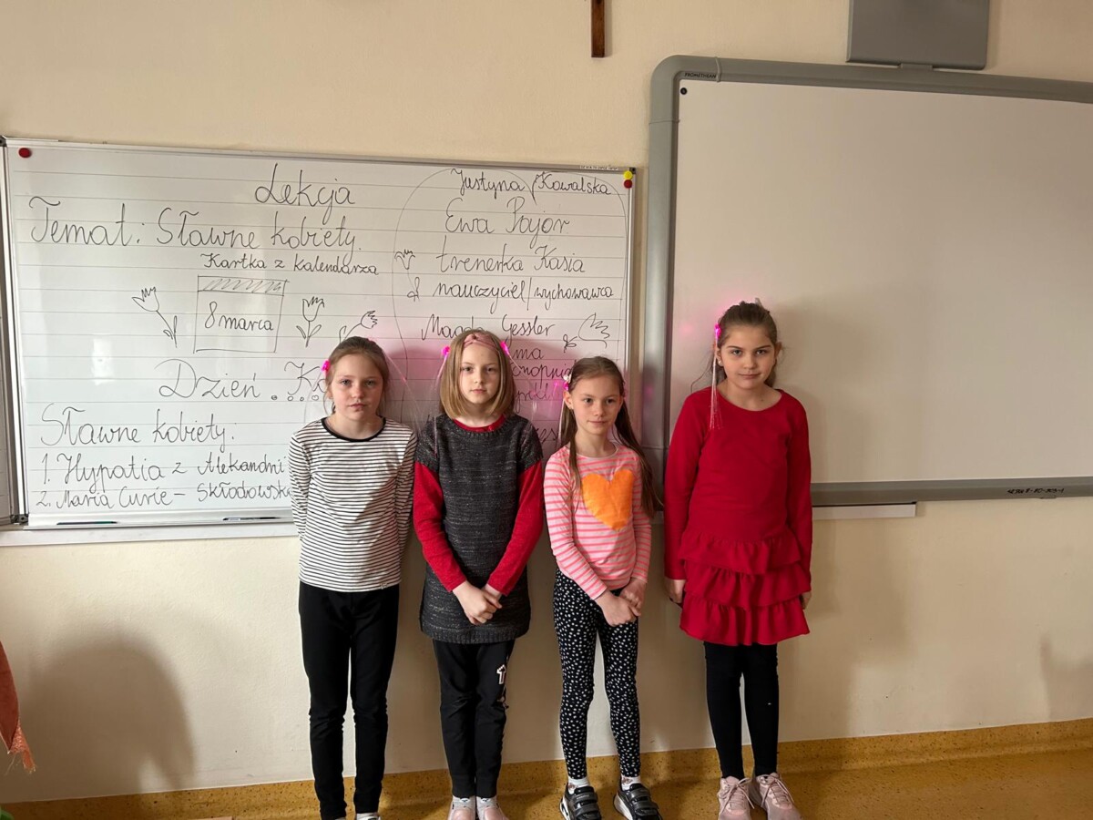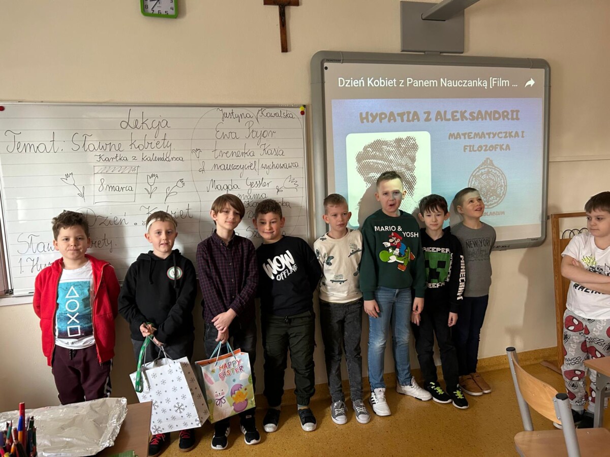 8 marca to dzień, o którym nie wypada zapomnieć. Pamiętali o nim również chłopcy z klasy drugiej, którzy złożyli swoim koleżankom życzenia oraz wręczyli małym kobietkom imienne bransoletki. Dziewczynki były zachwycone. Chłopcy wręczyli również kwiatek swojej wychowawczyni. Na lekcji rozmawiano o sławnych kobietach. W klasie drugiej autorytetem dla uczniów są mamy, sławni sportowcy – Justyna Kowalska, trenerka piłki nożnej pani Kasia, Magda Gessler, pani Dyrektor, wychowawczyni, Maria Konopnicka.