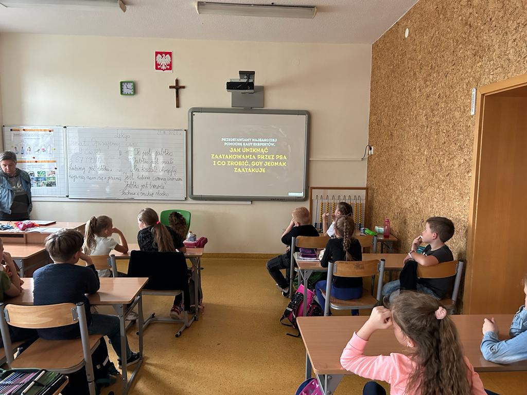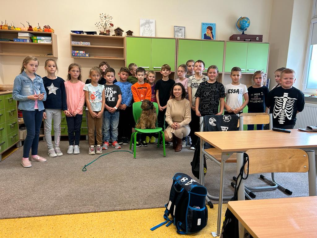 Dzień Kundelka, czyli nieformalne święto wszystkich psów wielorasowych, obchodzone jest tradycyjnie 25 października. To również Dzień Ustawy o Ochronie Zwierząt, a październik jest miesiącem dobroci dla nich. Pies to najlepszy przyjaciel człowieka, z tej okazji z wielką radością drugoklasiści świętowali ten dzień. Na lekcje zaproszono panią Małgorzatę Frącz , która oprócz zawodu nauczyciela jest również instruktorką szkolenia psów i behawiorystą w Szkole dla psów Lim Grażyny Wilińskiej , która przybliżyła dzieciom wiadomości nt. ras psów oraz przypomniała jakie są obowiązki i odpowiedzialność związana jest z posiadaniem psa lub każdego innego zwierzątka. Instruktorka przeprowadziła także z uczniami interesującą pogadankę, podczas której zwróciła szczególną uwagę na częste błędy popełniane przez dzieci podczas kontaktu z psem, wymieniła najczęstsze powody ataku czworonoga. Pani Małgorzata wytłumaczyła , w jaki sposób należy zachować się podczas kontaktu z niebezpiecznym psem, a także nauczyła drugoklasistów, jak ocenić, czy pies przygotowuje się do ataku. Uczniowie również