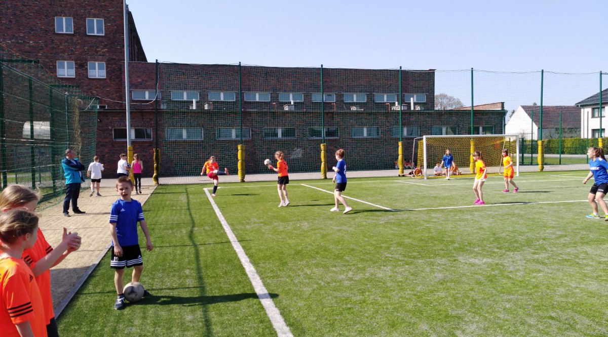 Piękne wiosenne, poniedziałkowe przedpołudnie 9 kwietnia spędziliśmy na zawodach gminnych mini piłki nożnej młodszej młodzieży szkolnej. Mieliśmy przyjemność zagrać na wysokiej jakości sztucznej murawie dobrzeńskiego orlika, której może nam pozazdrościć niejeden orlik.Klasycznie na etapie gminnym  zmierzyliśmy się ze szkołami z Kup i Dobrzenia Wielkiego. Dziewczyny po walecznym meczu nieznacznie przegrały z Dobrzeniem.Chłopcy mieli trudniejszą przeprawę. PSP z Oddziałami Sportowymi w Dobrzeniu Wielkim okazało się silniejsze. Z kolei w meczu z Kup pokazali już co znaczy kawał dobrego, chróścickiego Fussballu. Tak więc dziewczęta i chłopcy zajęli drugie miejsce w gminie. Naszą szkołę reprezentowali: