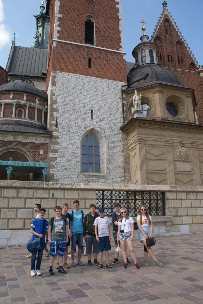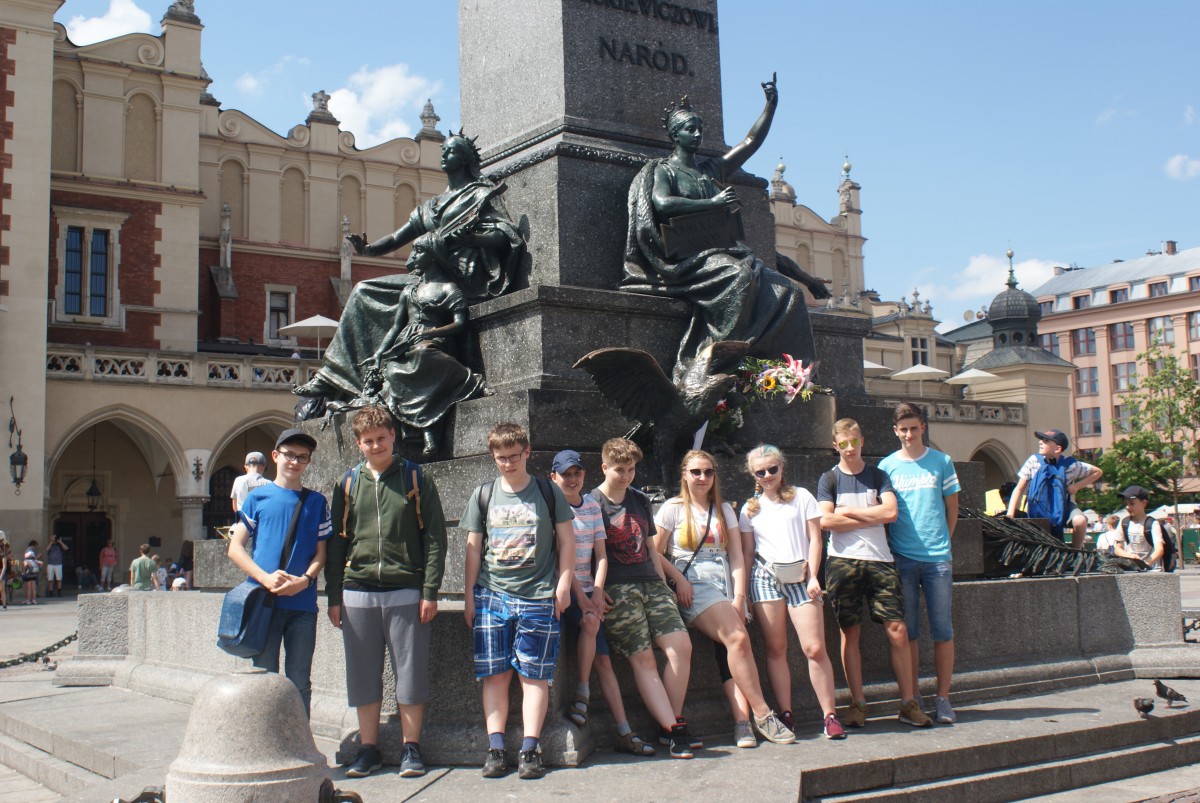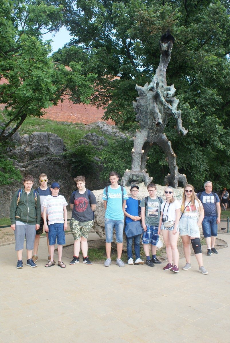 W dniach 06.06 – 07.06 część uczniów klasy trzeciej gimnazjum wybrała się na wycieczkę do Krakowa. Pomimo upalnej pogody udało się odwiedzić wiele atrakcyjnych miejsc w tym pięknym mieście. Uczniowie zwiedzili dzielnicę Krakowa – Kazimierz, poznając jej historię i przenosząc się w interesujący klimat tego szczególnego miejsca. Odwiedzili Zamek Królewski na Wawelu, Katedrę Wawelską wraz z podziemiami oraz znany wszystkim Dzwon Zygmunta. Oczywiście trzeba było również odwiedzić smoczą jamę, wraz z jej właścicielem – Smokiem Wawelskim. Był też czas na odpoczynek nad naszą piękną Wisłą. Późnym wieczorem, dla ochłody uczniowie zeszli do Muzeum Podziemia Rynku, gdzie poznali w ciekawy sposób część historii Krakowa.
