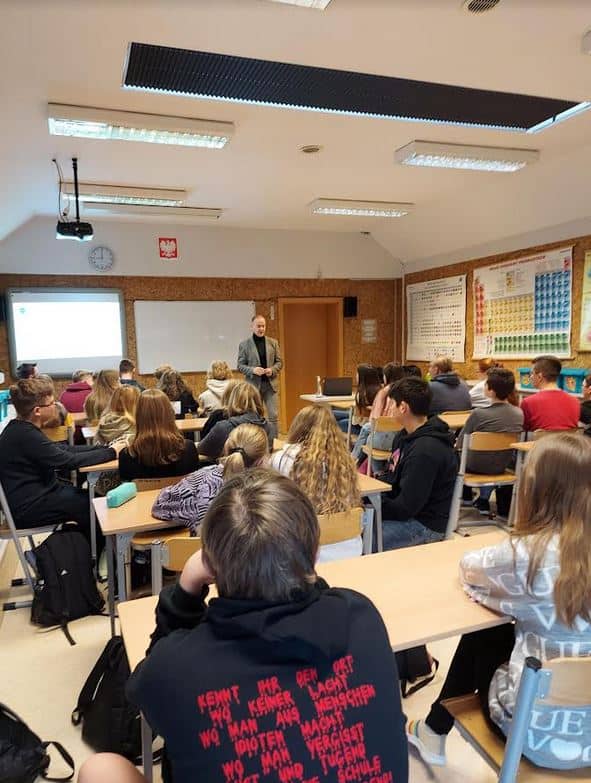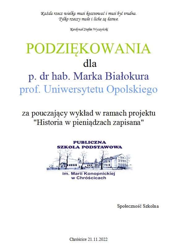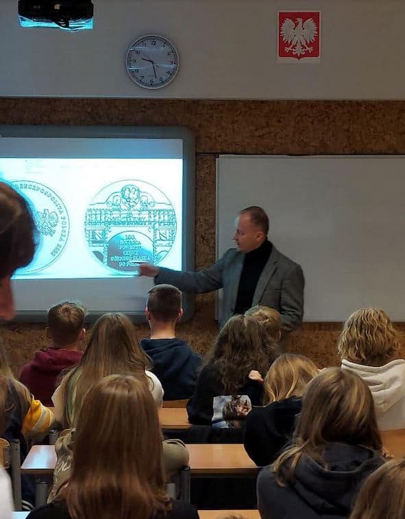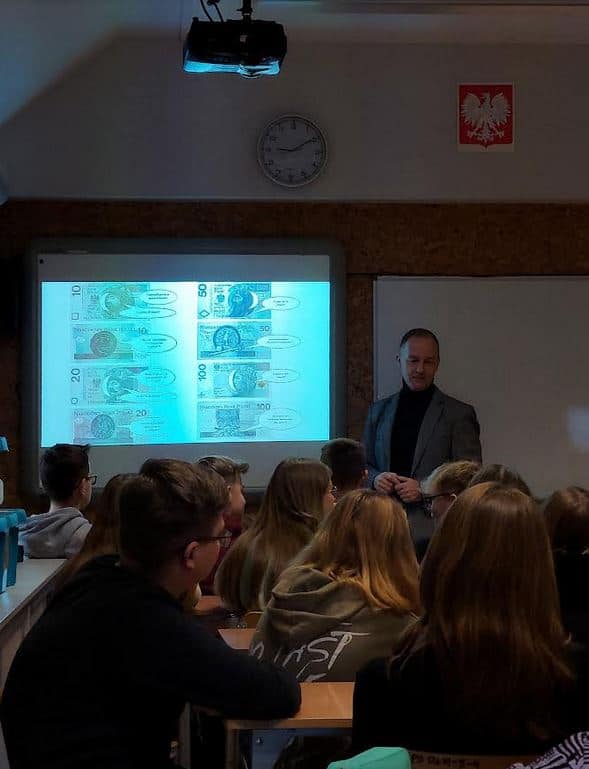 21.11.2022 ósmoklasiści z naszej szkoły mogli gościć na spotkaniu ważne osoby- p. dr Dorotę Gajdę- Szczegielniak- koordynatora projektu i p. dr hab Marka Białokura- profesora Uniwersytetu Opolskiego- prelegenta spotkania. Uczniowie mieli niezwykłą okazję uczestniczyć w ciekawej lekcji związanej z tak ważną w dzisiejszych czasach rzeczą jaką jest pieniądz. Umiejętnie rozpoznawali osoby figurujące na polskich banknotach- wykazali się znajomością postaci historycznych, a być może tak łatwo było im zapamiętać te postacie, ponieważ na co dzień mają do czynienia z pieniędzmi. Nauczyli się jak w inteligentny sposób dokonywać finansowych negocjacji.