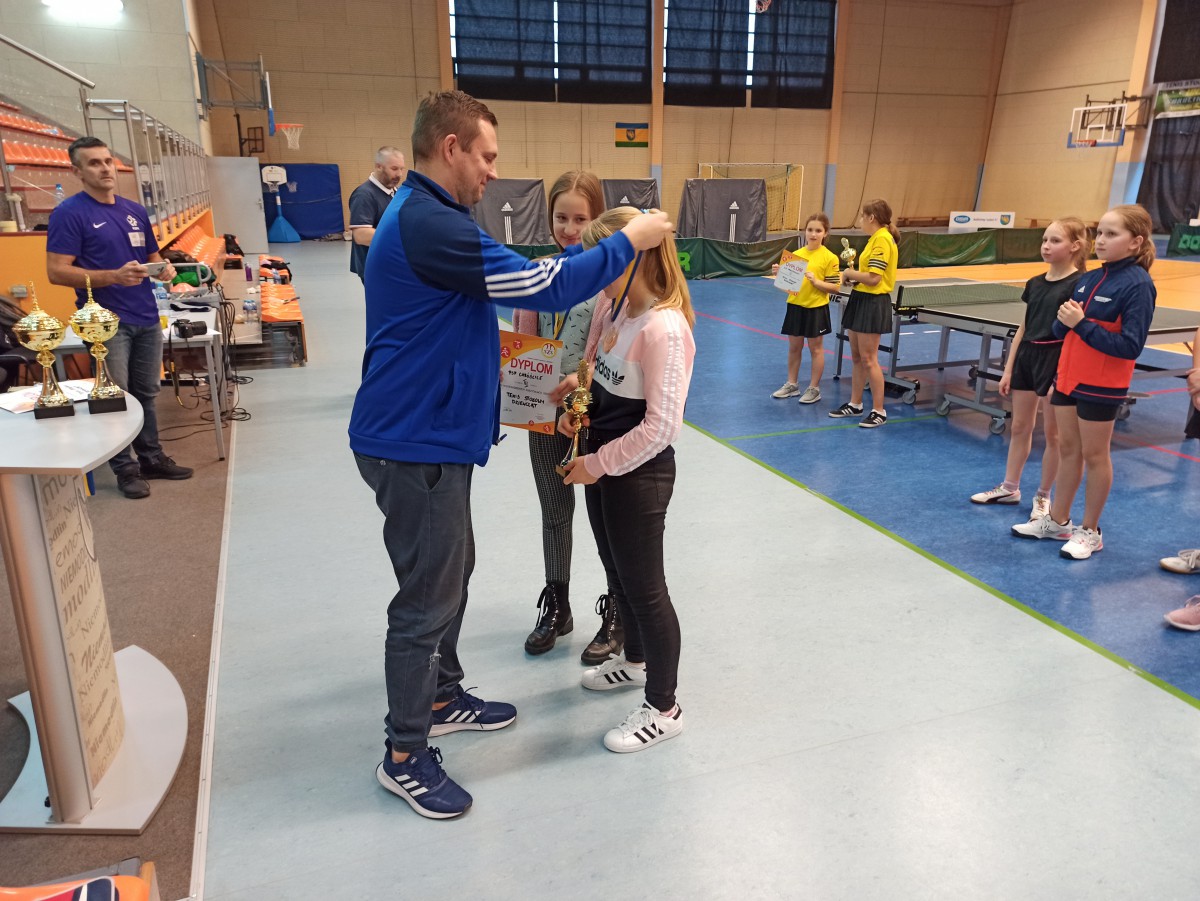 również wygraliśmy 3:1 z PSP 2 Zdzieszowice. Wygrane te dały nam awans do półfinału. W półfinale trafiliśmy na faworytki tego turnieju PSP Dalachów. Dziewczyny o włos były od wygranej ale niestety nie udało się i przegrały po zaciętym pojedynku 2:3.W meczu o trzecie miejsce nasze dziewczyny spotkały się z PSP Pawłowiczki pokonując rywalki 3:1 i ty samym zdobywając brązowy medal Mistrzostw Województwa . Naszą drużynę reprezentowały Izabela Matros i Olivia Wilińska. Opiekę trenerską na tych zawodach sprawował Marcin Kondziela.