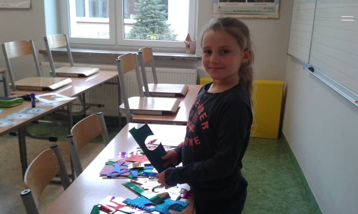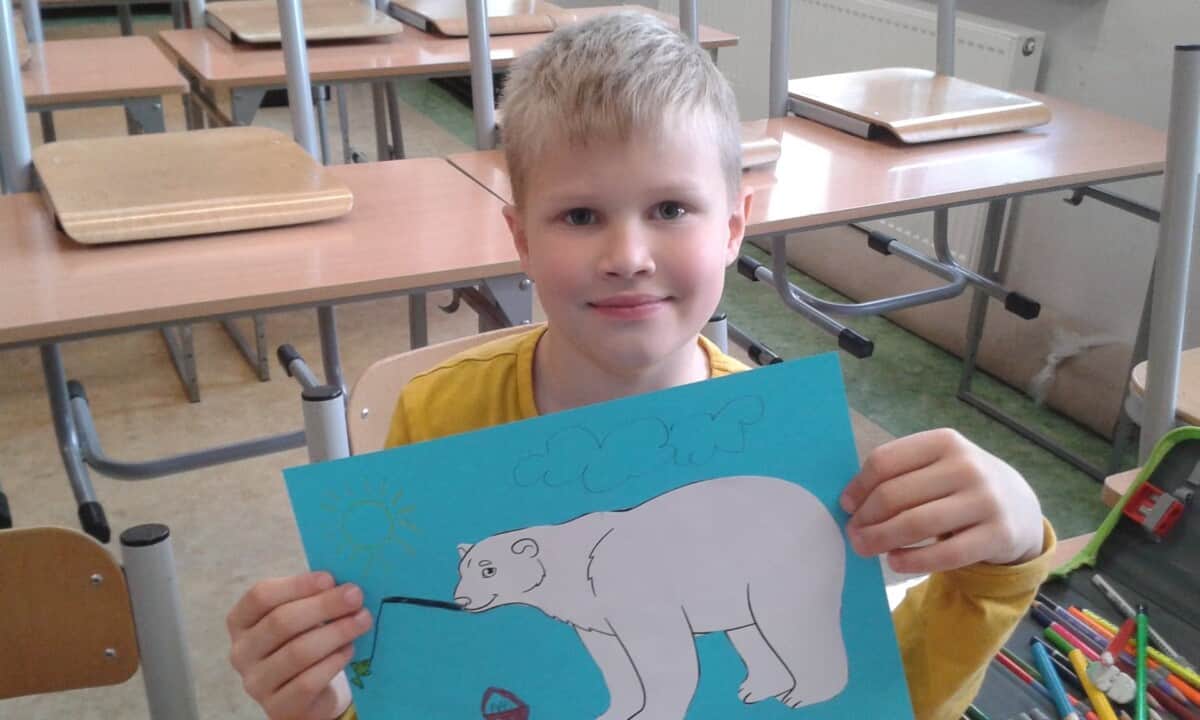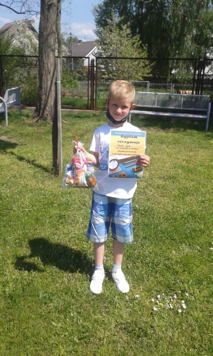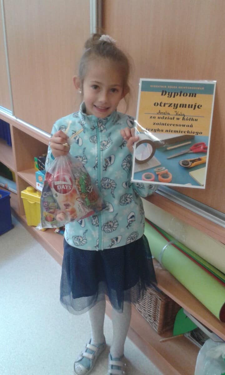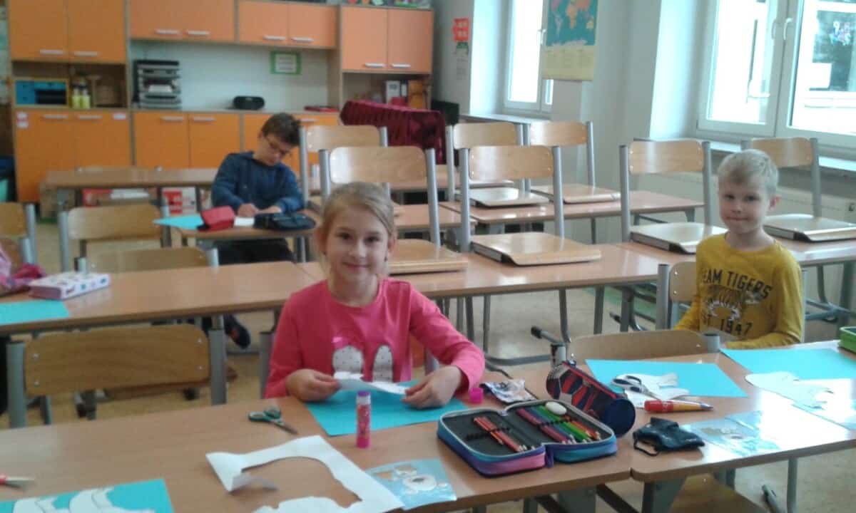 nastawienia do języka obcego i elementów kultury niemieckojęzycznej oraz rozwijanie umiejętności wykorzystywania języka obcego – języka niemieckiego w sytuacji pozalekcyjnej(kształtowanie kompetencji kluczowych). Uczniowie mogli poprzez udział w dodatkowych zajęciach polepszyć swoją znajomość języka oraz poznać nowe ciekawostki krajoznawcze, historyczne i kulturalne krajów niemieckojęzycznych. Program przeznaczony był dla uczniów klas I-III i realizowany od 01.03.21r – 12.05.21r. Dzieci poznawały bajkowe postacie i ich przygody m. in. tęczową rybkę czy też małego kruka „Socke”. Zajęcia odbywały się zarówno on – line, jak i stacjonarnie. Uczniowie chętnie brali udział w zajęciach, a do każdej nowo poznanej bajki tworzyli prace plastyczne. Oto efekt ich działań.