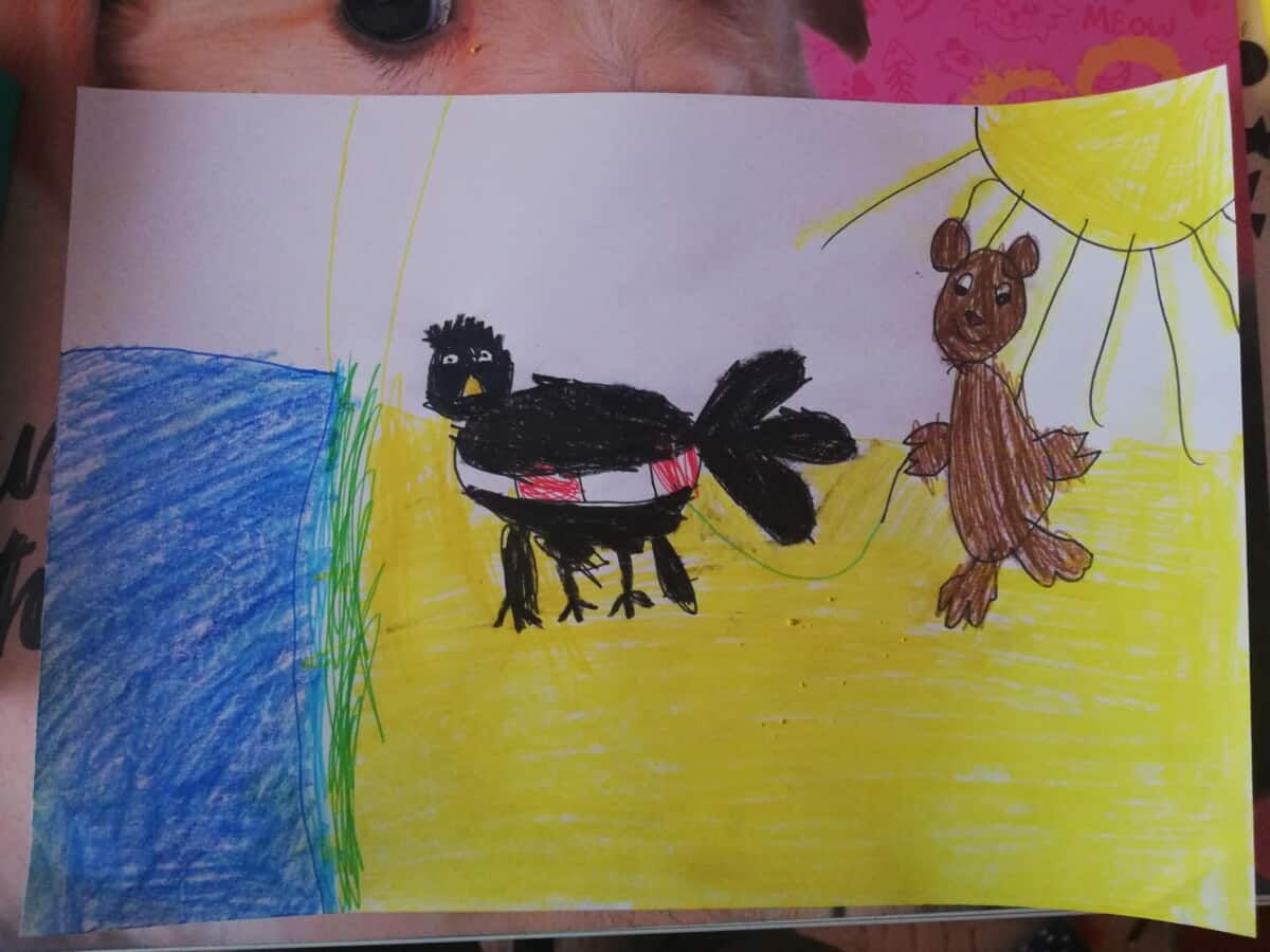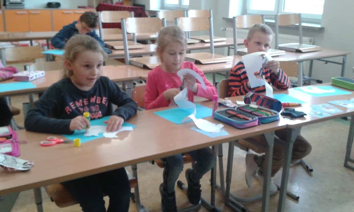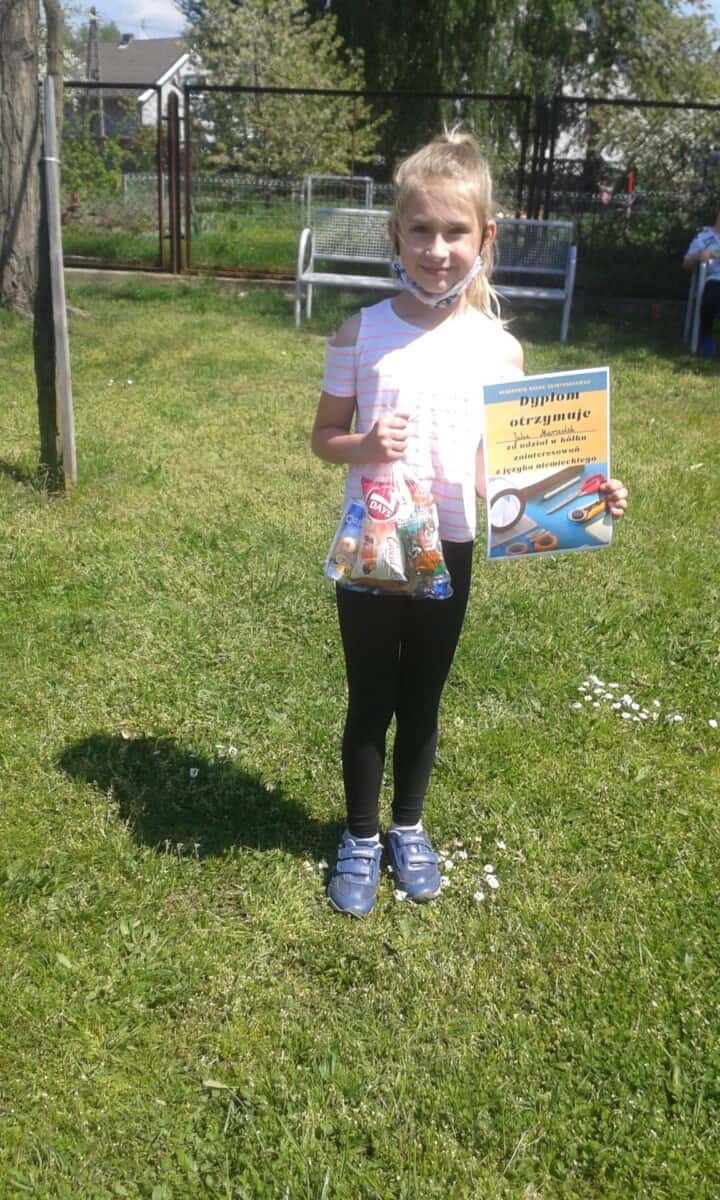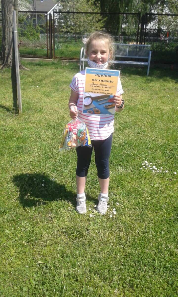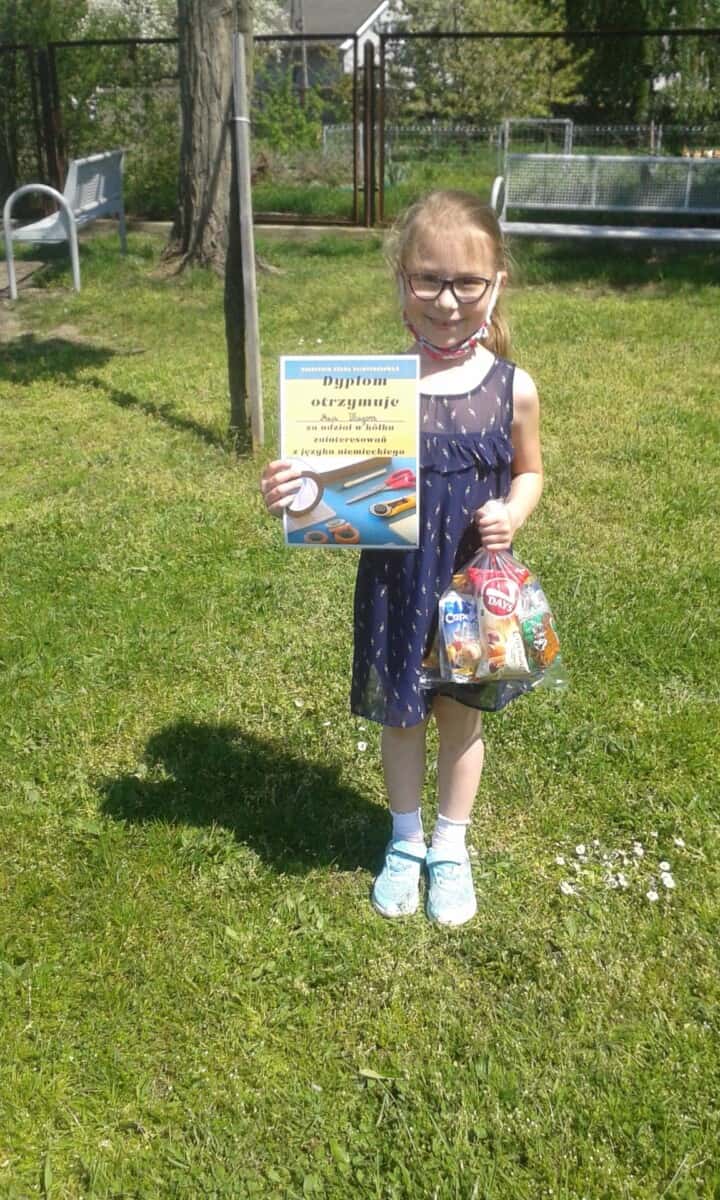nastawienia do języka obcego i elementów kultury niemieckojęzycznej oraz rozwijanie umiejętności wykorzystywania języka obcego – języka niemieckiego w sytuacji pozalekcyjnej(kształtowanie kompetencji kluczowych). Uczniowie mogli poprzez udział w dodatkowych zajęciach polepszyć swoją znajomość języka oraz poznać nowe ciekawostki krajoznawcze, historyczne i kulturalne krajów niemieckojęzycznych. Program przeznaczony był dla uczniów klas I-III i realizowany od 01.03.21r – 12.05.21r. Dzieci poznawały bajkowe postacie i ich przygody m. in. tęczową rybkę czy też małego kruka „Socke”. Zajęcia odbywały się zarówno on – line, jak i stacjonarnie. Uczniowie chętnie brali udział w zajęciach, a do każdej nowo poznanej bajki tworzyli prace plastyczne. Oto efekt ich działań.