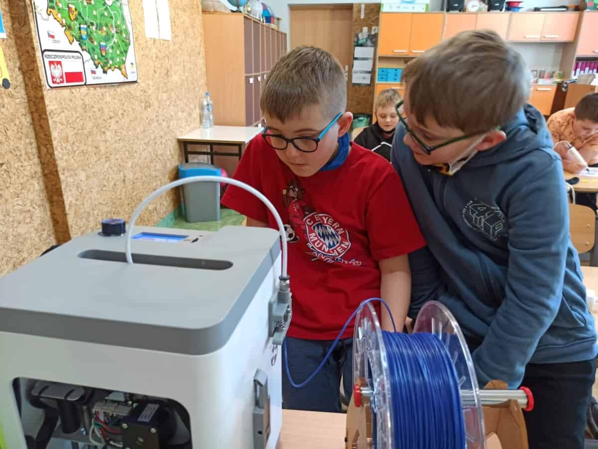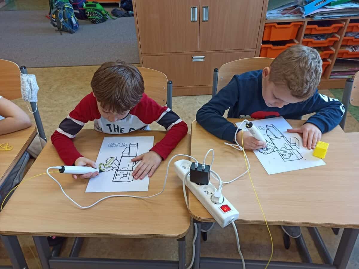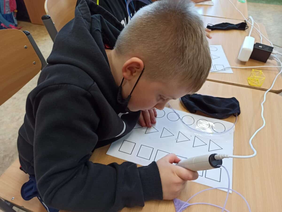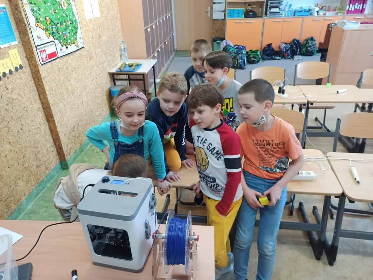 Dziś na zajęciach uczyliśmy się jak działa drukarka 3D oraz jak powstaje wydruk. Dzieciaki pracowały indywidualnie nad swoim drukiem wykonanym także długopisami 3D sprawdzając jednocześnie czy mogą zrobić takie same elementy jak drukarka. Sprawdziliśmy na czym polega precyzja ramion drukarki a naszych ramion tworząc figury geometryczne w przestrzeni 3D. Uczyliśmy się także czym się różni wkład do zwykłego długopisu od filamentu oraz jakie są rodzaje i przy jakich temperaturach się rozpuszcza. Rozwiązywaliśmy problemu jakie mogą nas spotkać przy obsłudze drukarki rozmyślając czego nie jesteśmy w stanie wydrukować.