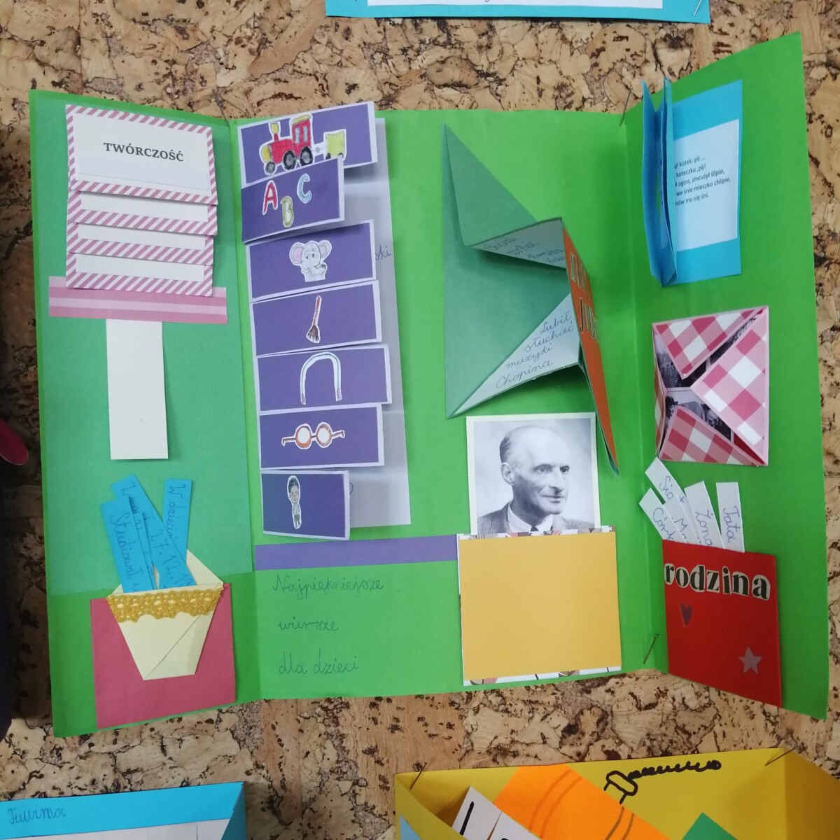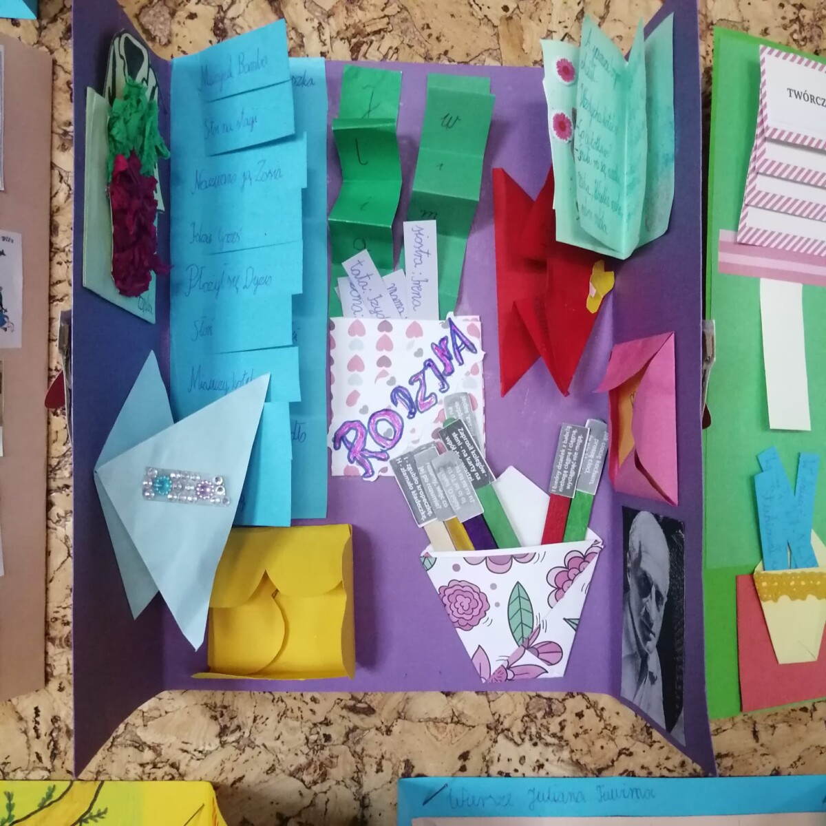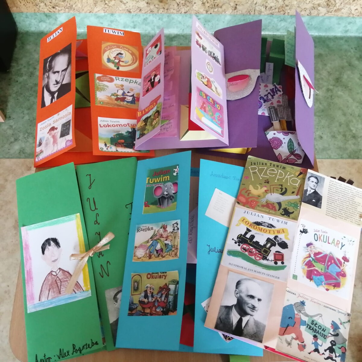 Klasa 2 a zrealizowała projekt w ramach Narodowego Programu Rozwoju Czytelnictwa dotyczący poezji Juliana Tuwima. Uczniowie zapoznali się z faktami z życia małego Julka, a także poznali jego wiersze napisane dla dzieci. Każdy uczeń opanował pamięciowo wybrany przez siebie wiersz. Wykonał własnoręcznie lapbook, czyli „książeczkę”, która zawiera kieszonki, koperty, spiralki, składanki, w których zgromadził informacje dotyczące życia i twórczości poety. Dzieci wykazały się dużą kreatywnością. Ich lapbooki są bardzo ciekawe i kolorowe. Praca nad nimi dała dzieciom wiele radości. Każda oddana „książeczka” zbudzała ciekawość, motywowała dziecko do odkrywania ukrytych ciekawostek, a także do sprawdzenia swojej wiedzy. Podczas tworzenia lapbooków dzieci uczyły się takich umiejętności jak: czytanie, pisanie, ortografia, układanie zdań, czytanie ze zrozumieniem, planowanie, projektowanie graficzne, selekcja informacji i wiele innych. Taki sposób gromadzenia informacji angażuje wszystkie zmysły, co ułatwia szybkie zapamiętywanie i przyswajanie wiedzy.