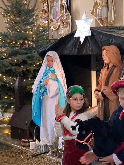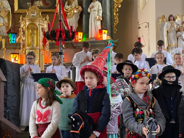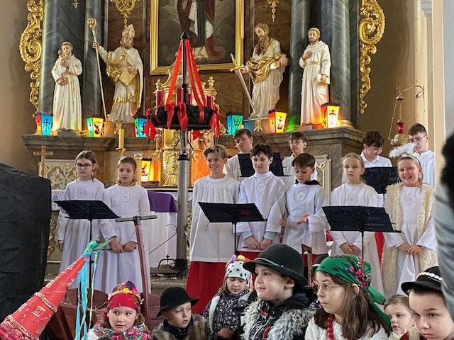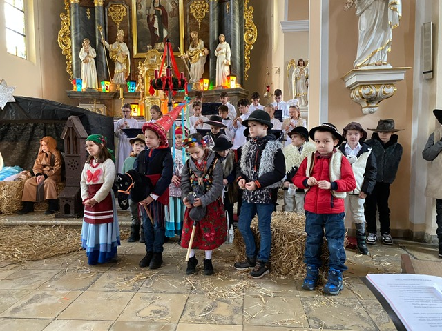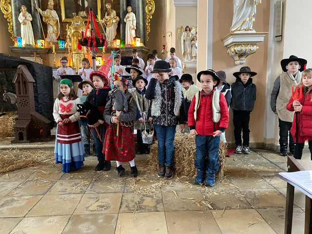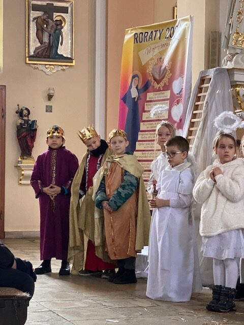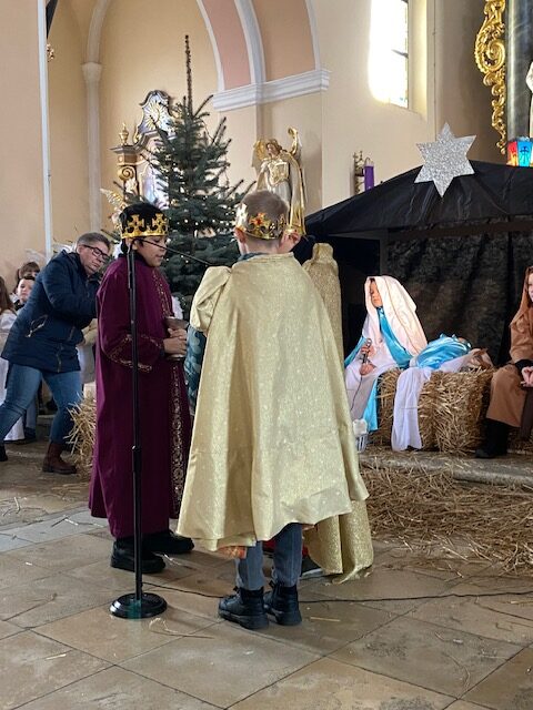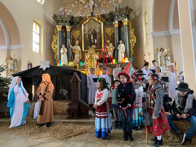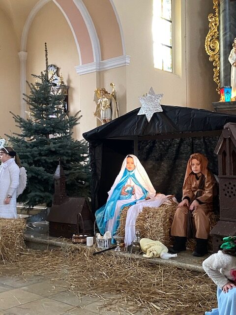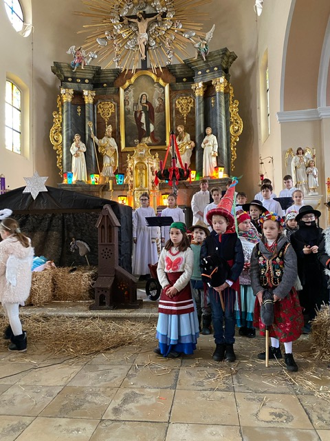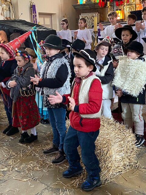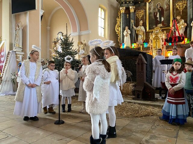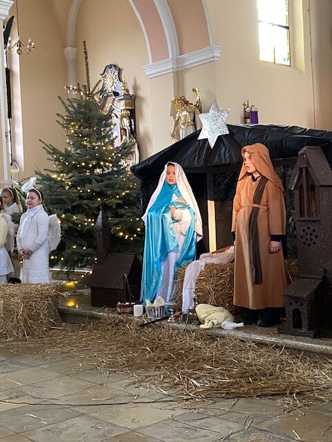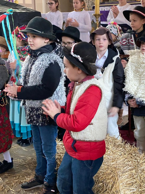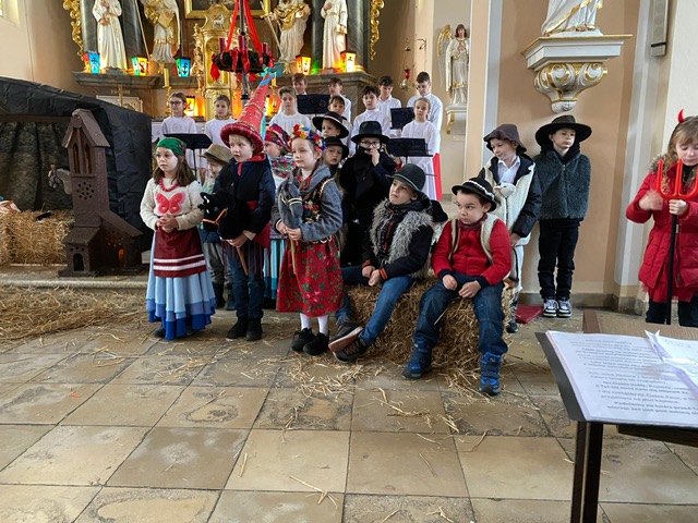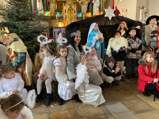 Te grudniowe święta sprawiają, że cały świat chociaż na chwilę się zatrzymuje. Każdy z nas z niecierpliwością czeka na ubieranie choinki, wigilijny stół, śpiewanie kolęd, łamanie się opłatkiem, czy na możliwość spotkania się z rodziną. Święta Bożego Narodzenia to dla nas wszystkich szczególny czas, przepełniony chwilami wielkiej radości, wzruszeń i niespodzianek. Czas, kiedy odnajdujemy spokój, moment wytchnienia od codziennych trosk. W oczekiwaniu na te magiczne dni, 19 grudnia, uczniowie klas 1a, 2a a także uczniowie klasy 4 i 7 (zespół wokalny) przygotowali jasełka bożonarodzeniowe. Mali aktorzy przenieśli widzów do ubogiej stajenki w Betlejem. W specjalnie przygotowanych strojach oraz w otoczeniu pięknej scenografii Kościoła przedstawili narodziny Jezusa. Klasyczne sceny biblijne przeplatały się ze wspólnym śpiewaniem kolęd i pastorałek. Występ wprowadził całą społeczność szkolną w świąteczny nastrój.