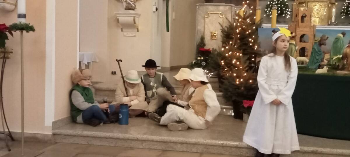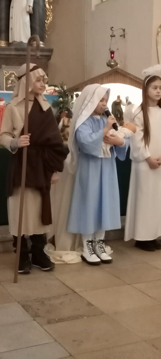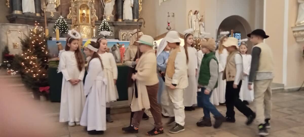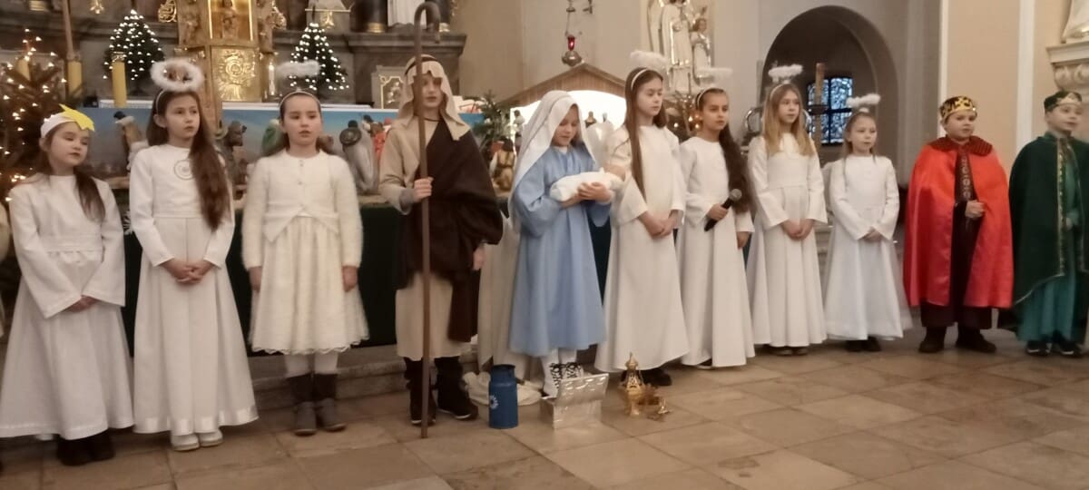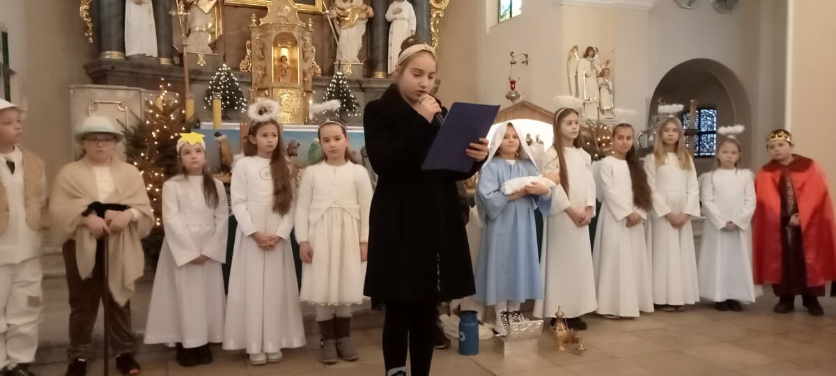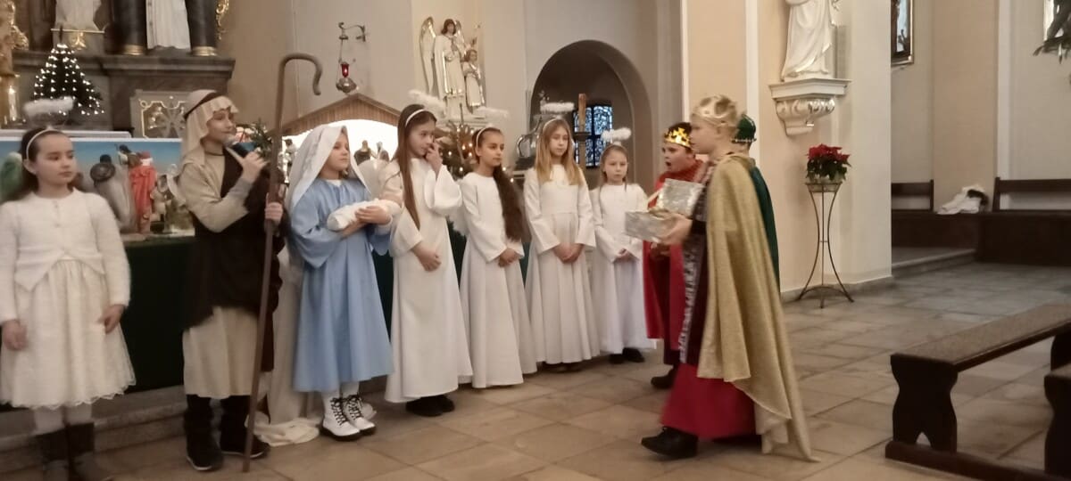 W minioną niedzielę (15.01.) uczniowie naszej szkoły przedstawili jasełka w kościele parafialnym p.w. Świętej Jadwigi w Chróścicach podczas popołudniowego nabożeństwa. Spotkanie przy “betlejemskim żłóbku” zgromadziło w kościele wiele osób, w tym także rodziców i bliskich naszych uczniów. Za piękne wykonanie dzieci zostały nagrodzone brawami oraz słodkim upominkiem od księdza proboszcza.