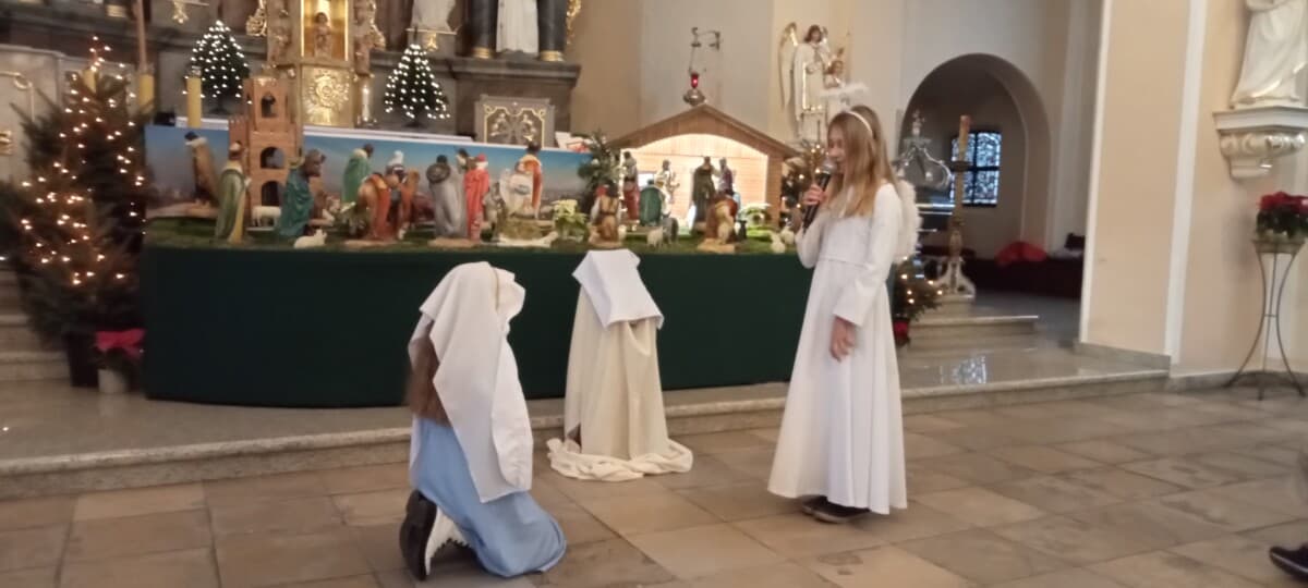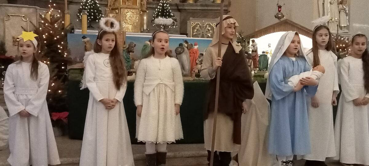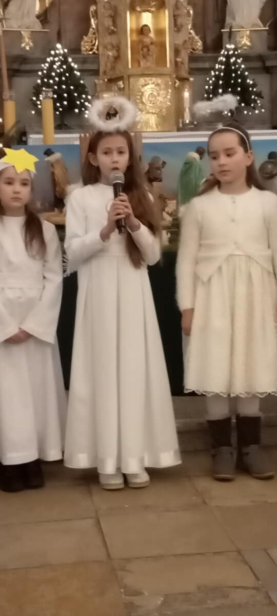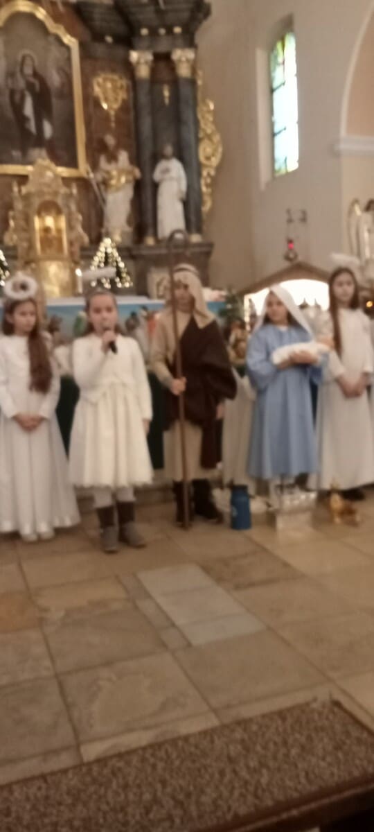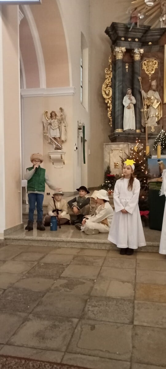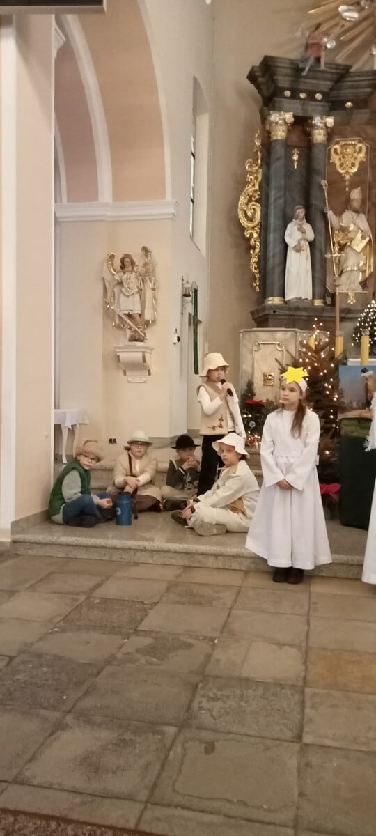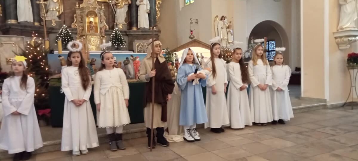 W minioną niedzielę (15.01.) uczniowie naszej szkoły przedstawili jasełka w kościele parafialnym p.w. Świętej Jadwigi w Chróścicach podczas popołudniowego nabożeństwa. Spotkanie przy “betlejemskim żłóbku” zgromadziło w kościele wiele osób, w tym także rodziców i bliskich naszych uczniów. Za piękne wykonanie dzieci zostały nagrodzone brawami oraz słodkim upominkiem od księdza proboszcza.