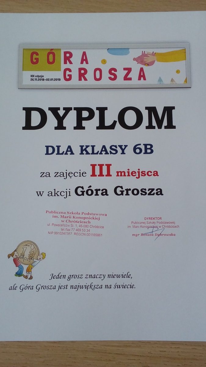 Zakończyliśmy już w naszej szkole akcję „Góra Grosza”. Celem na który zbierane były drobne monety, jest pomoc dzieciom, które wychowują się poza swoją rodziną – w domach dziecka czy rodzinach zastępczych. Pośrednim, ale najważniejszym celem akcji było