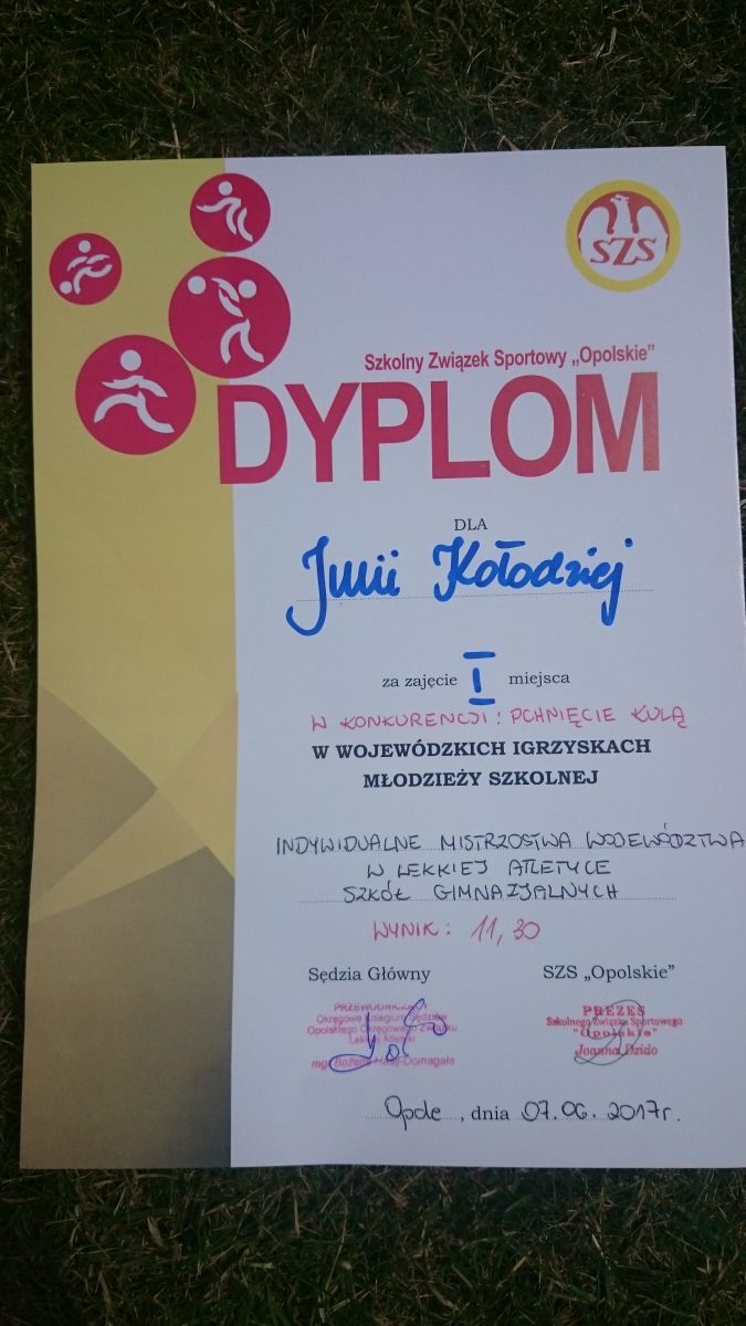 1 miejsce- w pchnięciu kulą w powiecie