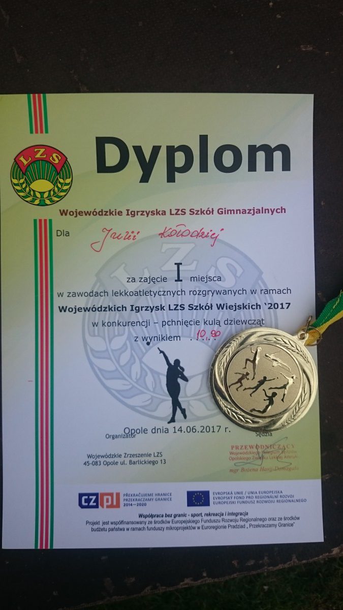 1 miejsce- w pchnięciu kulą w województwie-SZS