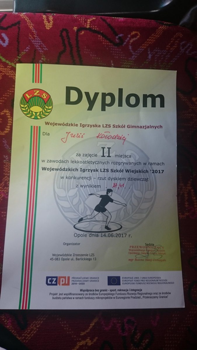 1 miejsce- w rzucie dyskiem w powiecie