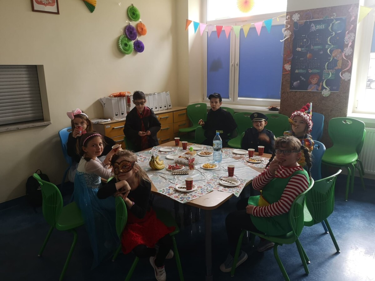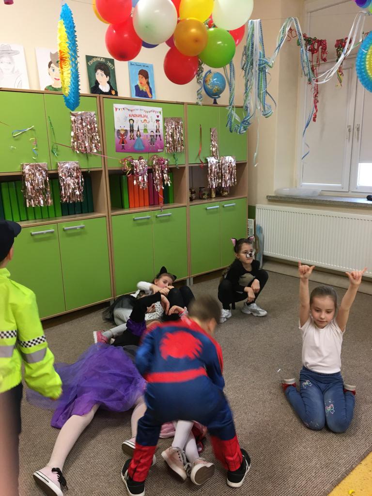 specjalnie na ten dzień zamienił się w piękną salę balową, nadszedł czas na odpoczynek w klasach, gdzie na dzieci czekały przekąski przygotowane przez rodziców. Wspólna zabawa przyniosła wiele radości naszym wychowankom, a to było głównym celem tego wydarzenia. Serdecznie dziękujemy dzieciom i rodzicom za pięknie przygotowane stroje i poczęstunek!
