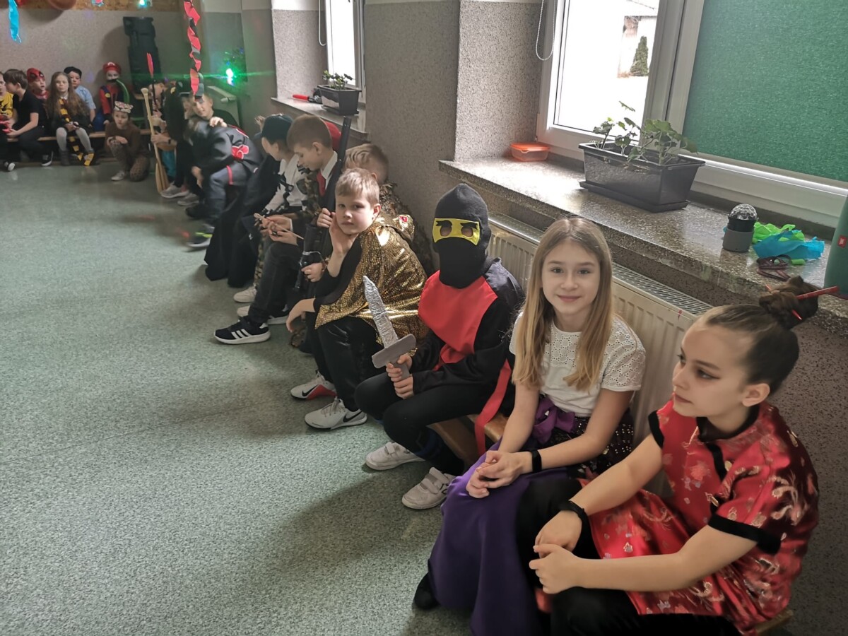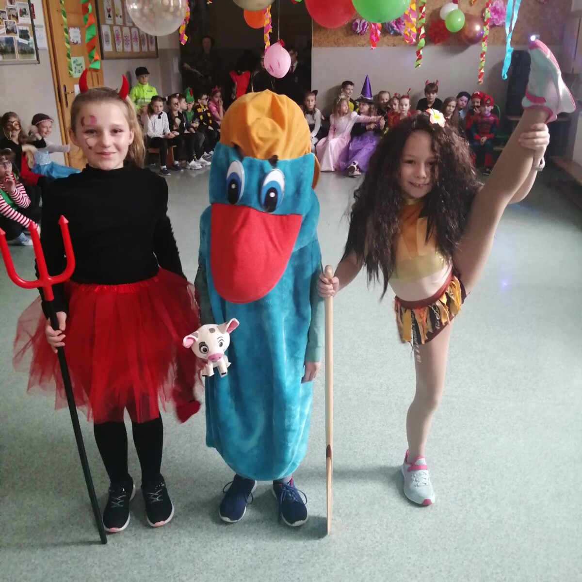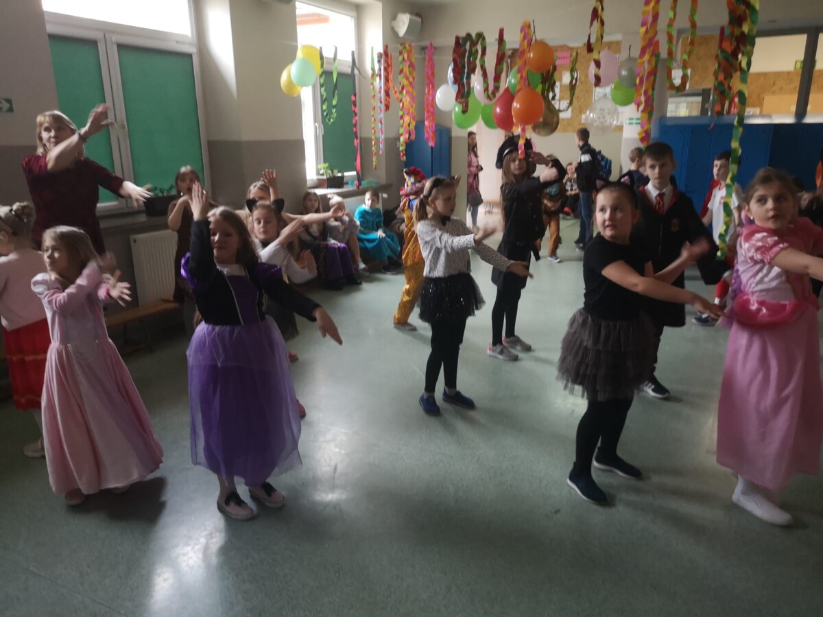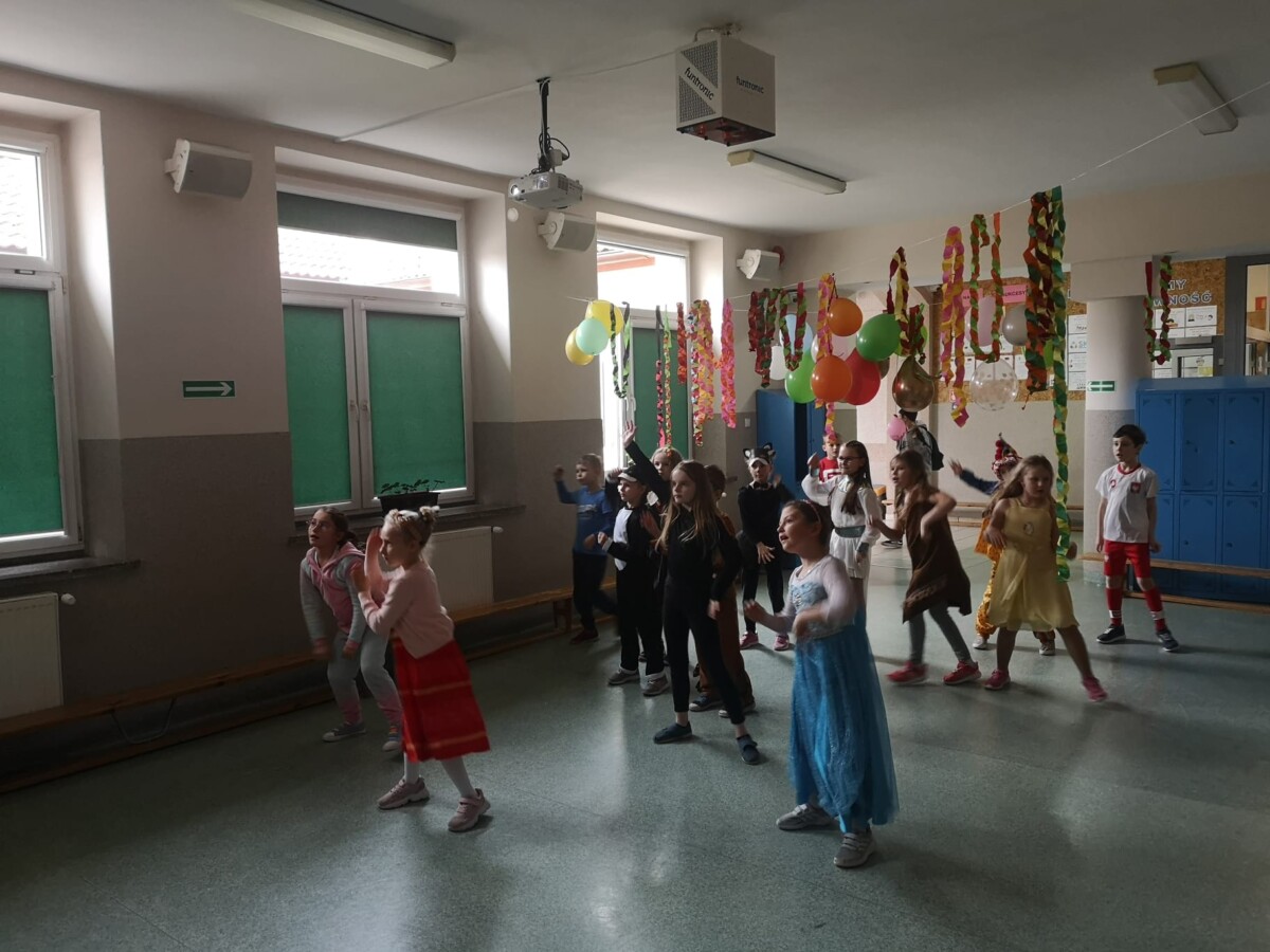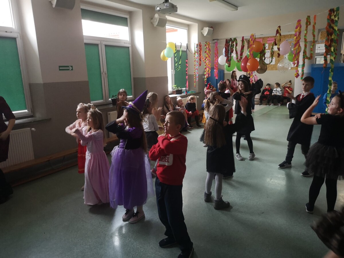 Przekonali się o tym uczniowie klas 1-3. W piątek, 10 lutego, na dzieci czekały pięknie udekorowane klasy oraz korytarz, na którym odbył się pokaz karnawałowych strojów. Nie zabrakło księżniczek, wróżek, superbohaterów, kolorowych zwierzątek i innych bajkowych postaci. Podczas wspólnych chwil nikogo nie opuszczał dobry humor! Były tańce, zabawy w “gorące krzesła” oraz pociąg, do którego chętnie dołączali przebierańcy. Po pląsach na korytarzu, który