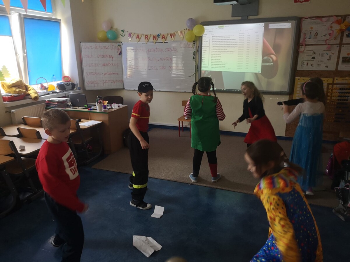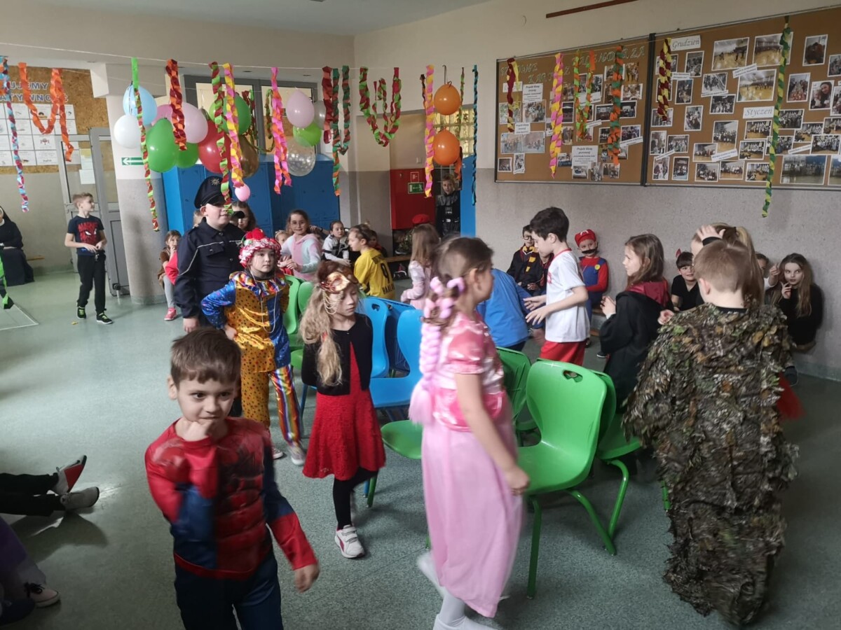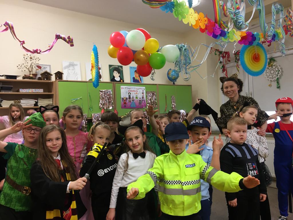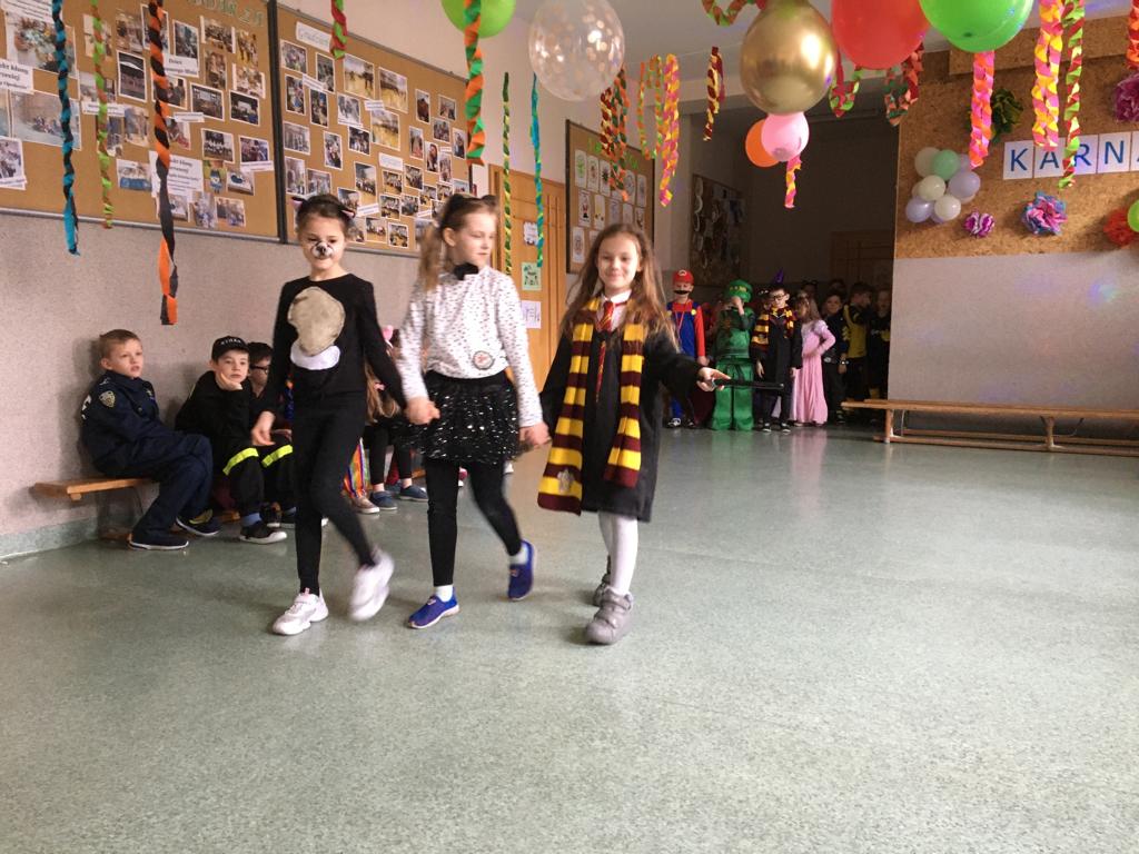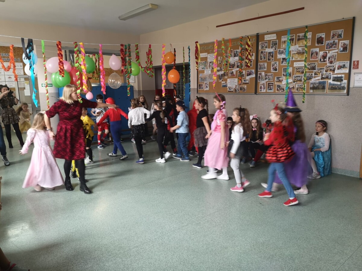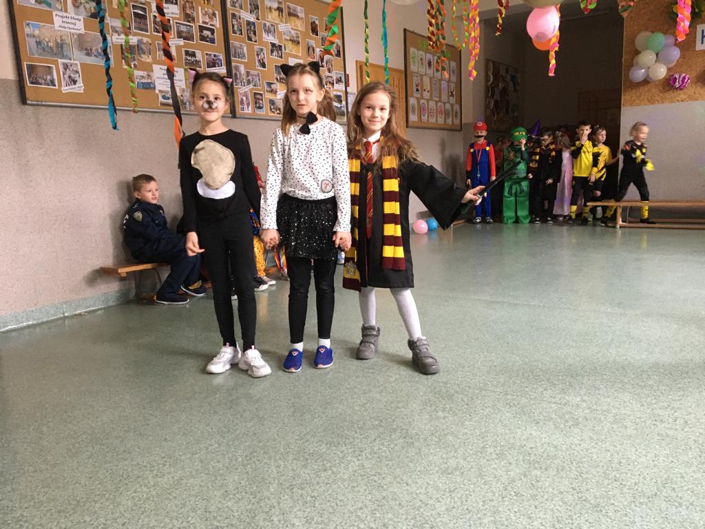 Przekonali się o tym uczniowie klas 1-3. W piątek, 10 lutego, na dzieci czekały pięknie udekorowane klasy oraz korytarz, na którym odbył się pokaz karnawałowych strojów. Nie zabrakło księżniczek, wróżek, superbohaterów, kolorowych zwierzątek i innych bajkowych postaci. Podczas wspólnych chwil nikogo nie opuszczał dobry humor! Były tańce, zabawy w “gorące krzesła” oraz pociąg, do którego chętnie dołączali przebierańcy. Po pląsach na korytarzu, który