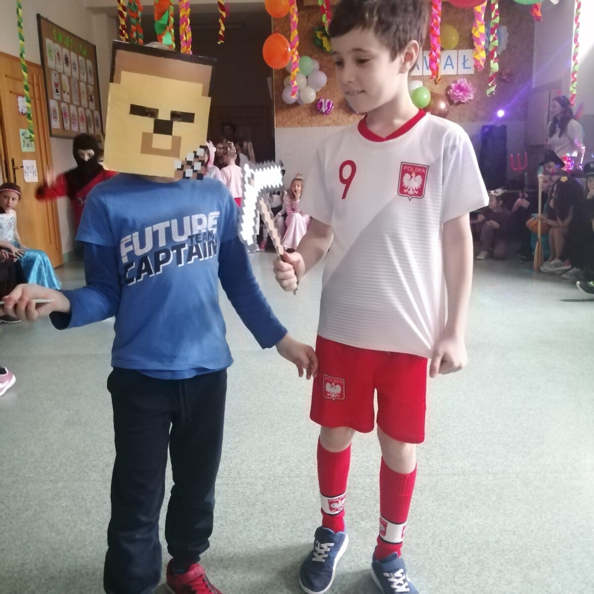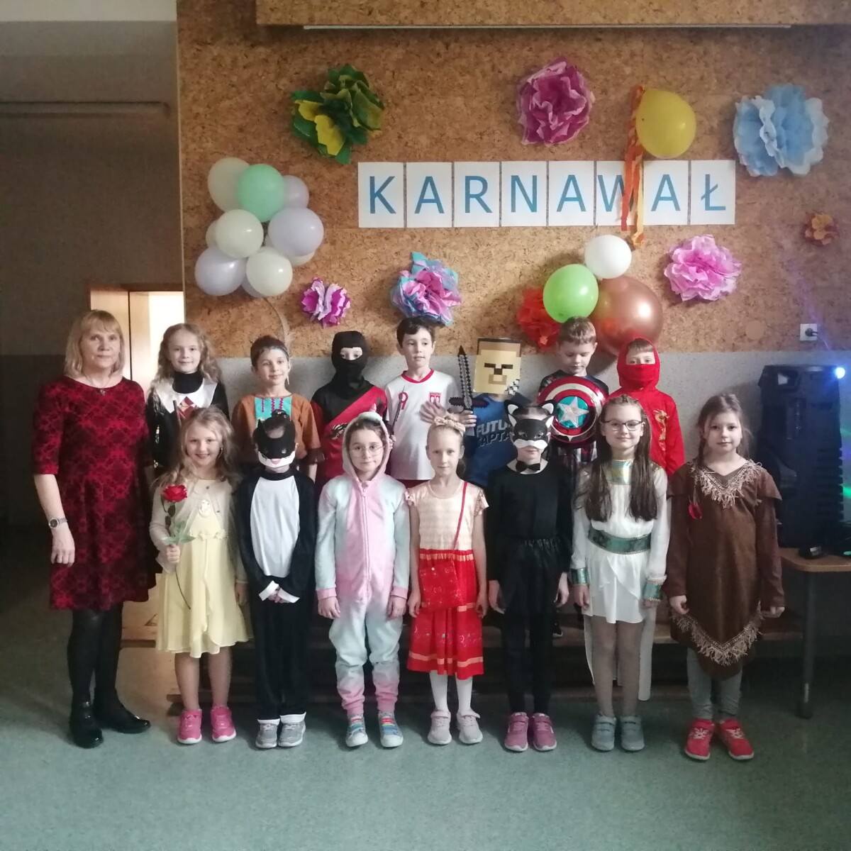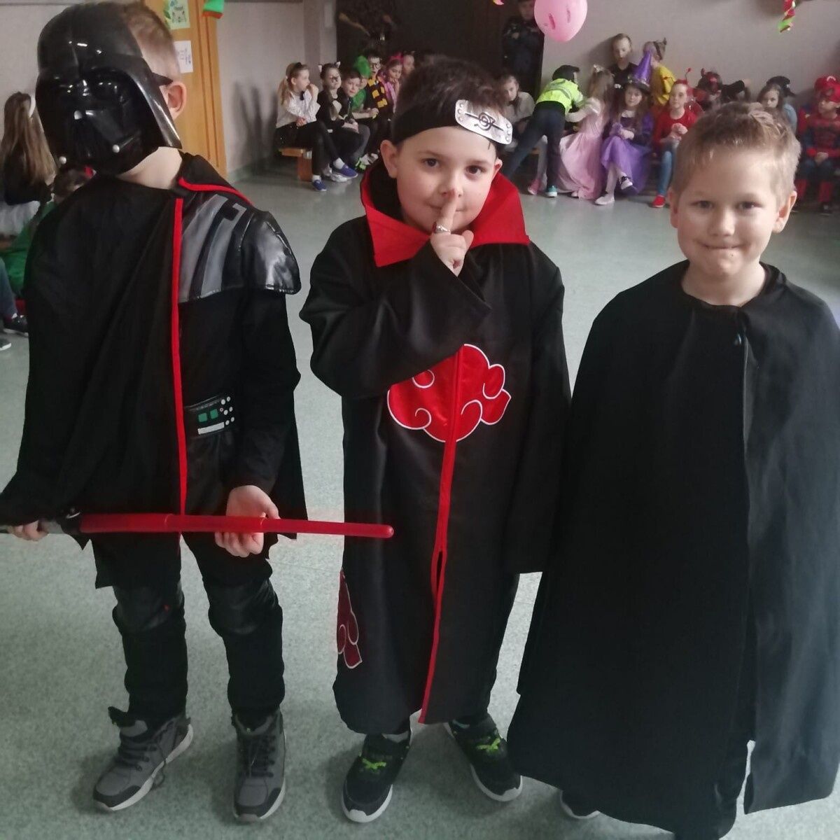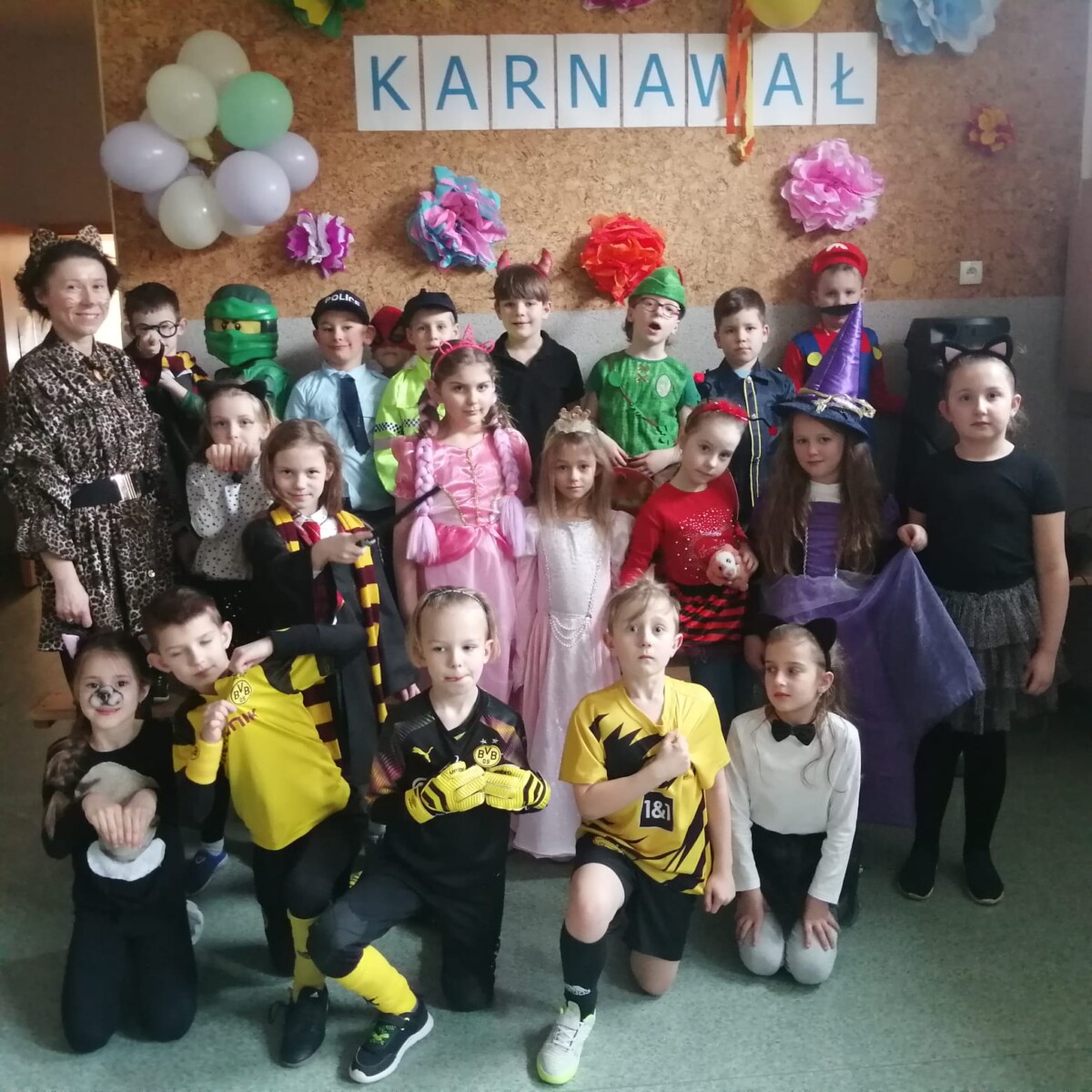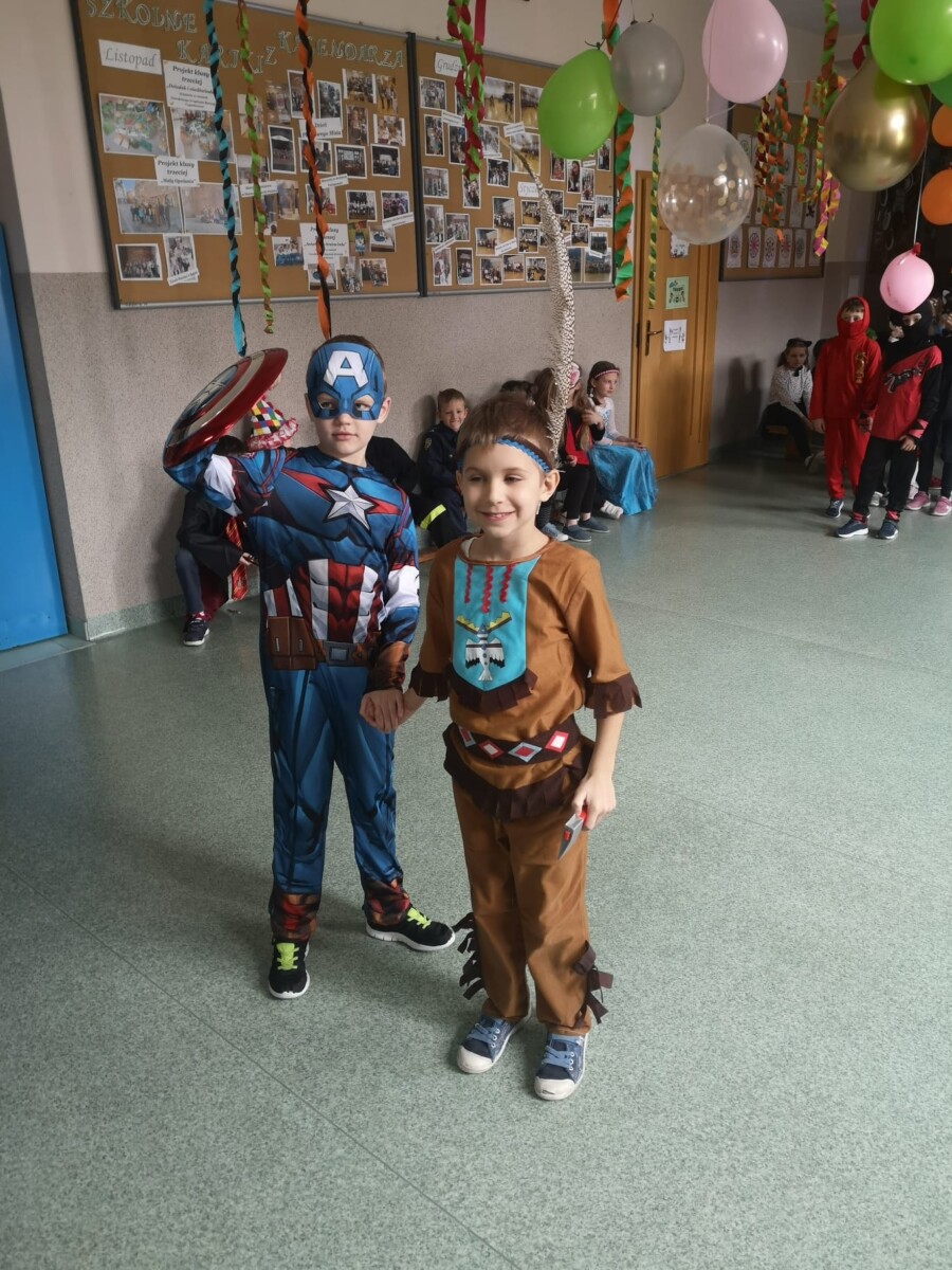 Przekonali się o tym uczniowie klas 1-3. W piątek, 10 lutego, na dzieci czekały pięknie udekorowane klasy oraz korytarz, na którym odbył się pokaz karnawałowych strojów. Nie zabrakło księżniczek, wróżek, superbohaterów, kolorowych zwierzątek i innych bajkowych postaci. Podczas wspólnych chwil nikogo nie opuszczał dobry humor! Były tańce, zabawy w “gorące krzesła” oraz pociąg, do którego chętnie dołączali przebierańcy. Po pląsach na korytarzu, który
