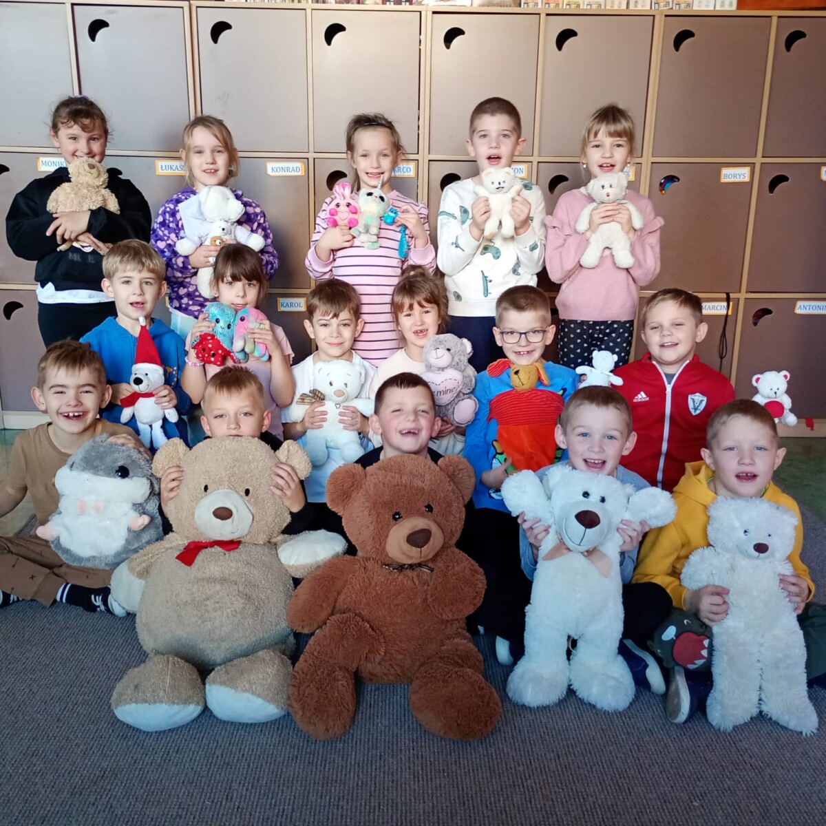 25 listopada br. w klasach 1- 3 obchodzono Dzień Pluszowego Misia. Dzieci już od rana opowiadały o swoich pluszowych przyjaciołach- o tym, skąd pochodzą i dlaczego są tak wyjątkowi. W klasach 2b i 3 w tym dniu dzieci tworzyły piękne prace plastyczne z misiami w roli głównej. Odbyła się również sesja zdjęciowa z misiami. Na lekcjach oglądano bajkę, która przedstawiała historię pluszowego misia. Z kolei w klasie 2a na zajęciach opowiadano o wspaniałym niedźwiadku Wojtku, który jest symbolem odwagi. Syryjski niedźwiedź brunatny adoptowany przez żołnierzy armii polskiej podczas II wojny światowej. Niedźwiedź, który początkowo otrzymał stopień szeregowego, ostatecznie awansował do stopnia kaprala i służył głównie jako podpora morale żołnierzy. Lekcja miała uwrażliwić uczniów , że miś jest symbolem dobra, miłości, ciepła, łagodności i opiekuńczości, czyli tego, czego jako ludzie bardzo pragniemy. Dzień Pluszowego Misia to nie tylko zabawa, ale też przypomnienie o tym, jak ważna jest przyjaźń, troska i dobre wspomnienie.